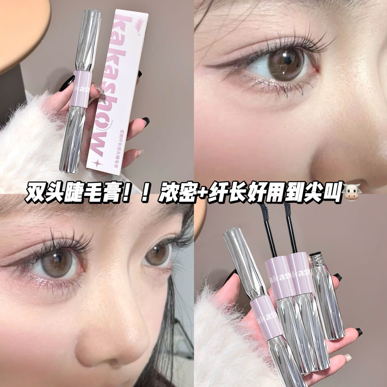 Kakashow плотная перевернутая длинная двухголовая тушь для ресниц с волокнами