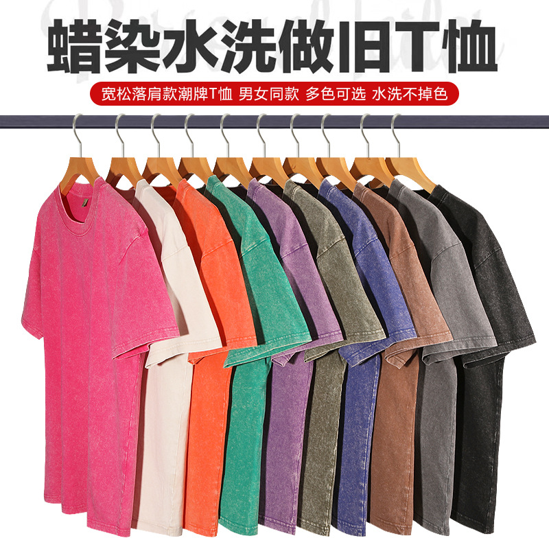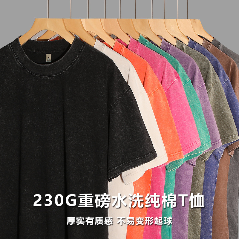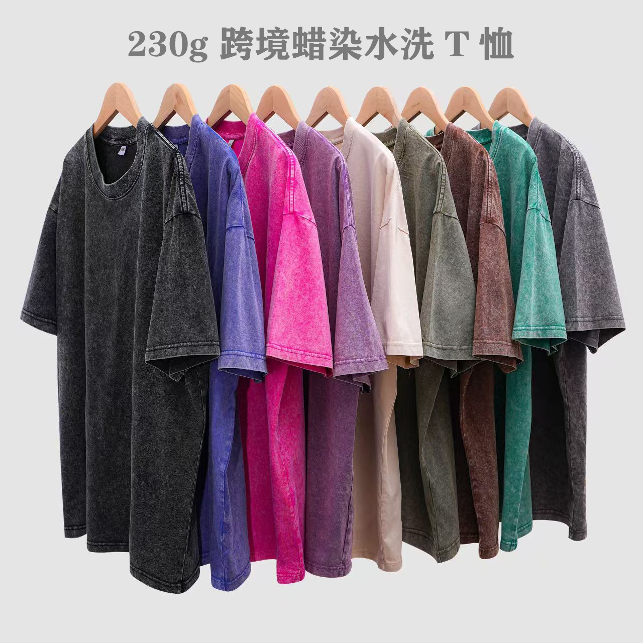 Футболка оверсайз из 100% хлопка с эффектом винтажной стирки и восковой окраски, 230 г, с принтом логотипа, для трансграничной торговли.