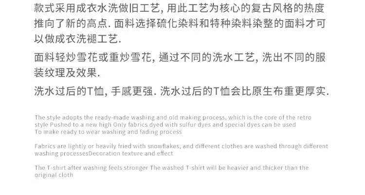 关于色差:由于水洗工艺的特殊性,每批次做出的效果都有差别,不会 有完全一致的做旧效果。