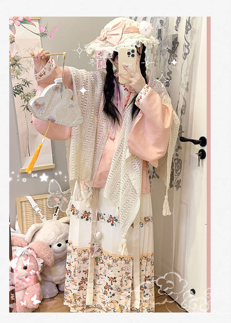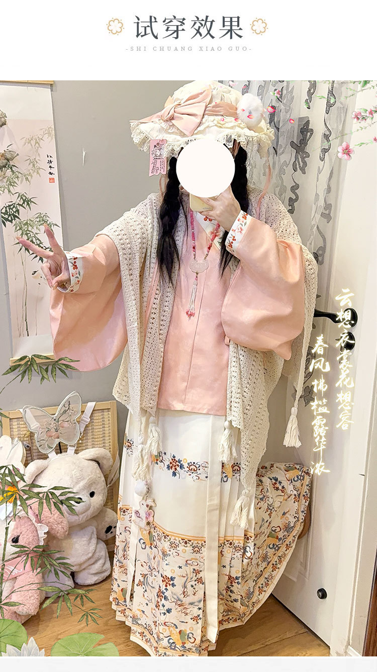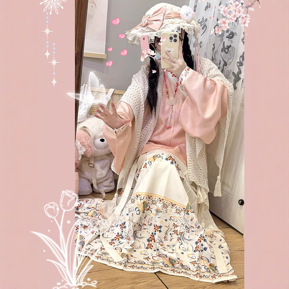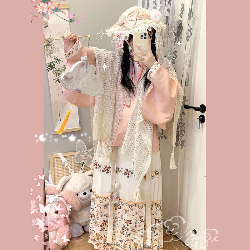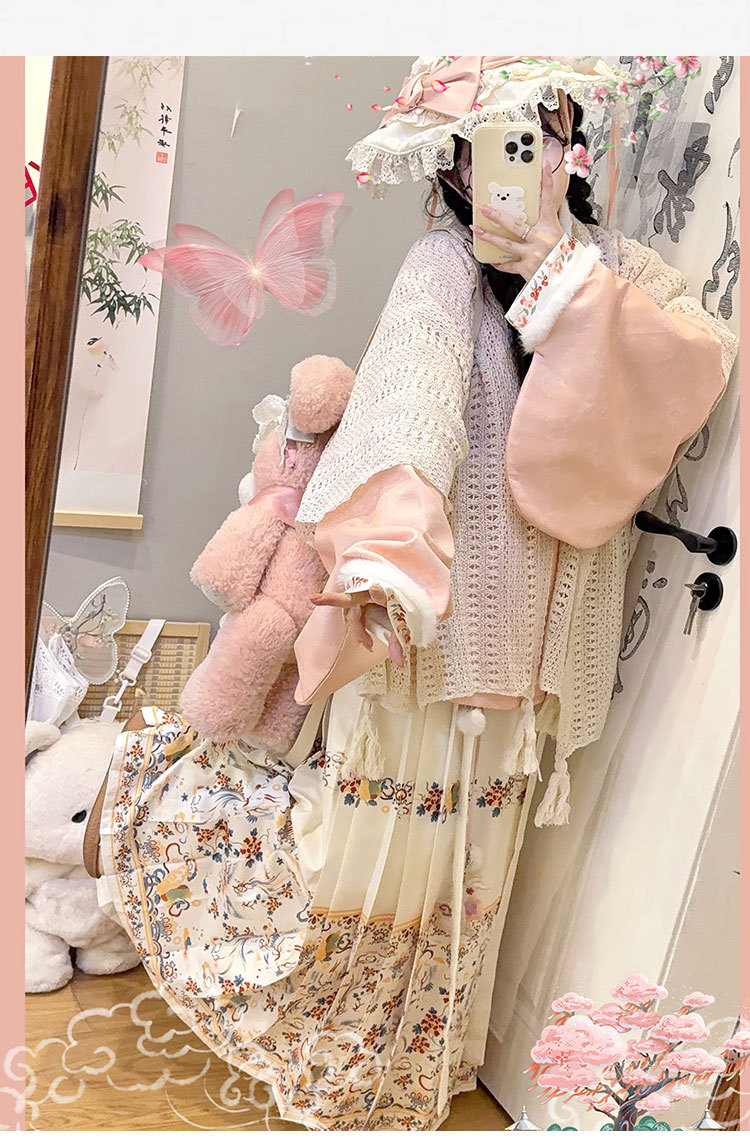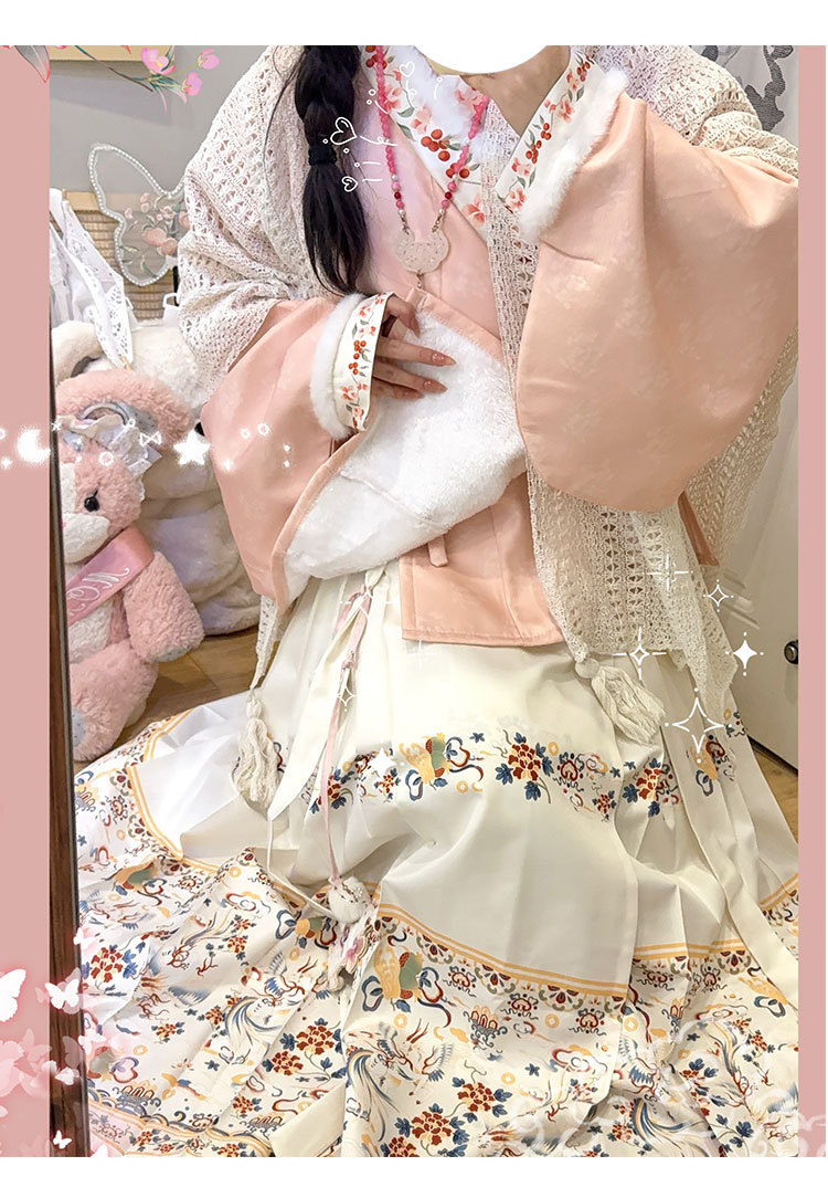 Han-Yang складывает новый оригинальный ханьфу в стиле Мин с флисом, короткой рубашкой с перекрестным воротником, рукавами пипа, юбкой мамиан, Лолитой.