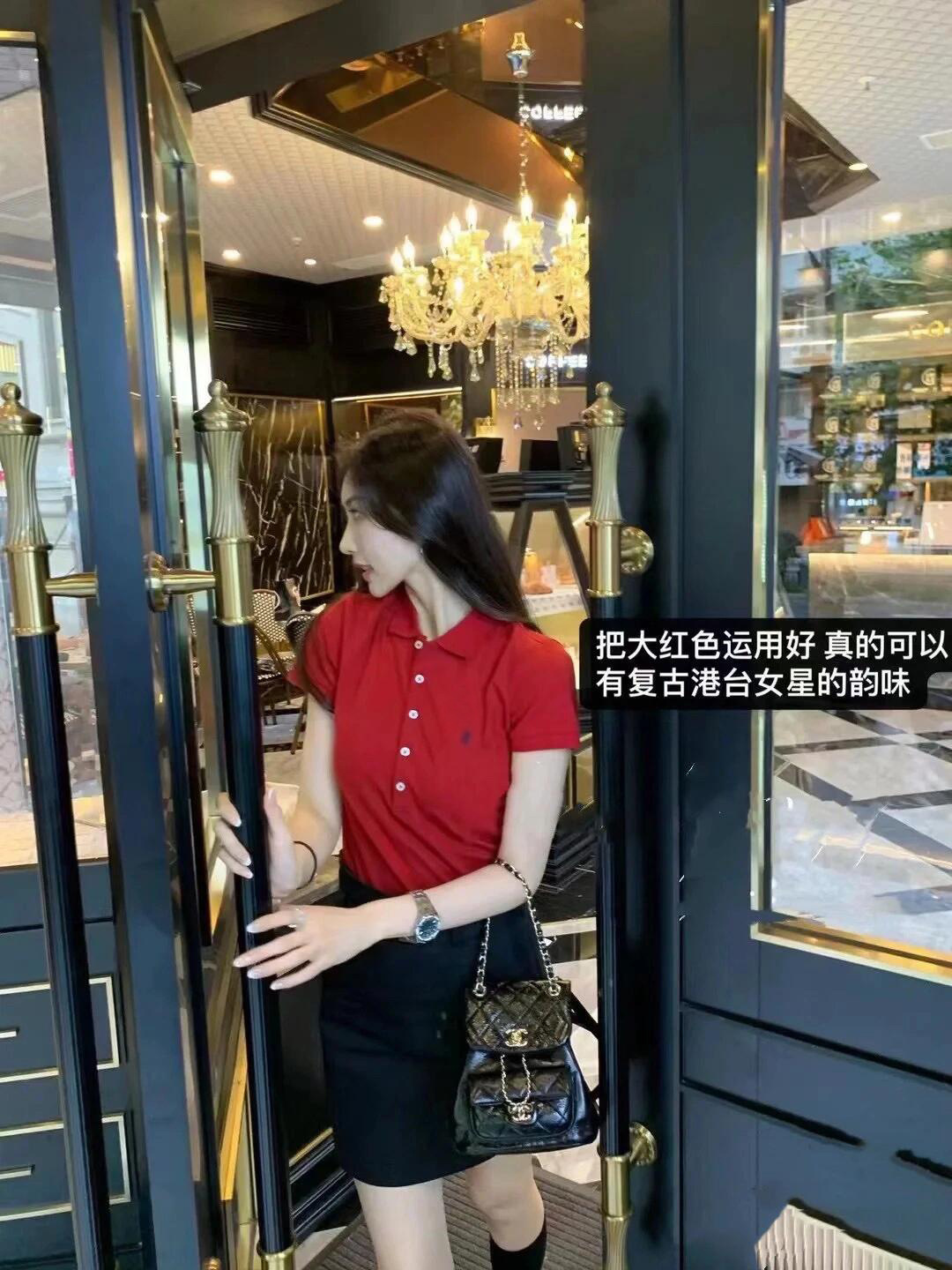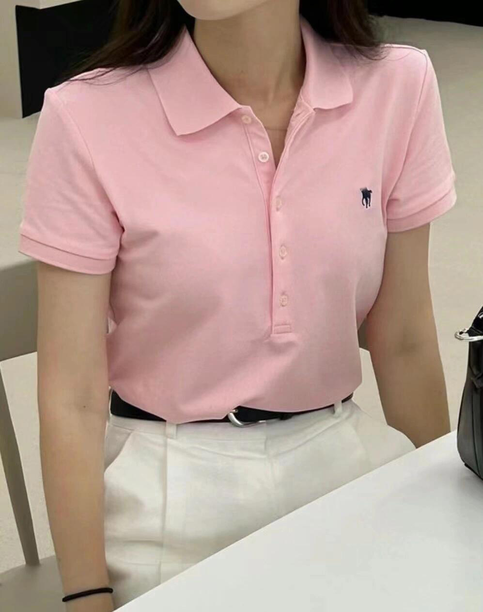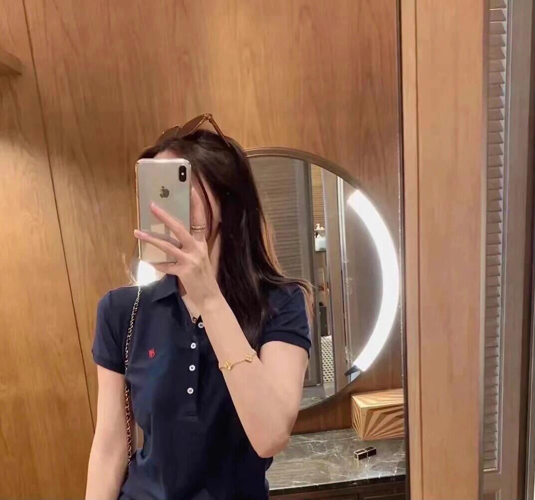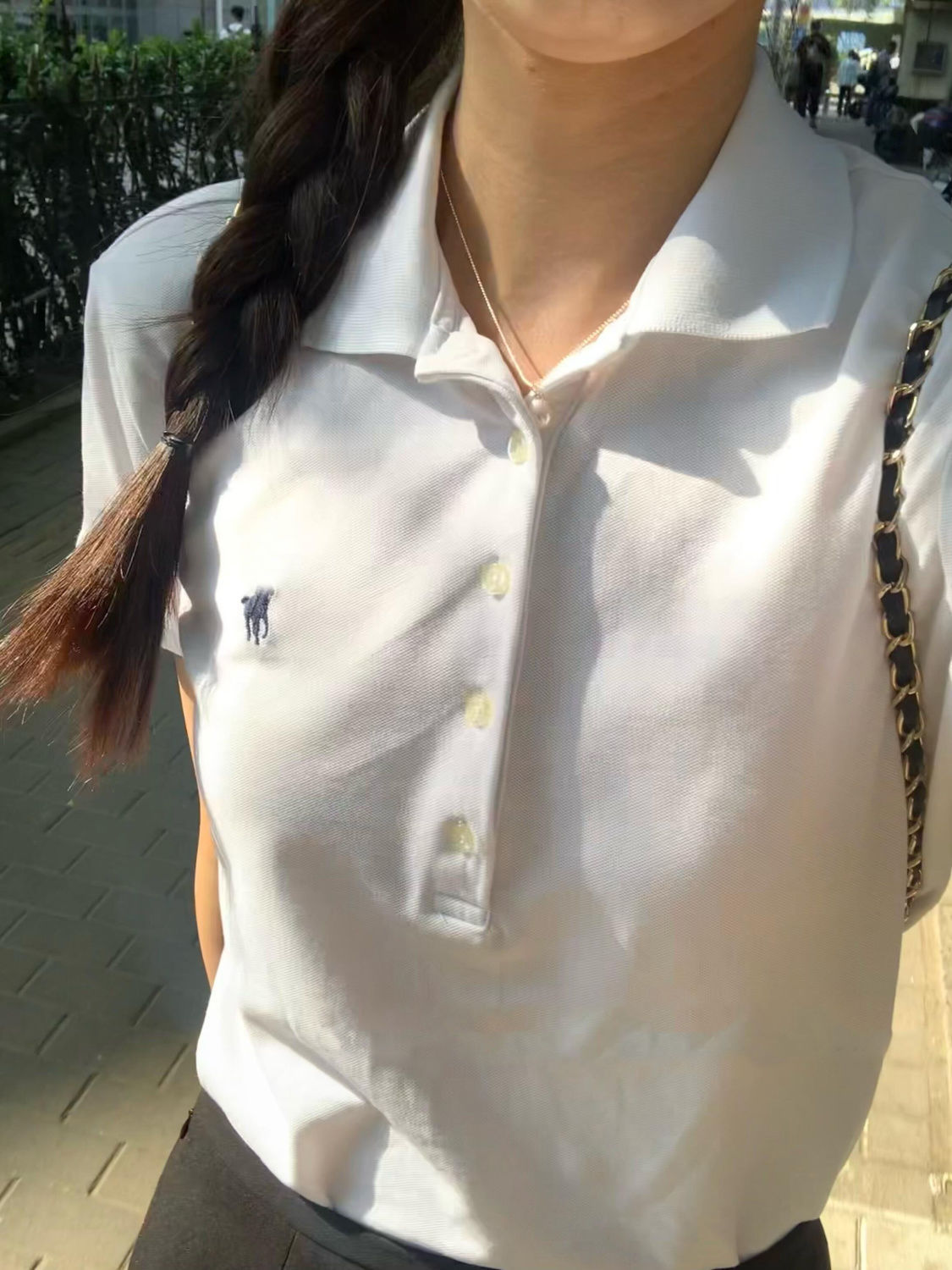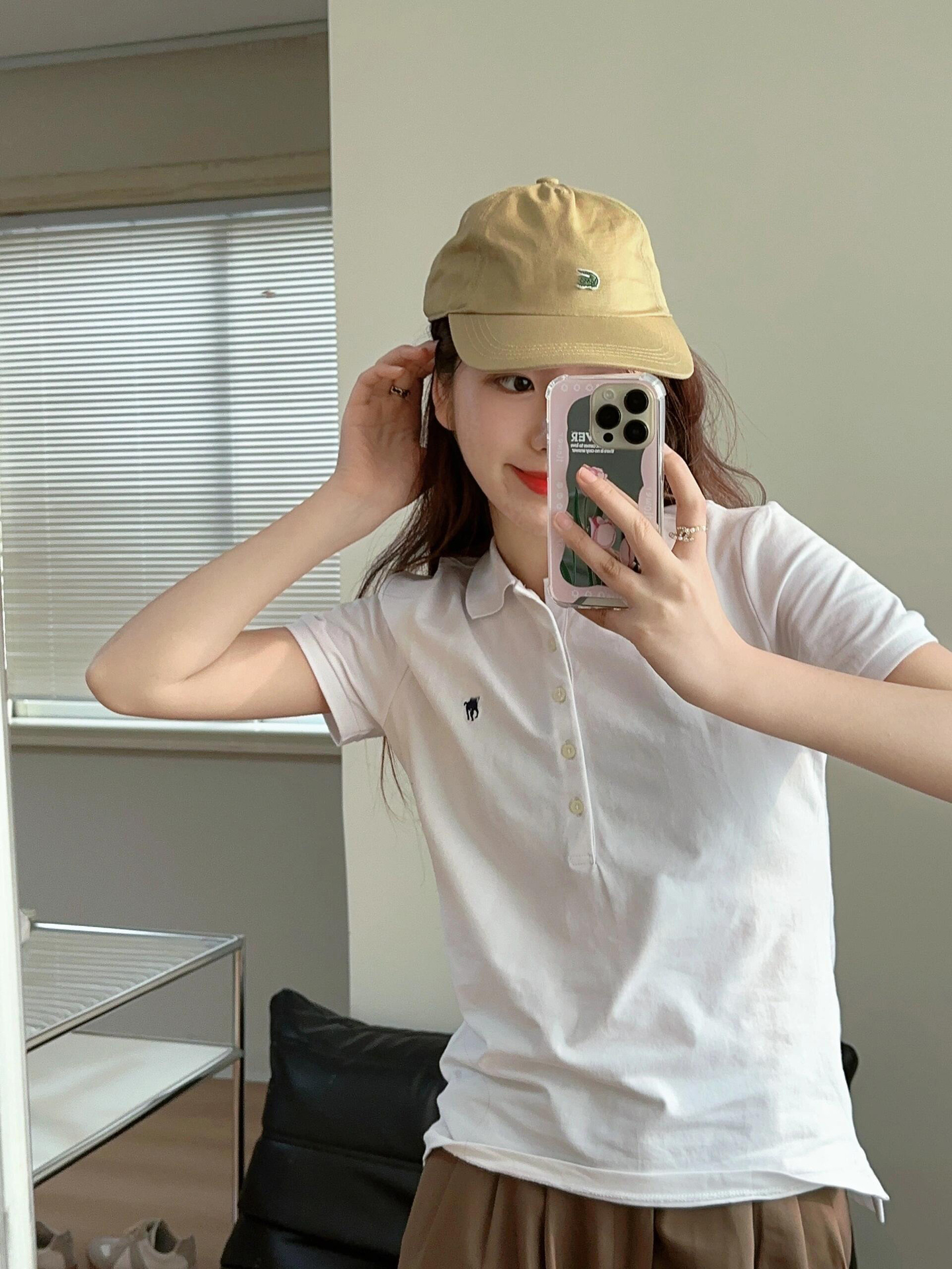 RL Rolf Pony со стандартным хлопчатобумажным поло для женщин с пятью пуговицами и лацканами тонкая американская футболка с короткими рукавами вышитая женщина
