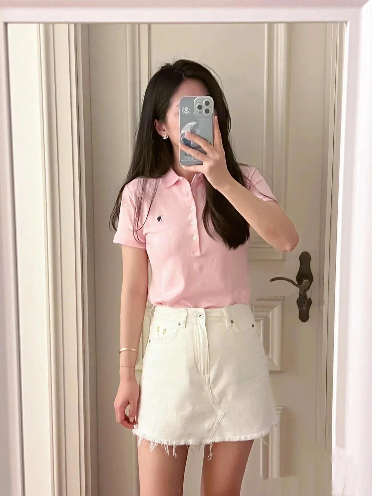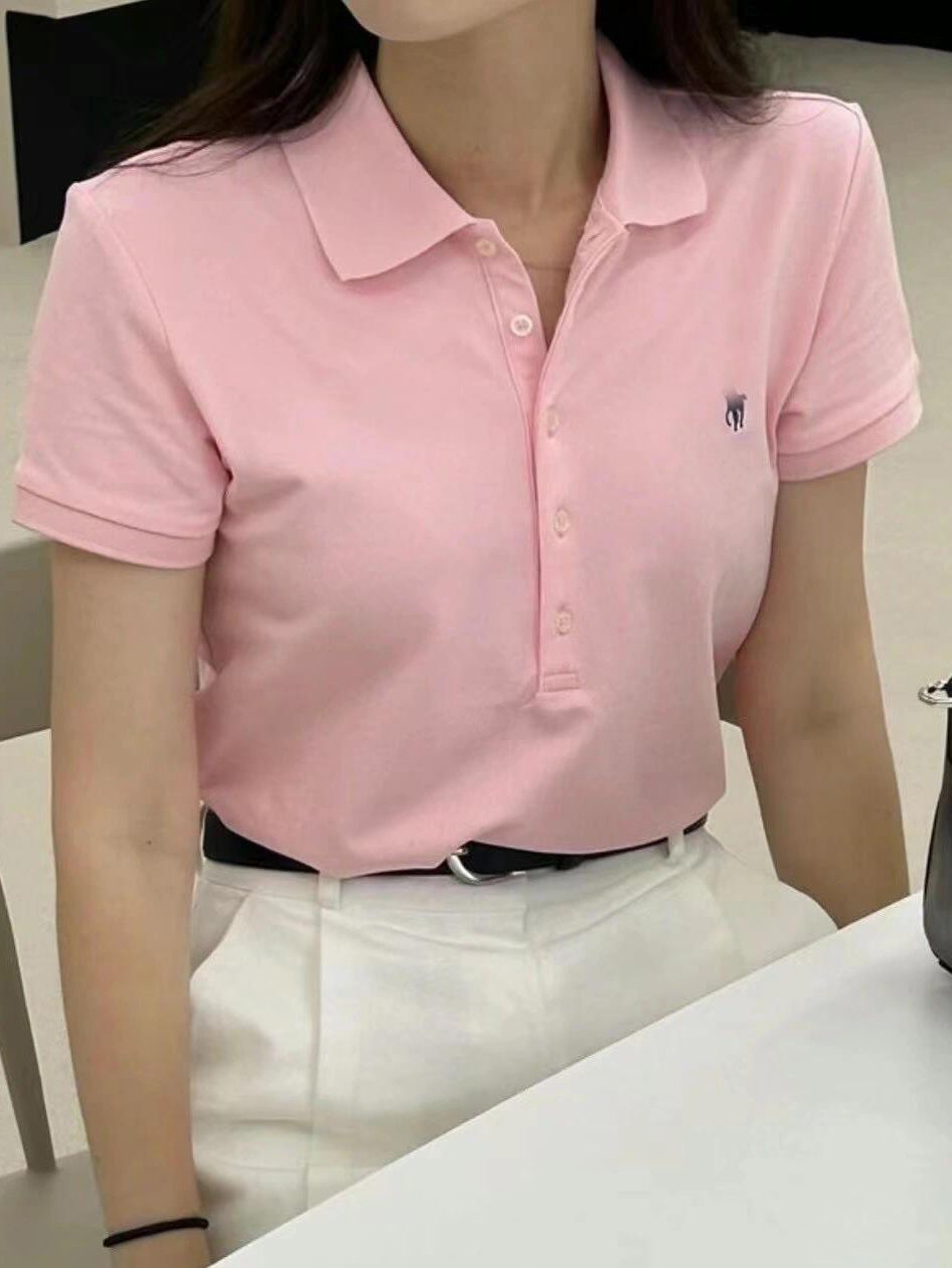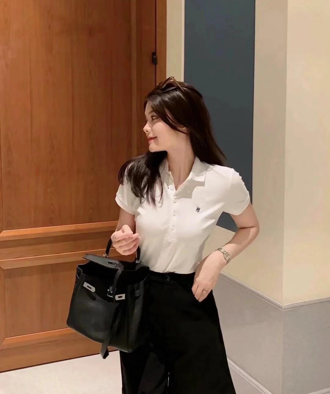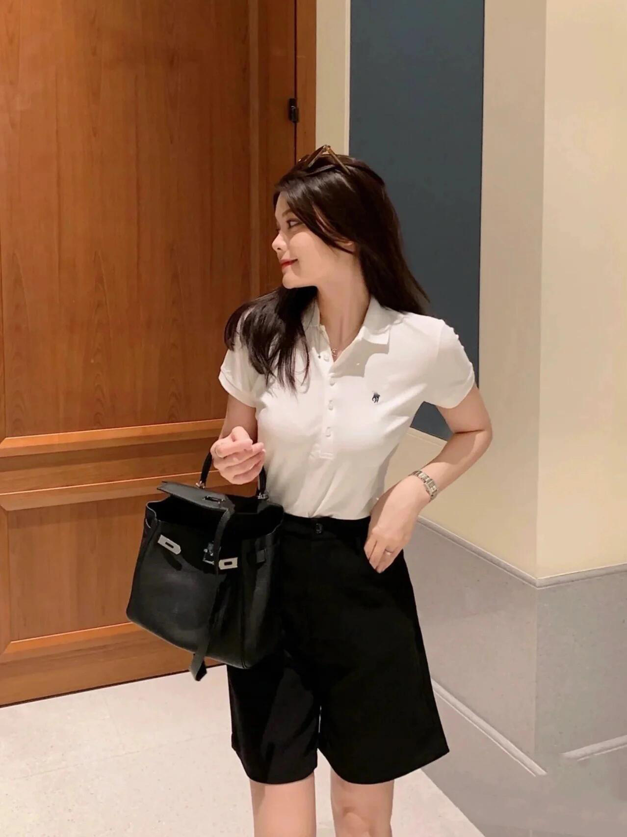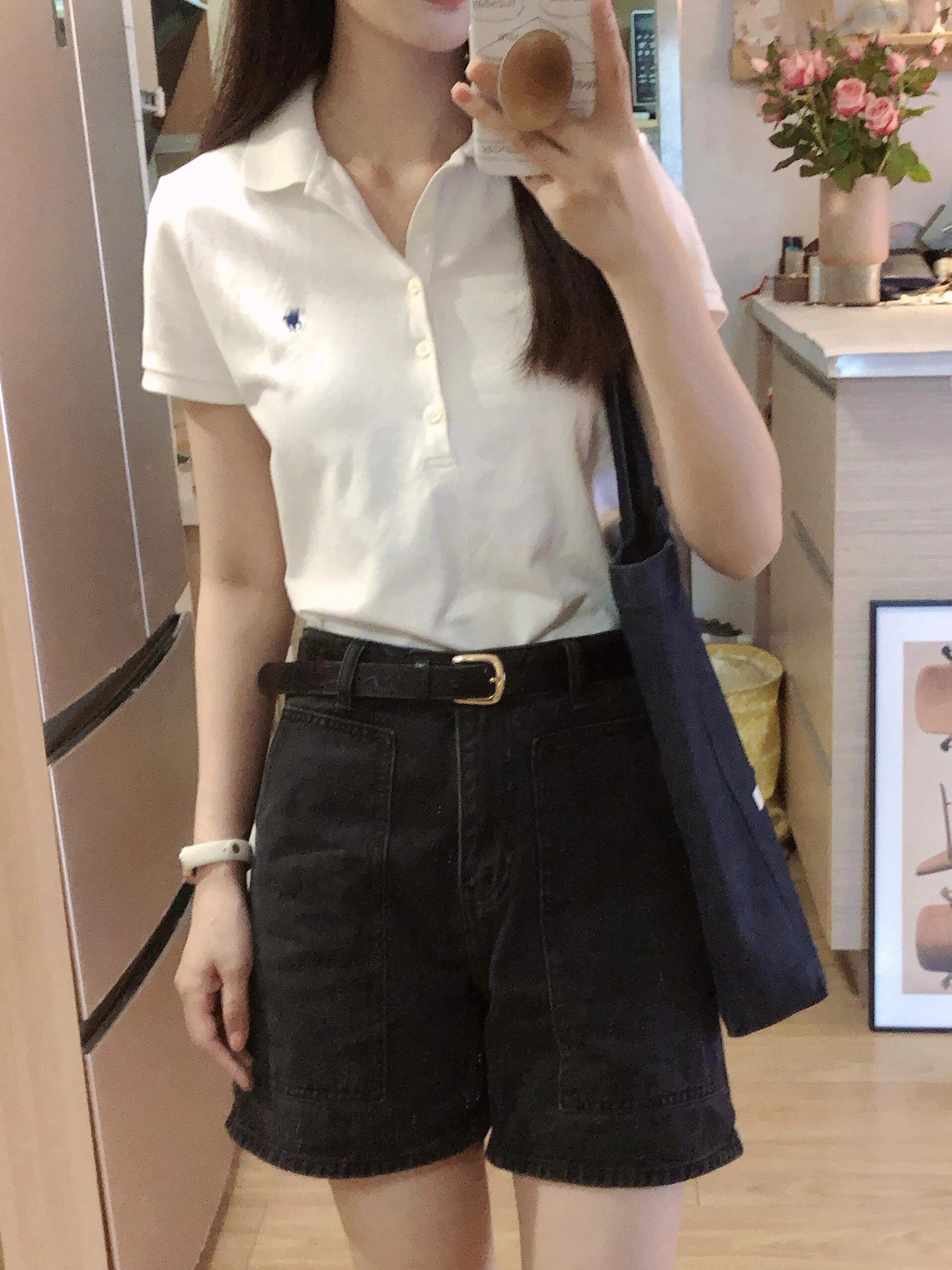 RL Rolf Pony со стандартным хлопчатобумажным поло для женщин с пятью пуговицами и лацканами тонкая американская футболка с короткими рукавами вышитая женщина
