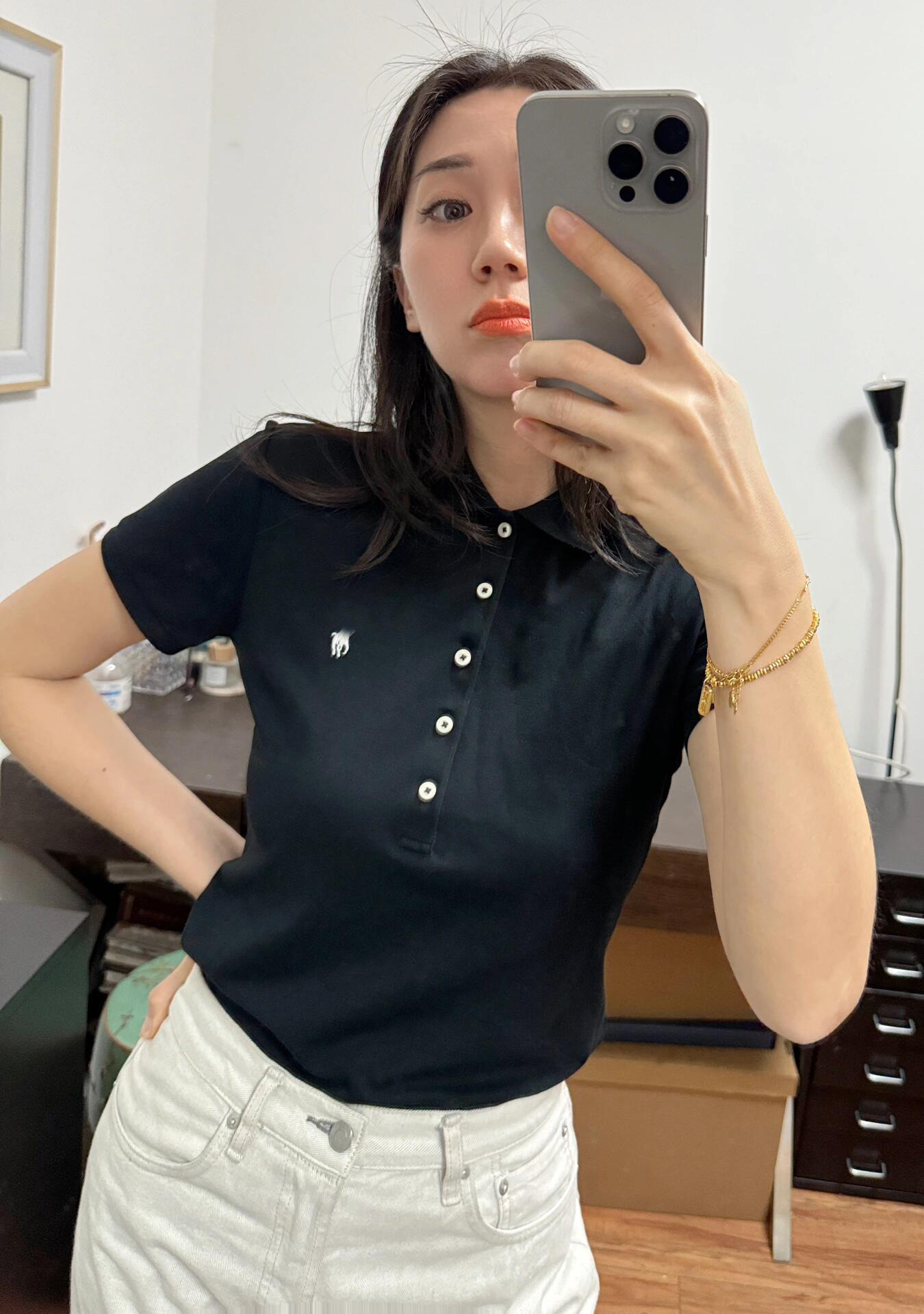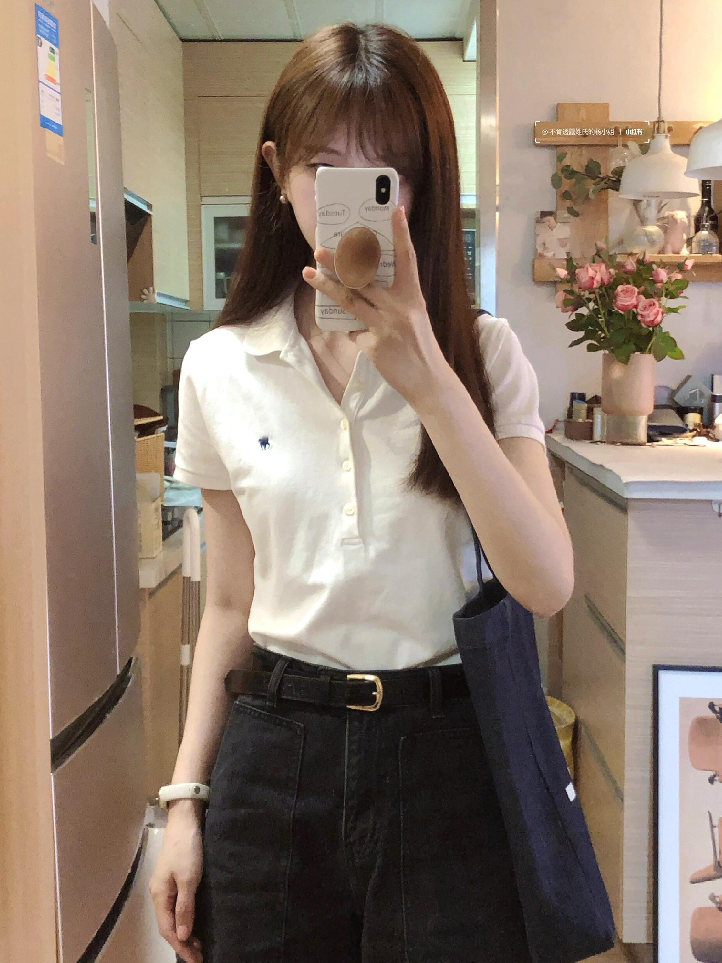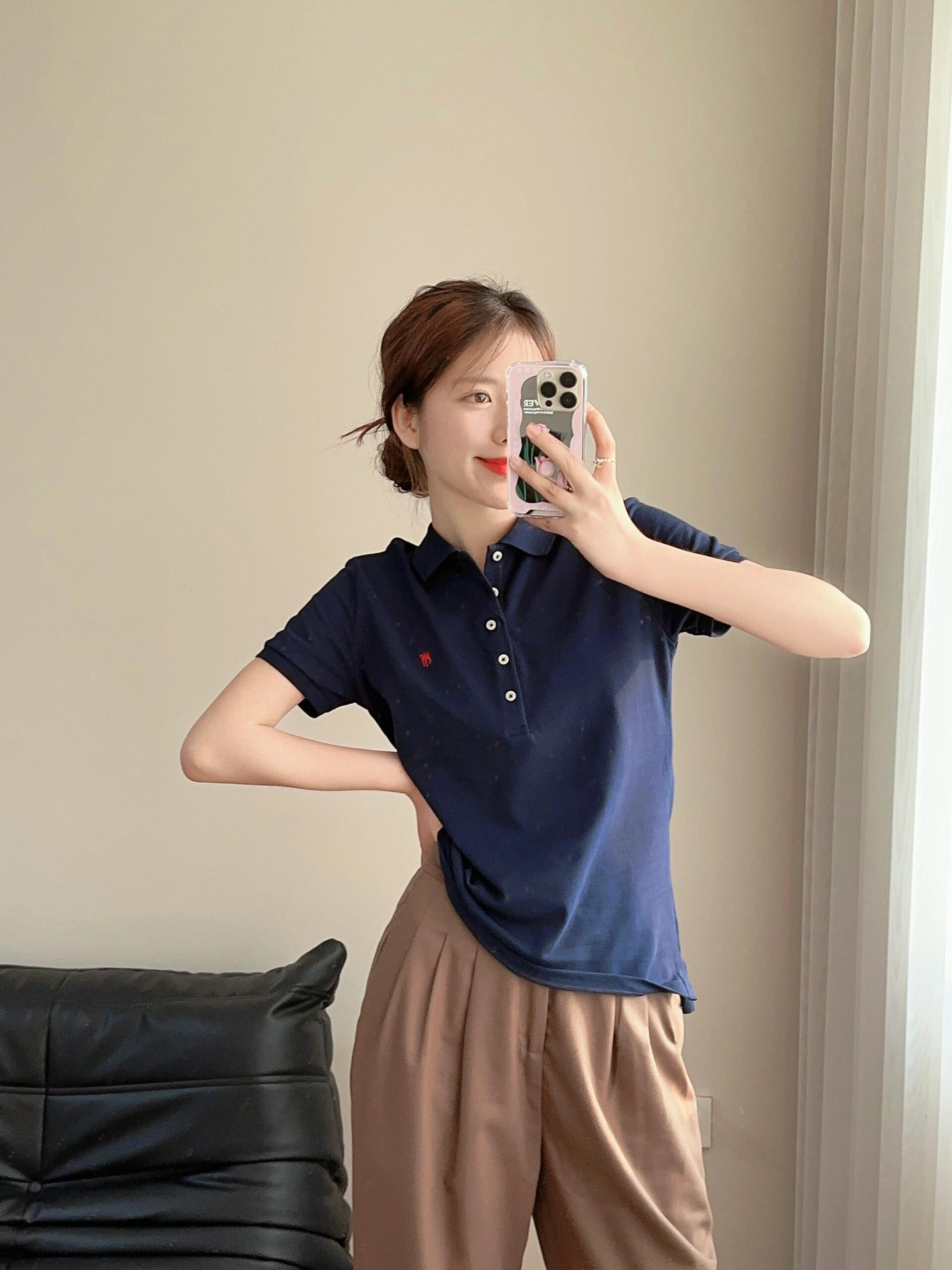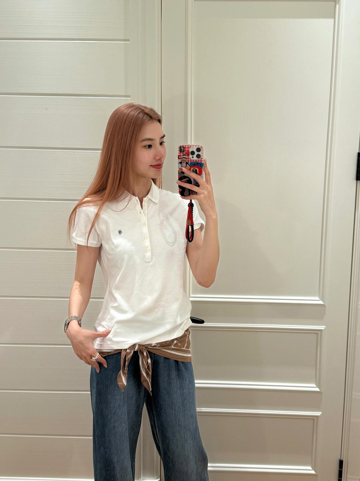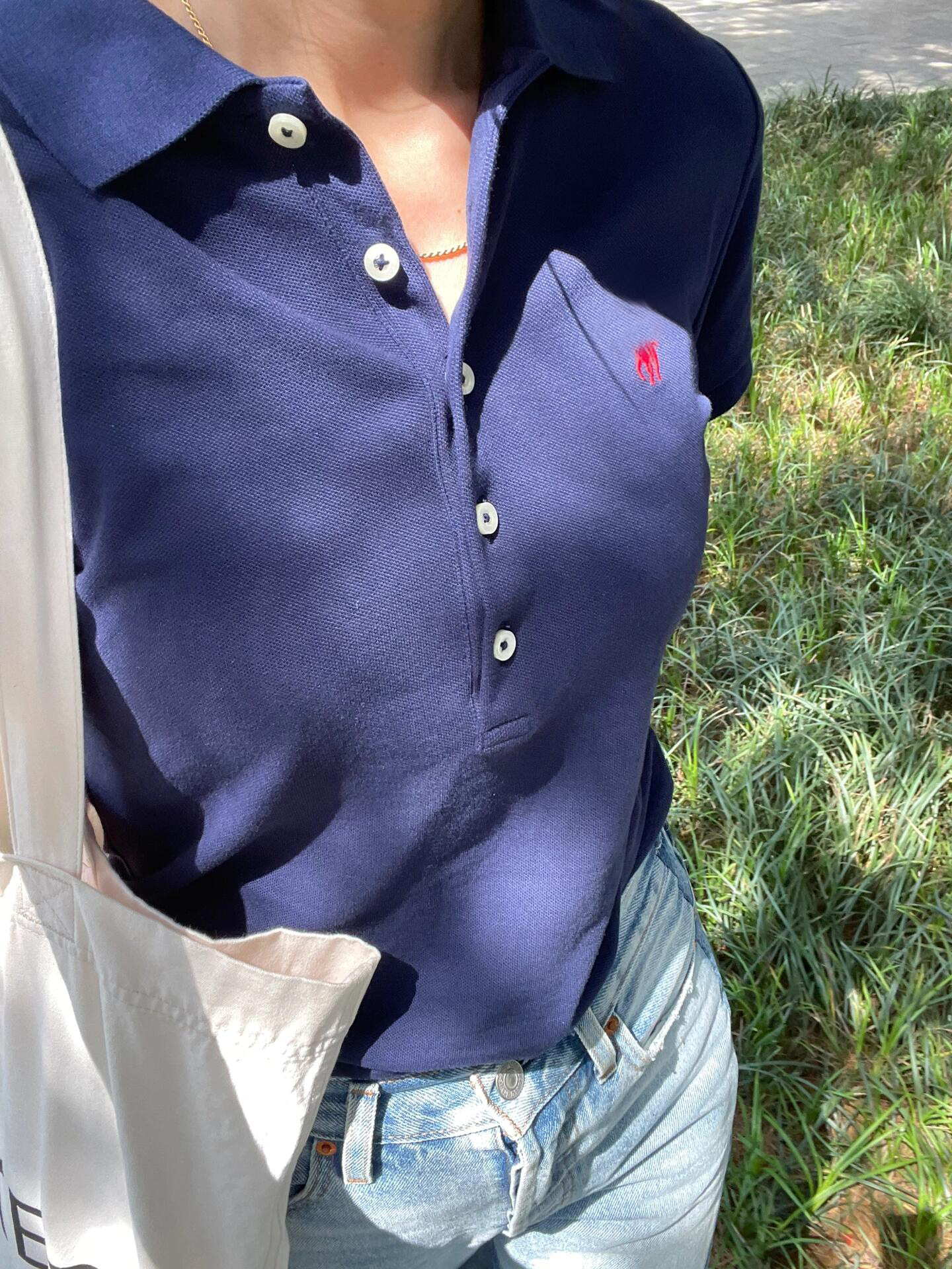 RL Rolf Pony со стандартным хлопчатобумажным поло для женщин с пятью пуговицами и лацканами тонкая американская футболка с короткими рукавами вышитая женщина