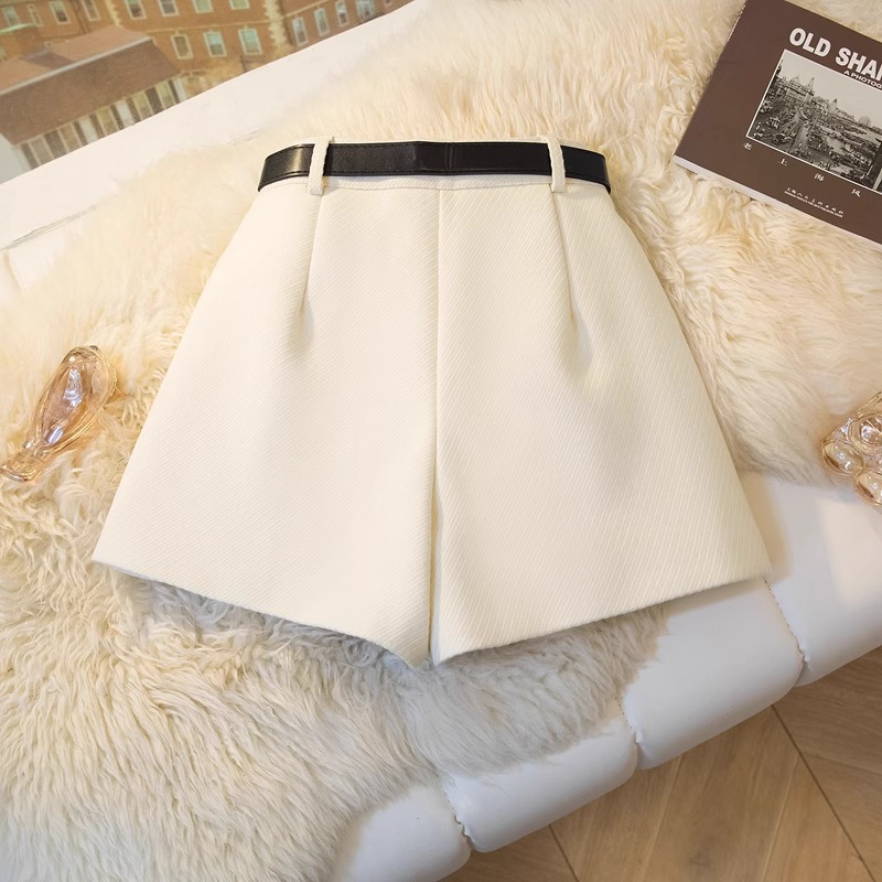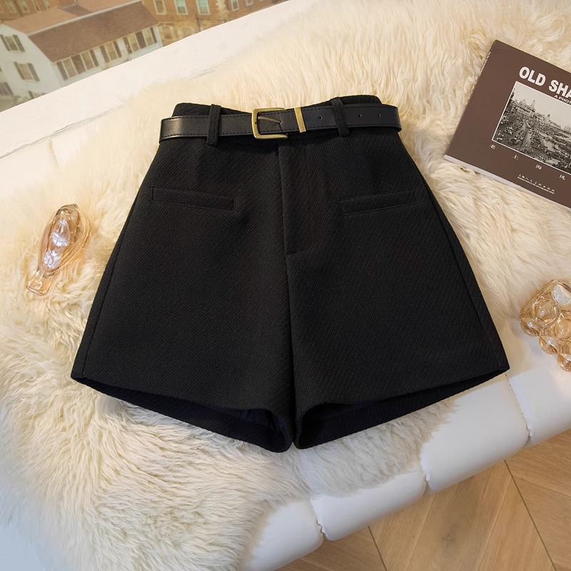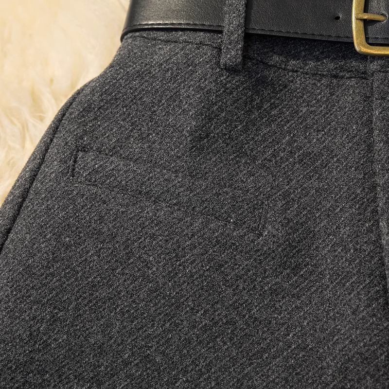 Носить шерстяные шорты для маленьких женщин осенью и зимой 2024 года серые сапоги с высокой талией брюки дикие тонкие и широкие брюки