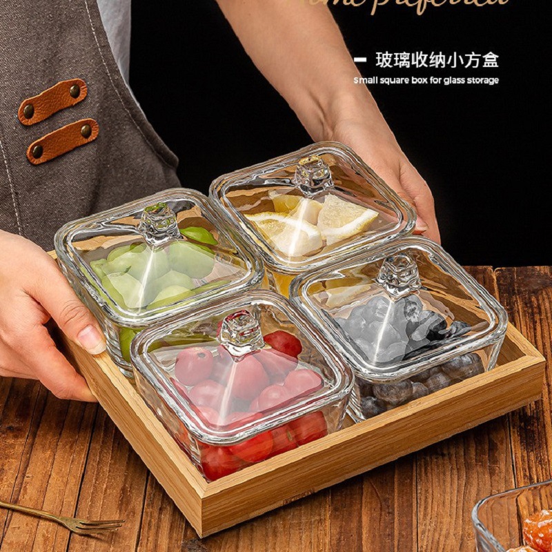 Стеклянная фруктовница, изысканная подставка для фруктов, декор для журнального столика в гостиной, квадратная, прямые продажи