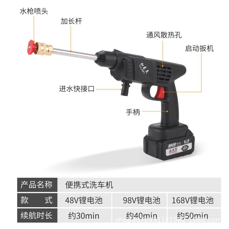 Автомойка, водяной пистолет высокого давления, портативный литиевый аккумулятор, водяной пистолет высокого давления, автомобильная беспроводная стиральная машина, специальная автомобильная стиральная машина