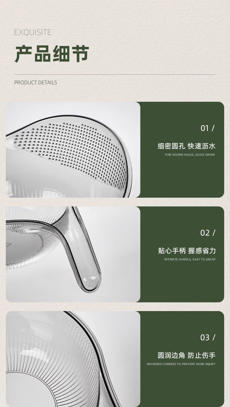 Пластиковая утолщенная корзина для слива риса для кухни многофункциональная с ручкой