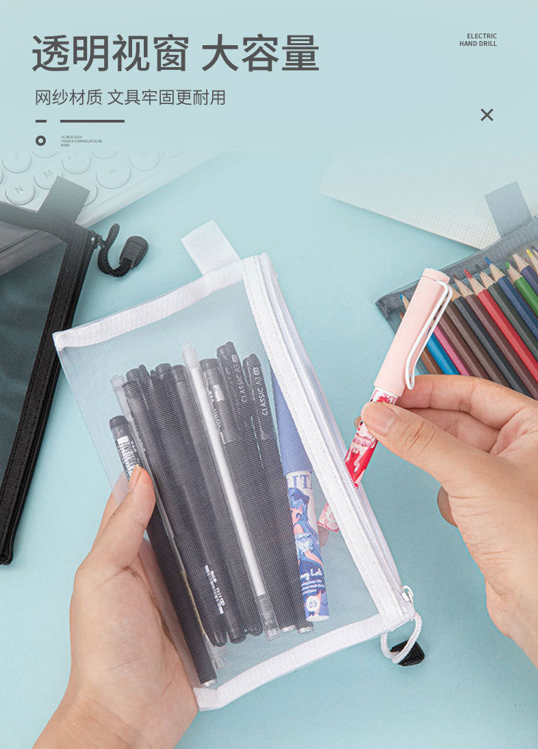 Прозрачная сетчатая сумка-карандаш, сумка для файлов, большая вместительная прочная информационная сумка, студенческая сумка на молнии, сумка для хранения без логотипа
