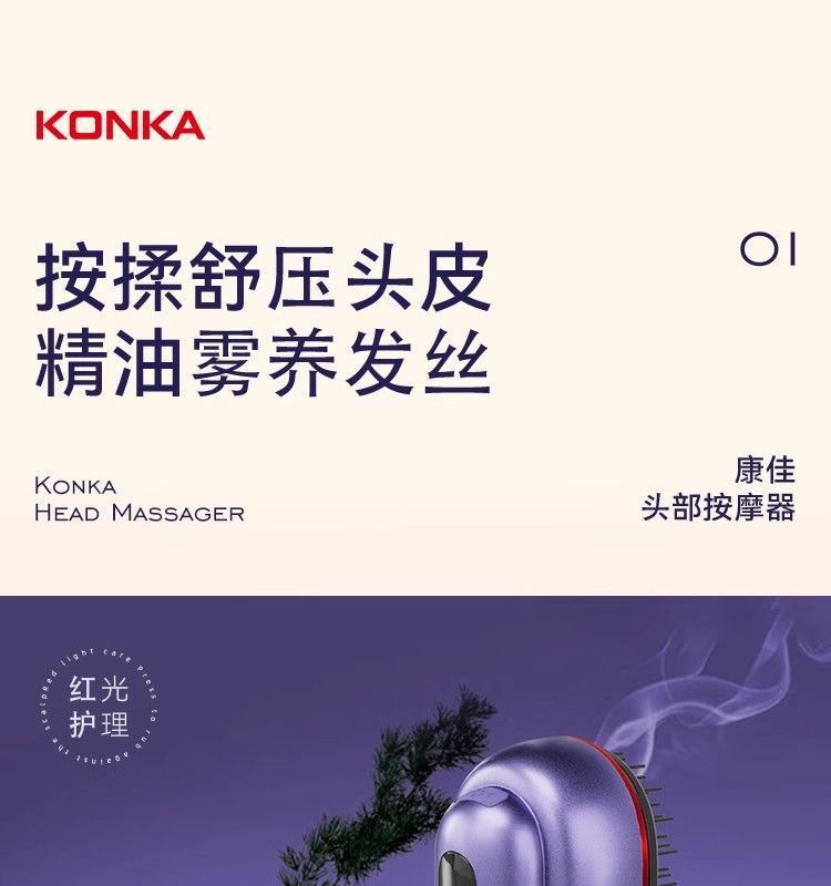 Электрический массажер для головы Konka с красным светом и жидкостным массажем, расческа для ухода за кожей головы с эфирными маслами, устройство для питания и укрепления волос, массажер для волос, подарок на праздник