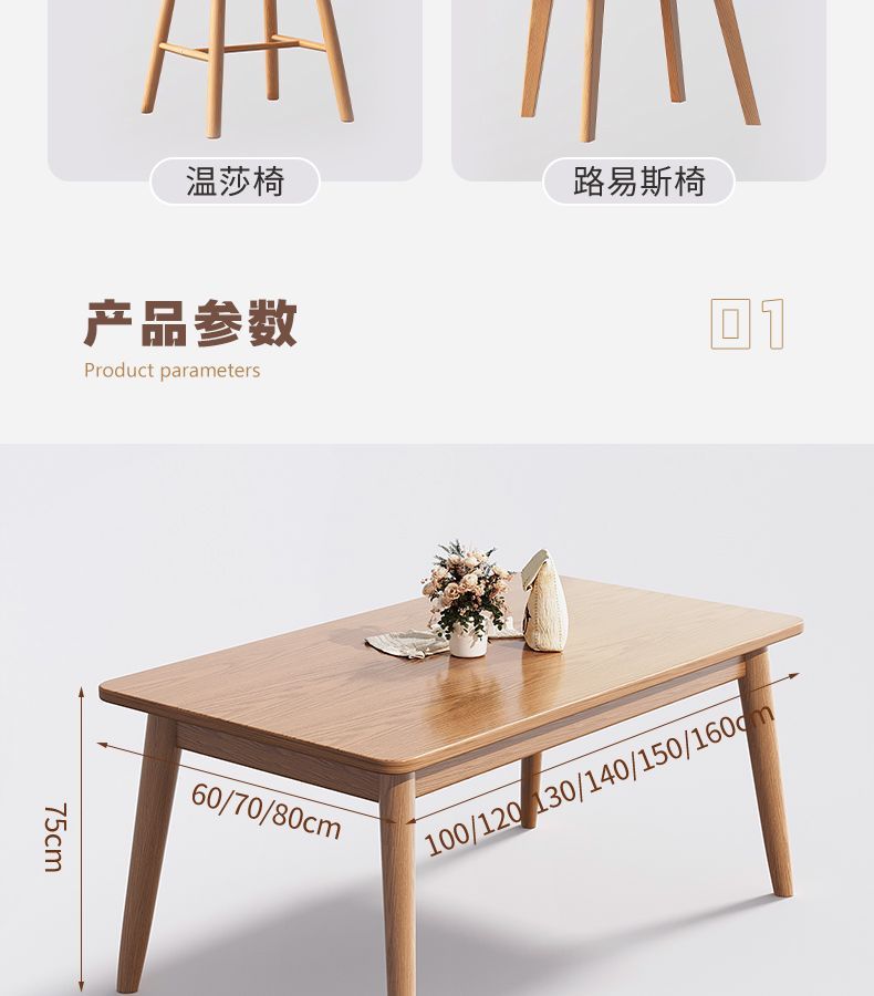 Северный стол из цельного дерева Современный домашний прямоугольный обеденный стол Японский обеденный стол и стулья