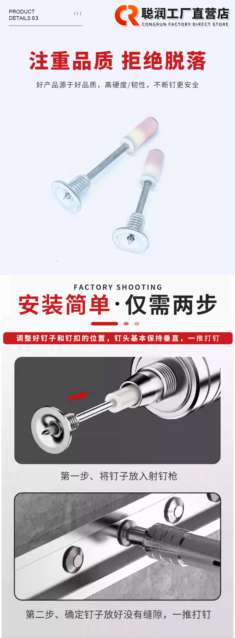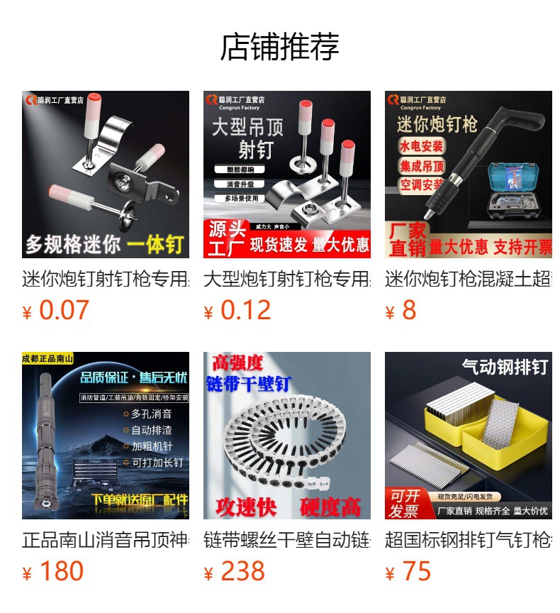 迷你炮钉射钉枪专用射钉吊顶神器一体钢钉圆片消防钉管卡钉挂钩钉