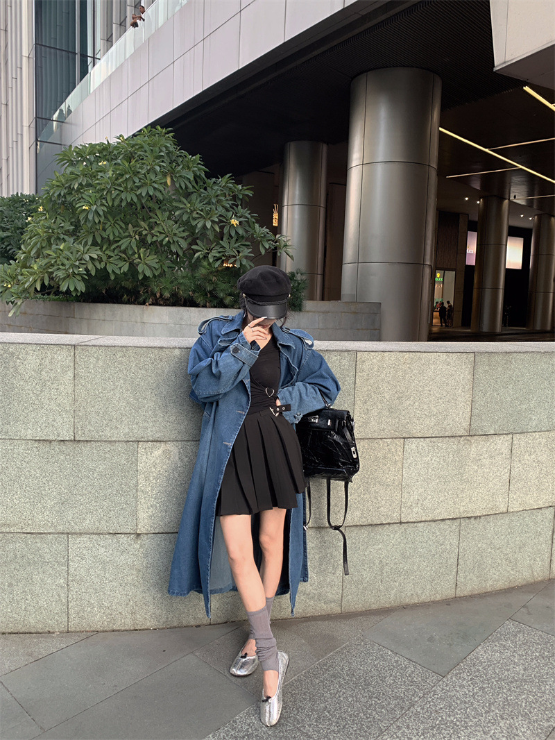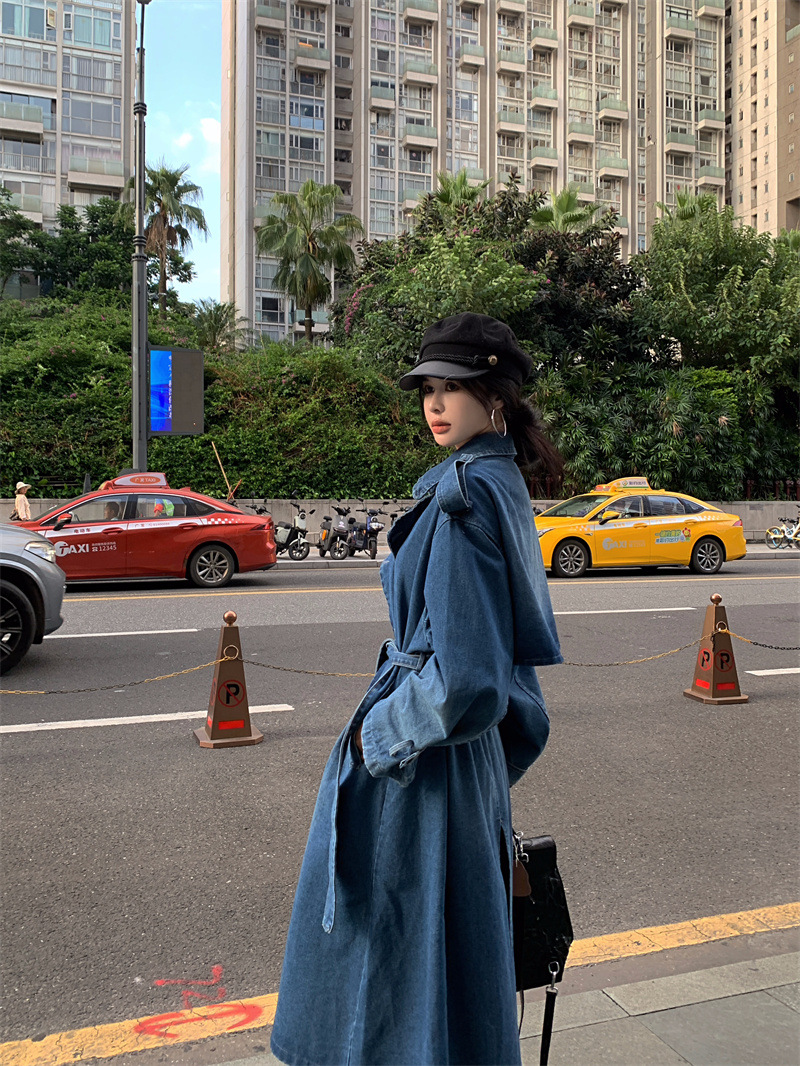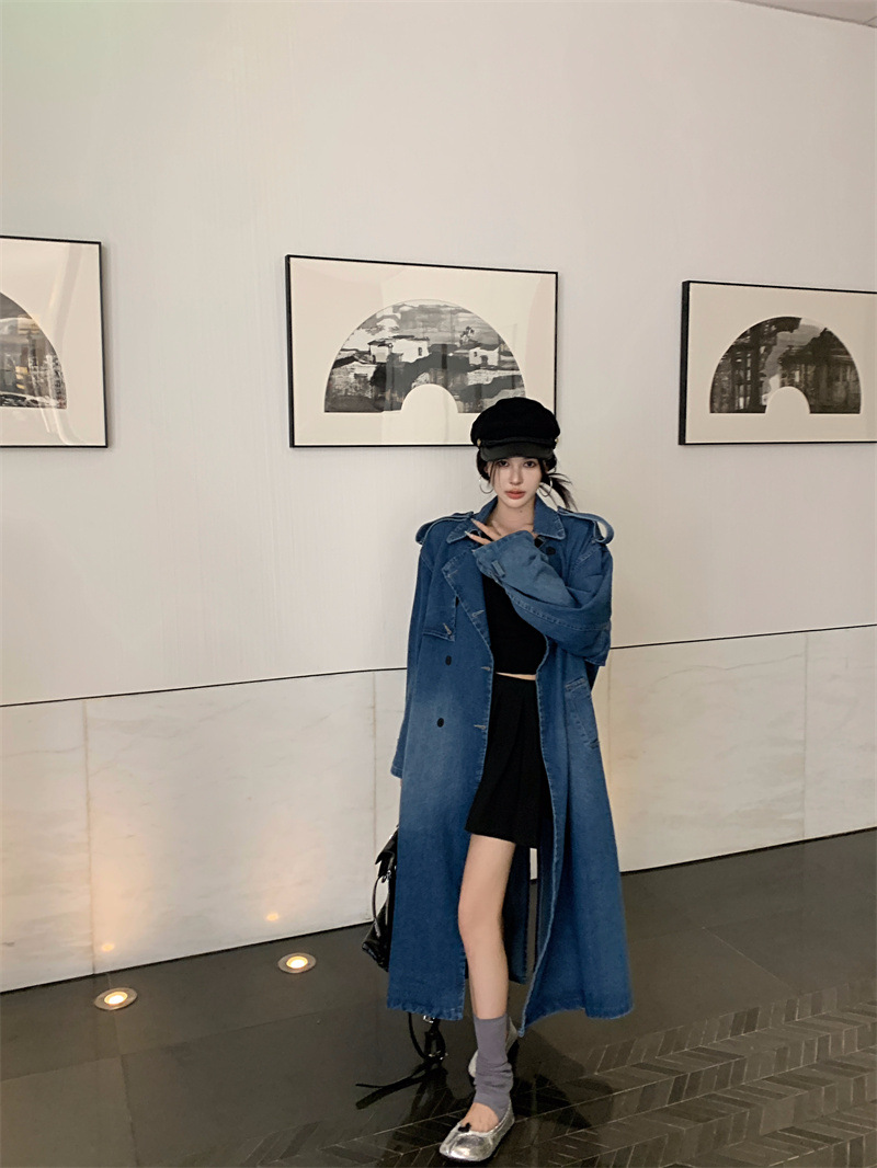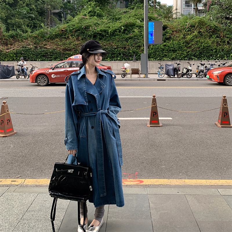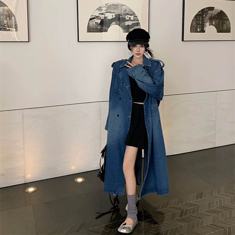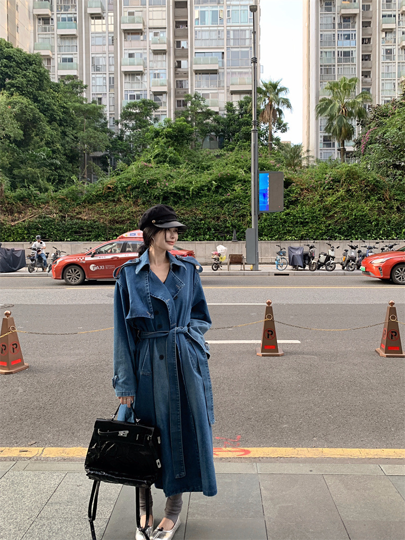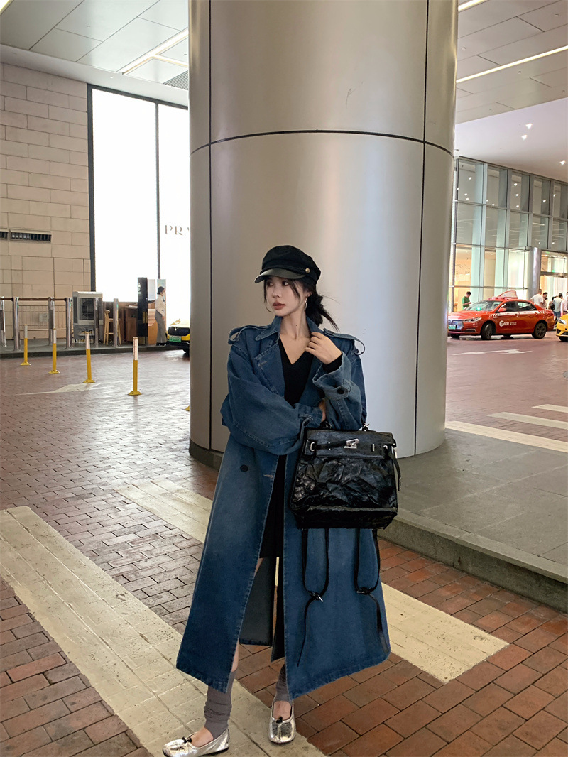 Рекордная цена кожаная куртка джинсовая ветровка осенью свободная ретро длинное пальто высокого уровня