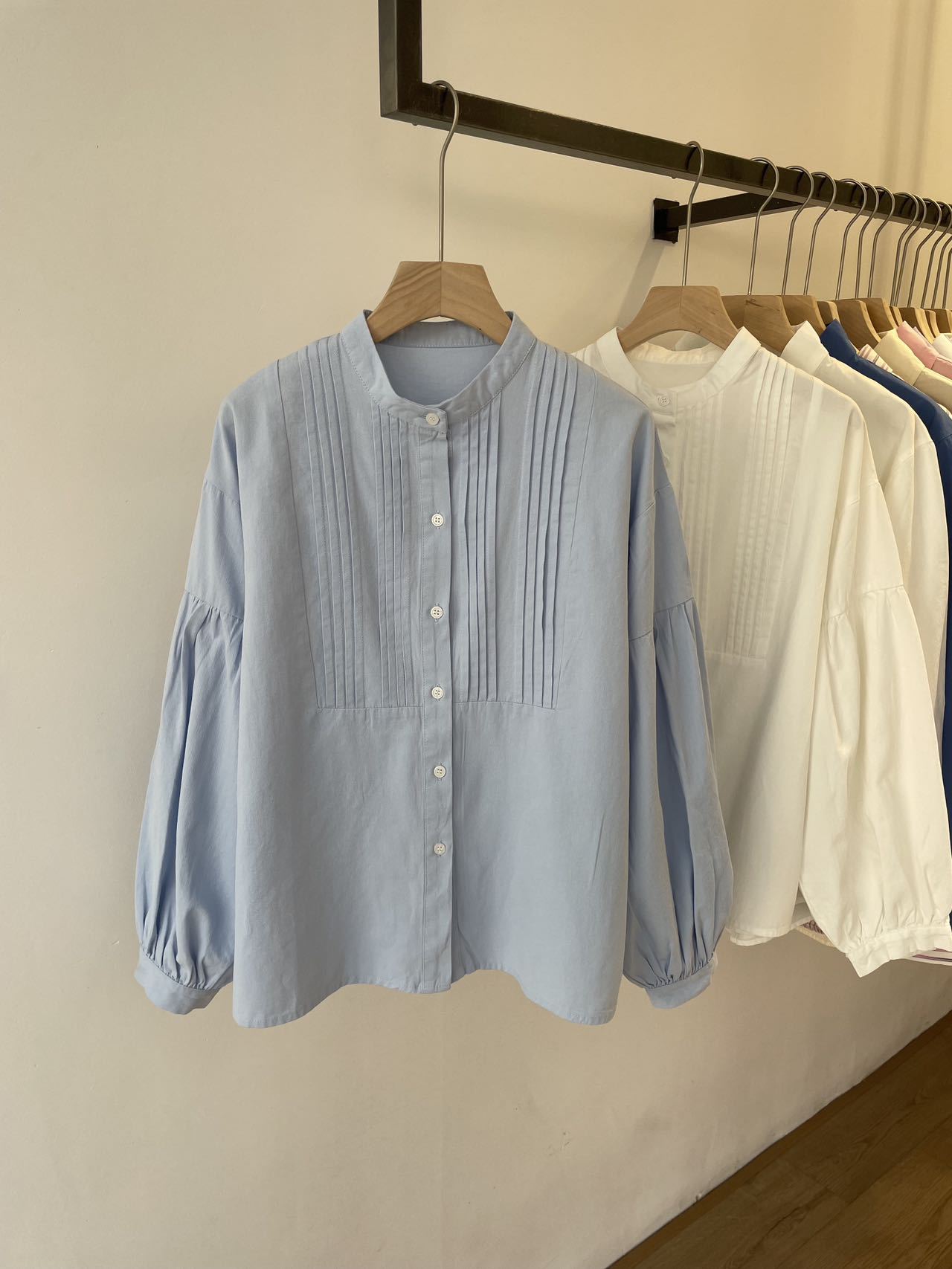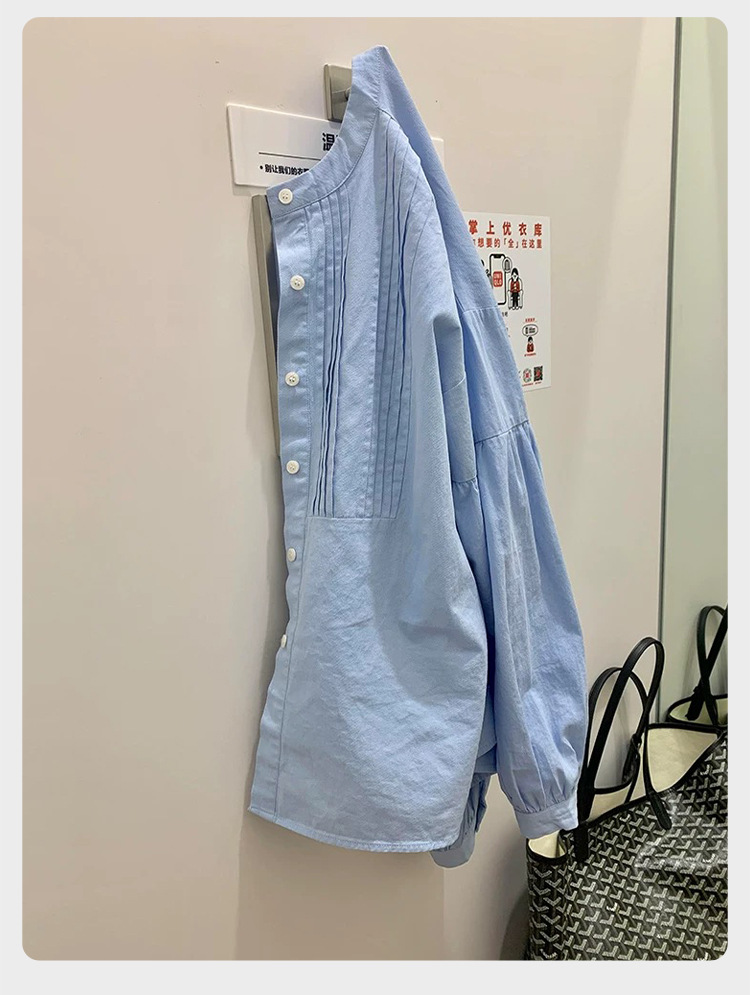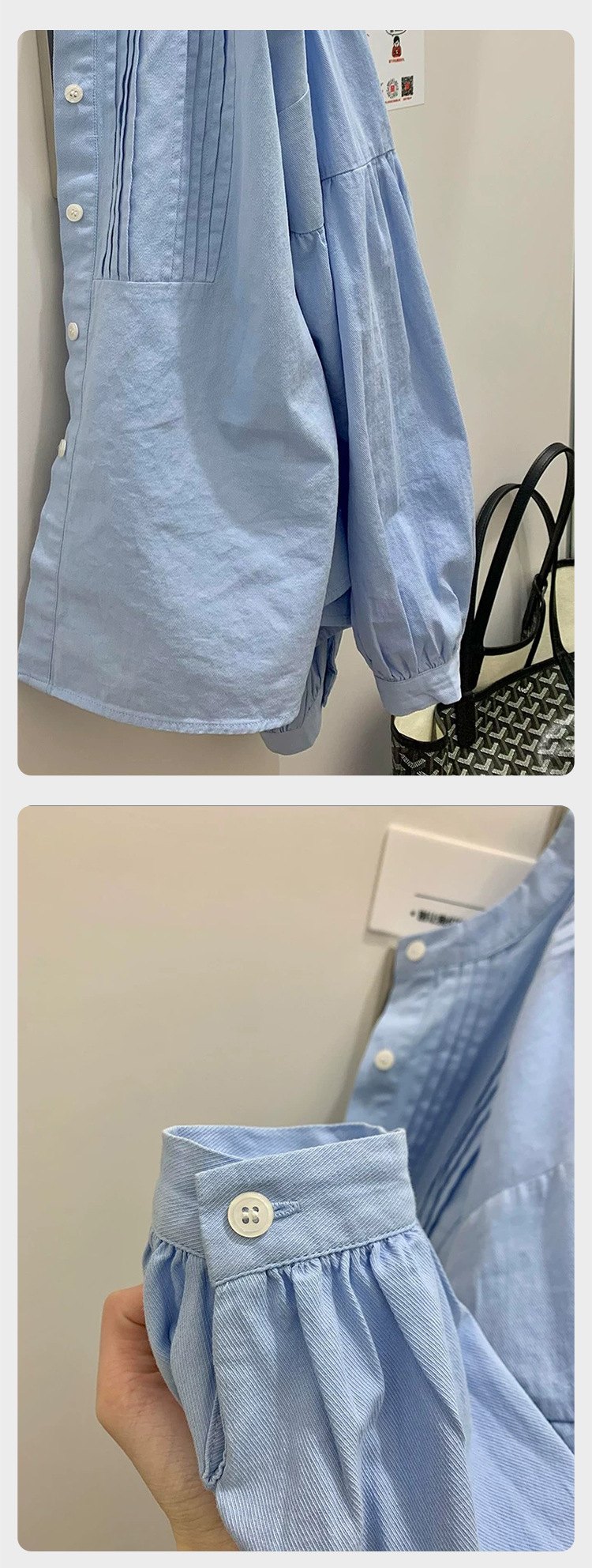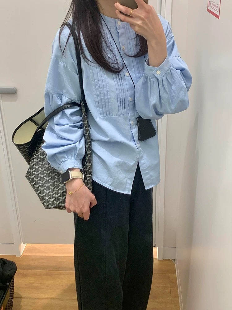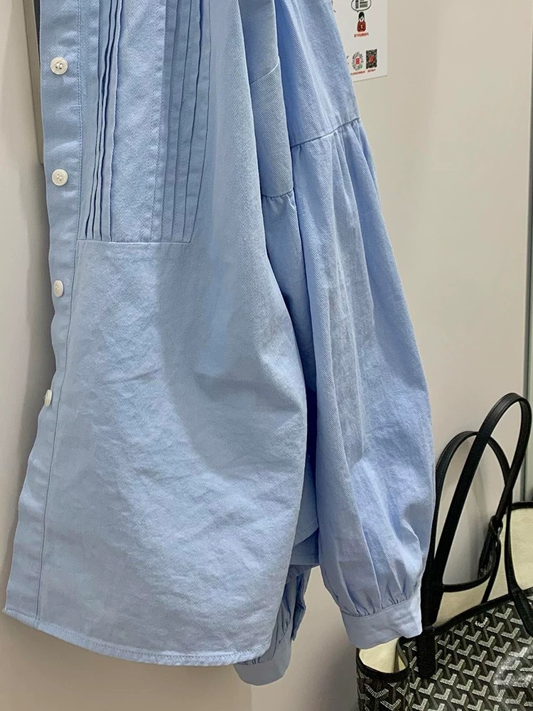 Женская рубашка в стиле французского кэжуал с плиссировкой, складками, из твила, в корейском стиле, свежая и натуральная, универсальная рубашка с длинным рукавом для осени.