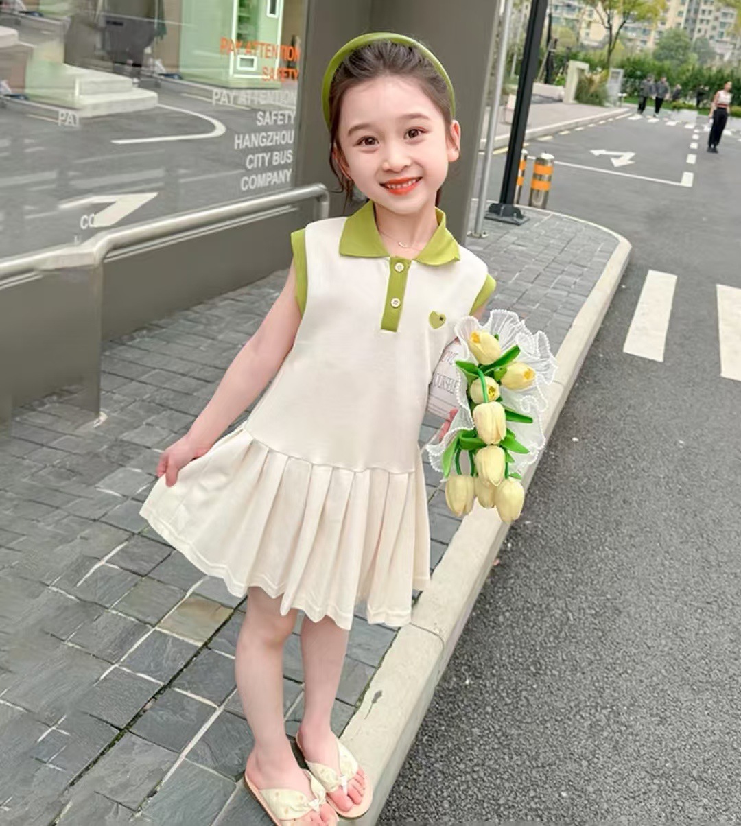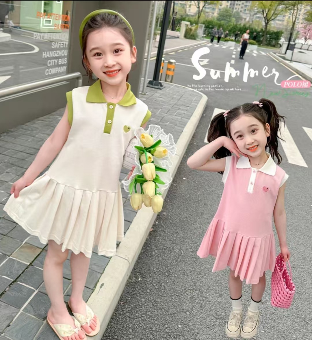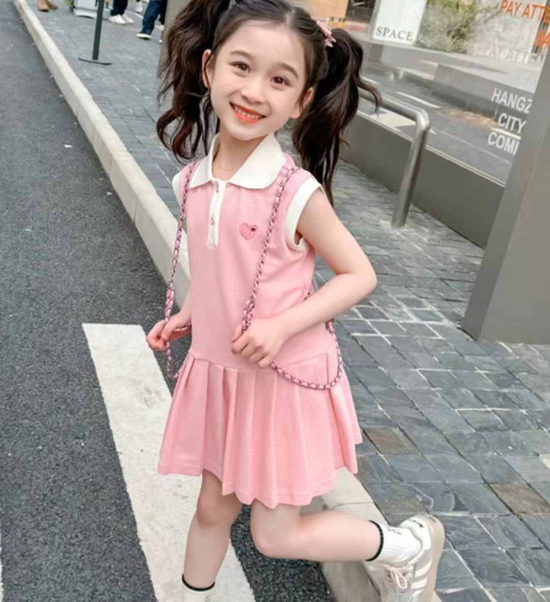 Платье без рукавов для девочек Внешняя торговля 2025 Love polo платье иностранная мода платье принцессы летнее платье с короткими рукавами