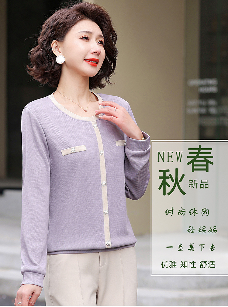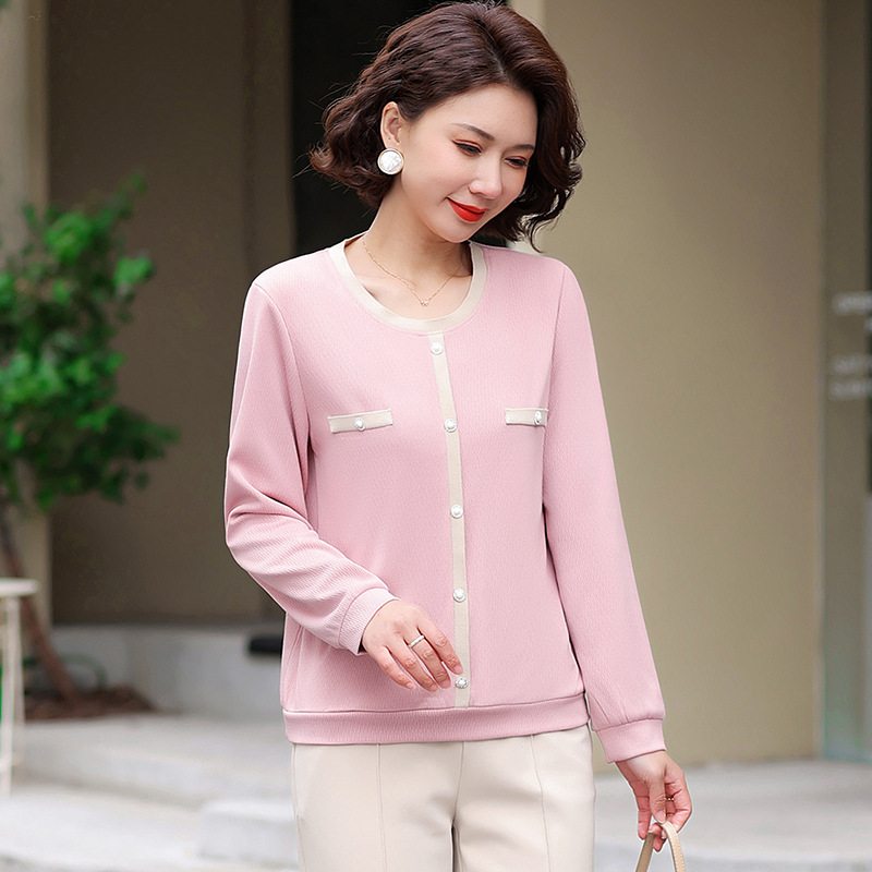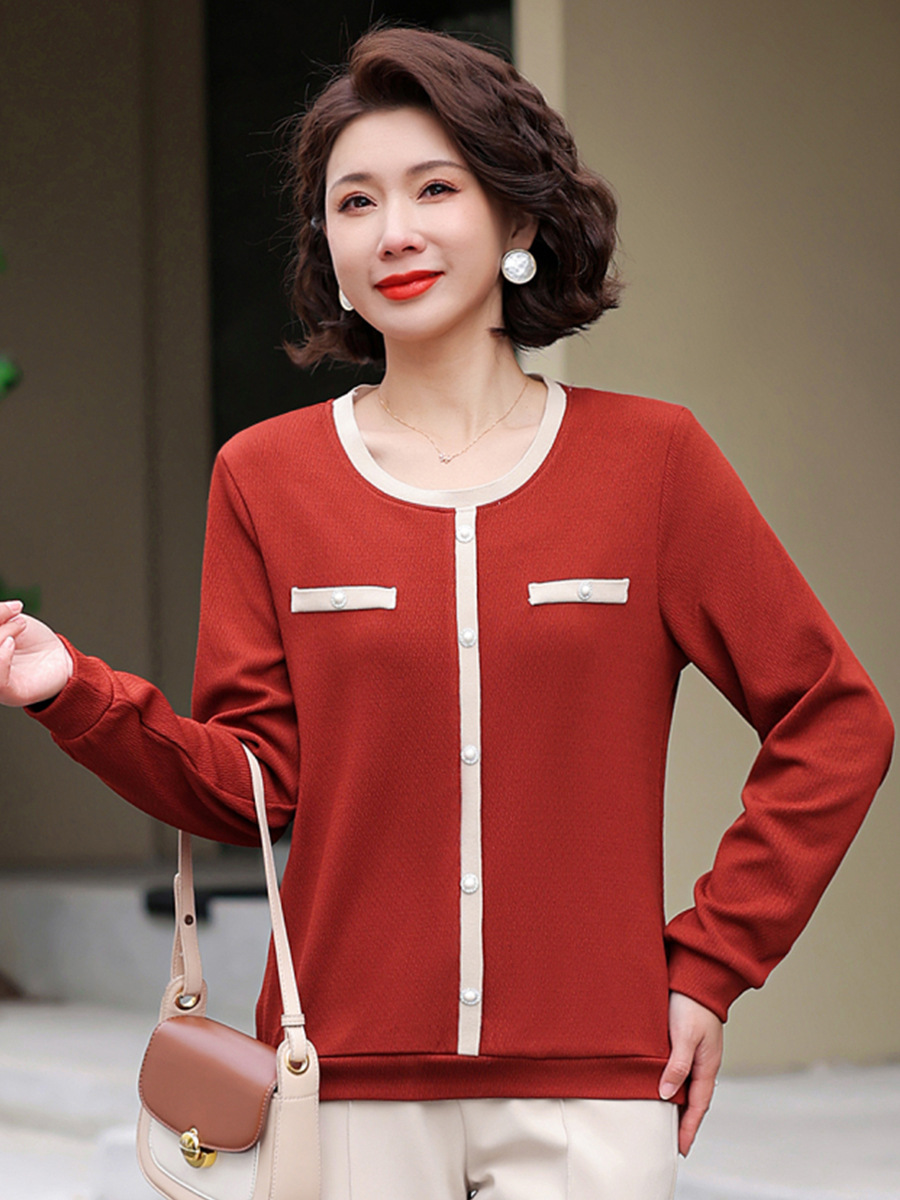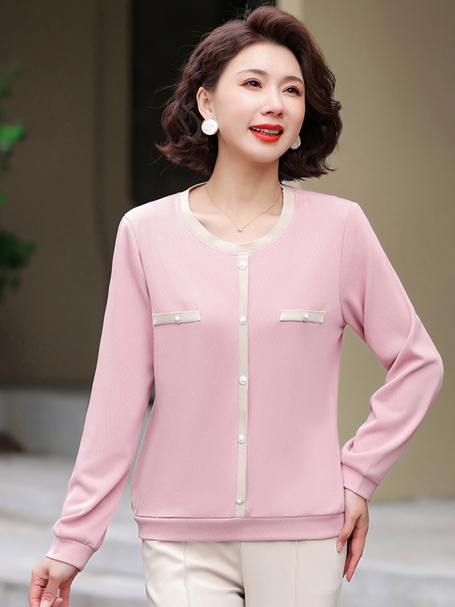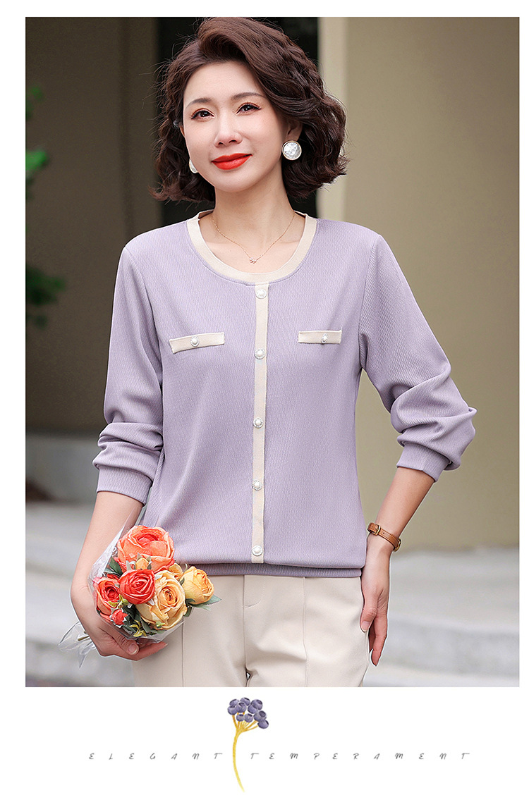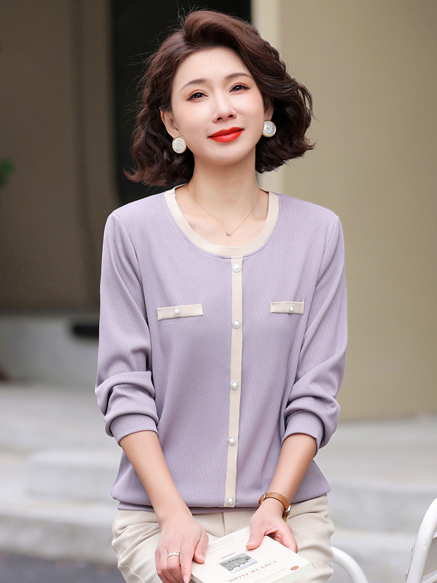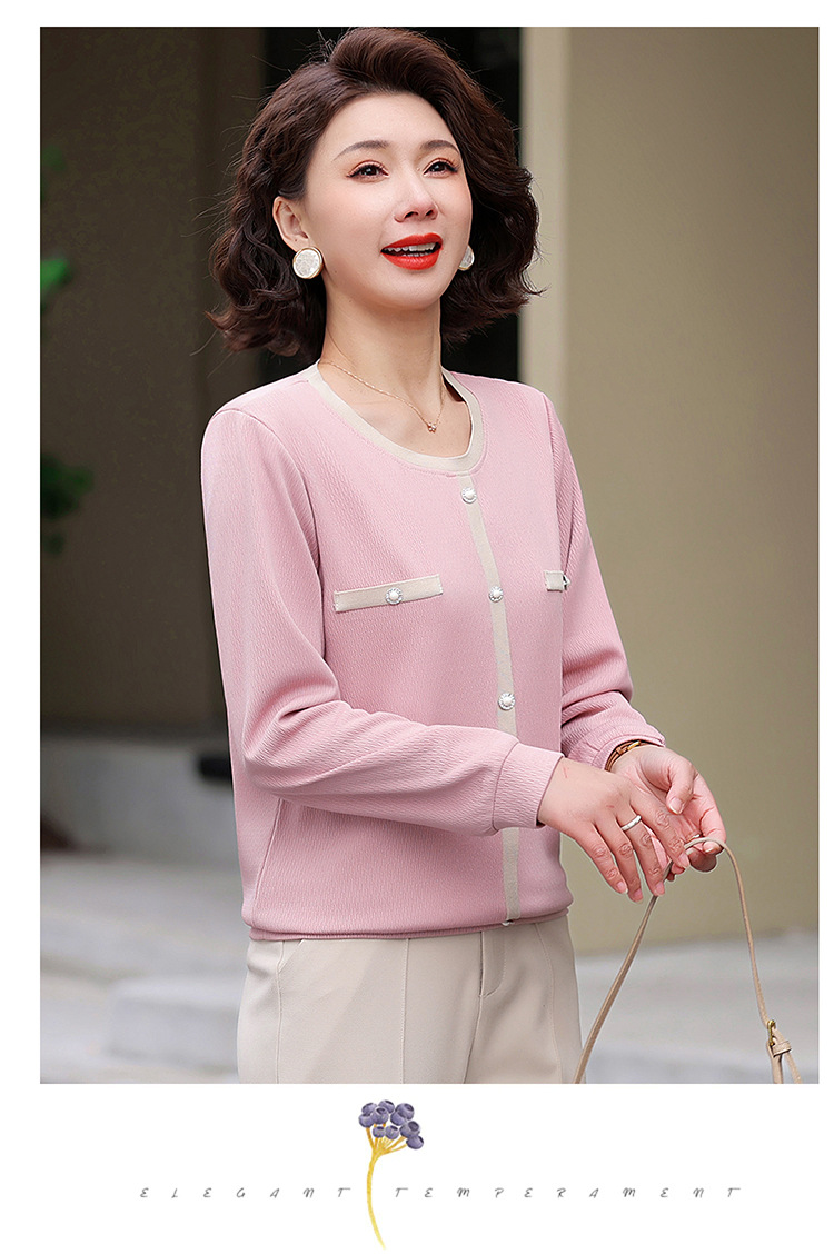 Qaiying среднего и пожилого возраста, наконец, одежда для весны и осени 2025 года, рубашка с круглым вырезом, темперамент, большая мама, маленькая рубашка