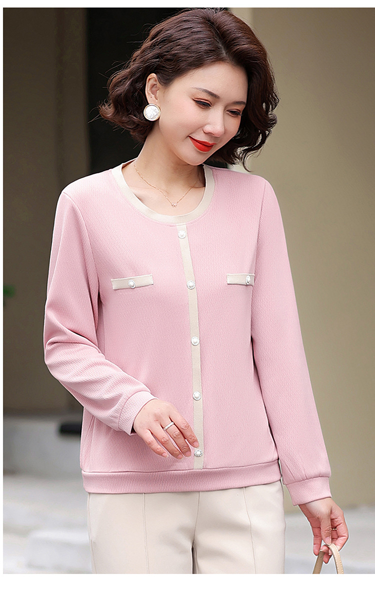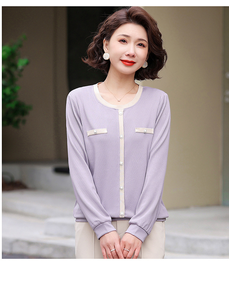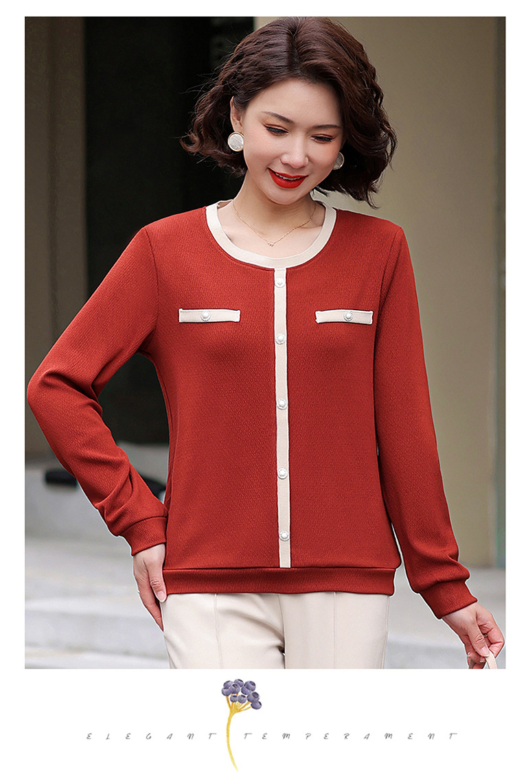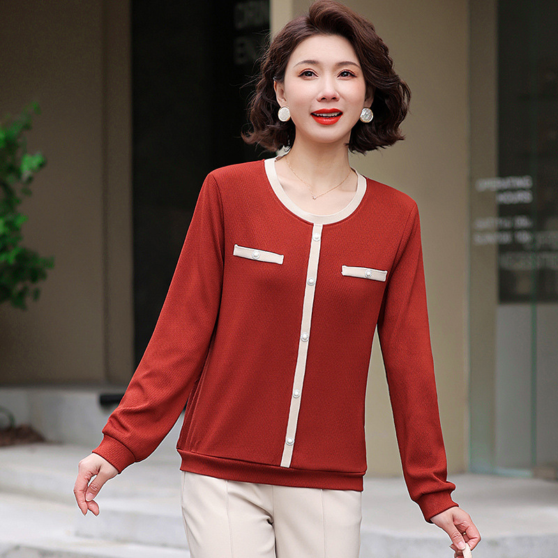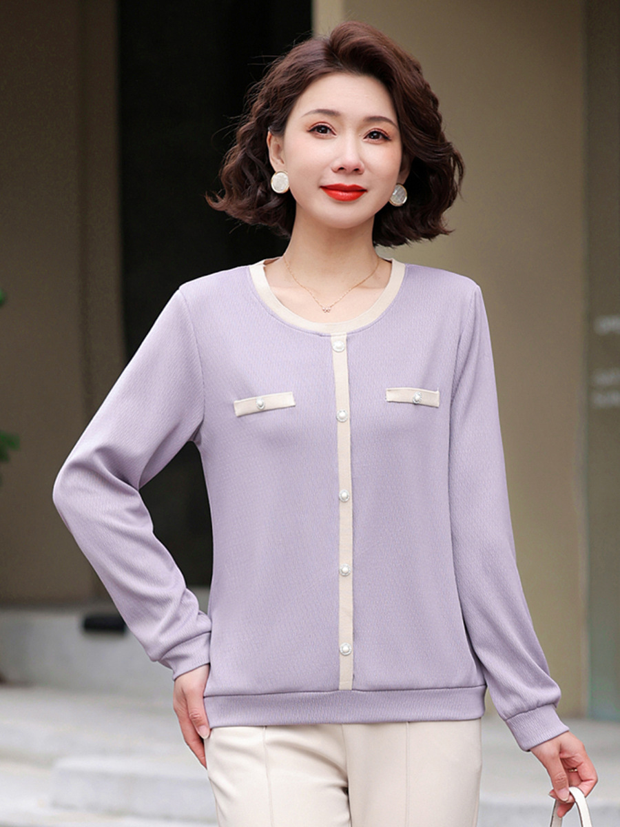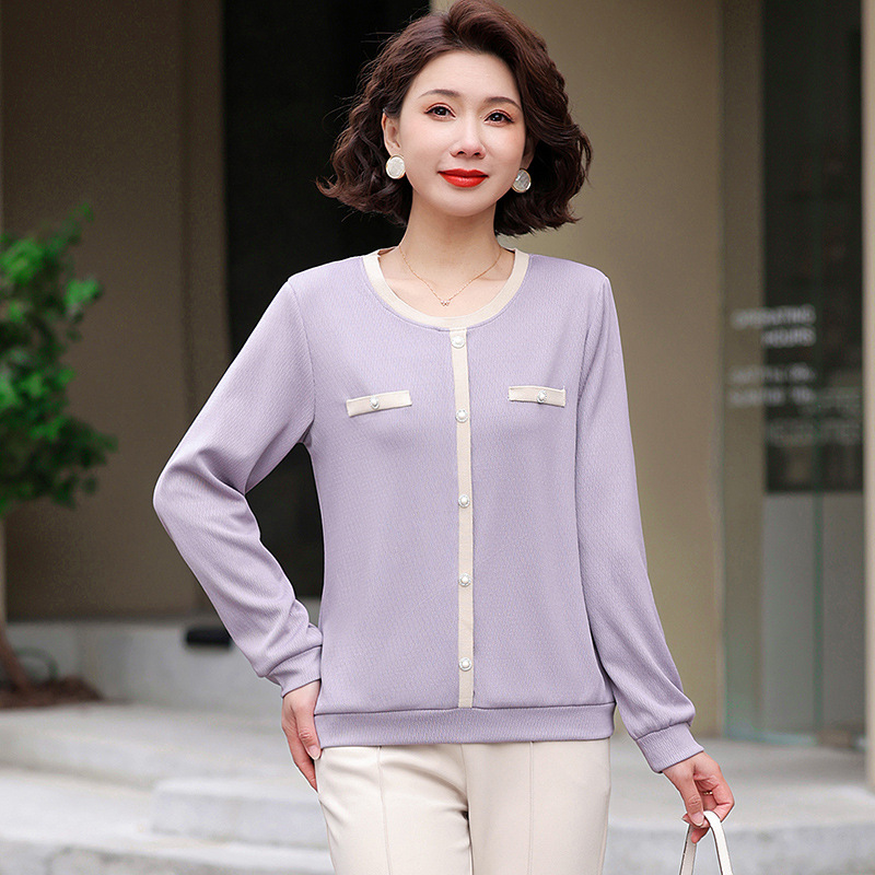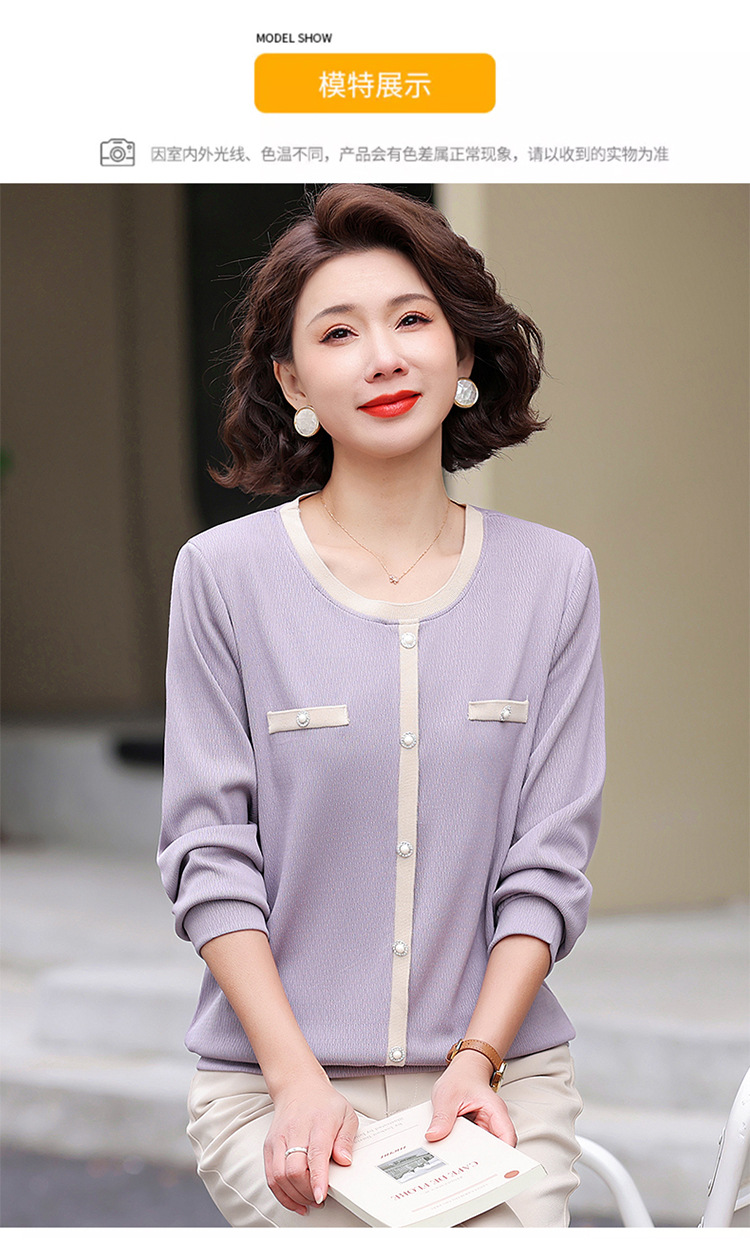 Qaiying среднего и пожилого возраста, наконец, одежда для весны и осени 2025 года, рубашка с круглым вырезом, темперамент, большая мама, маленькая рубашка