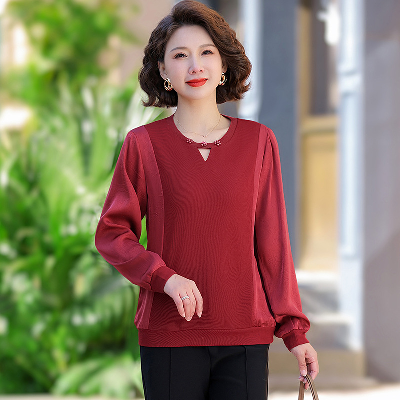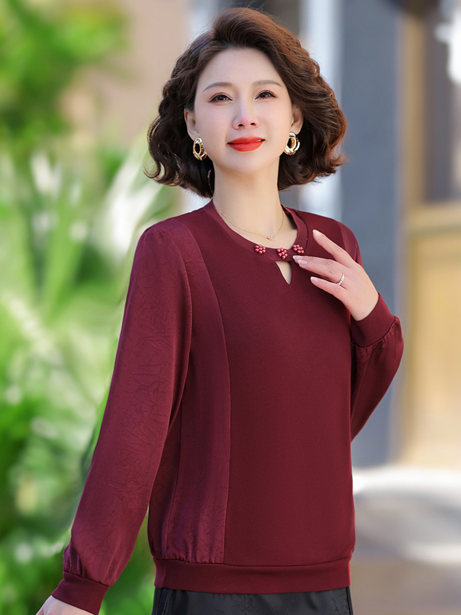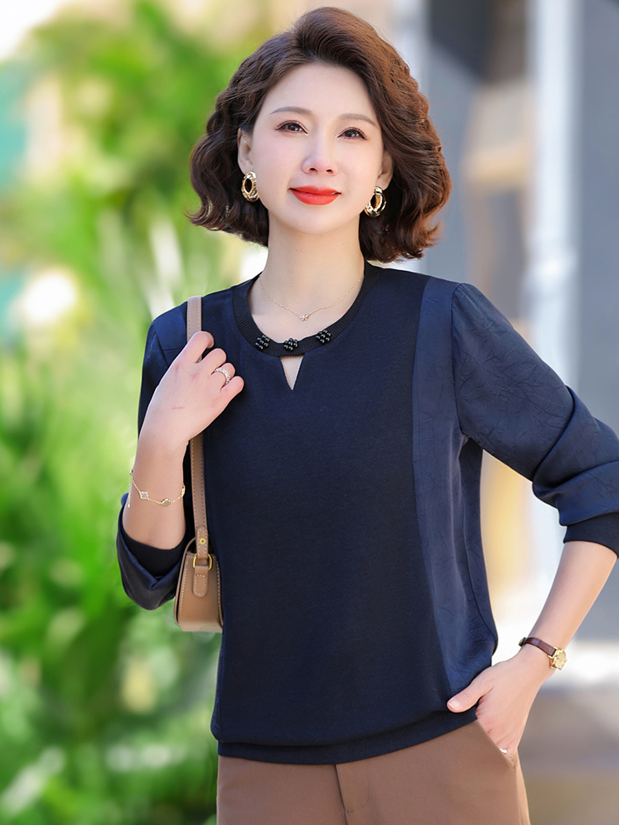 Мама маленькая рубашка весна и осень мода иностранная футболка с длинными рукавами 2025 новый средний и пожилой женский весенний наряд с круглым вырезом