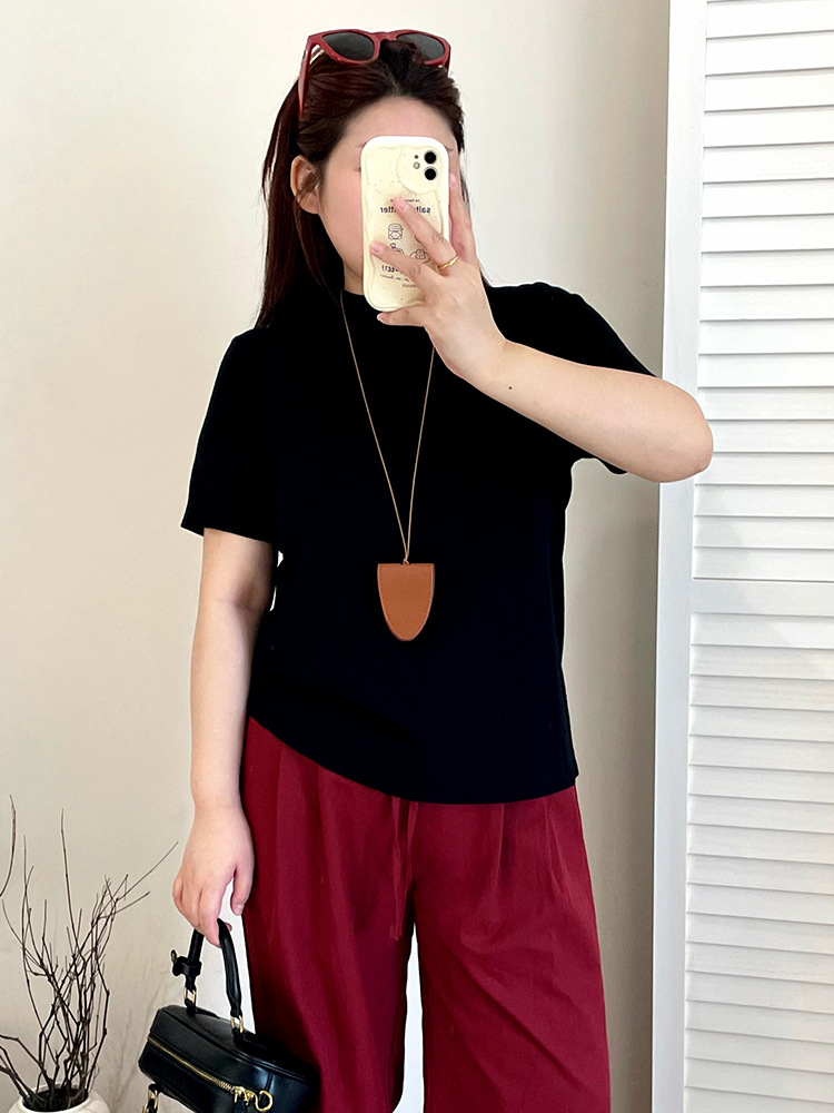 Женский универсальный свитер большого размера с воротником-стойкой и рукавом до локтя, осень 2025, для полных женщин, подходит для носки на выход или в качестве базового слоя, трикотажный свитер 22872