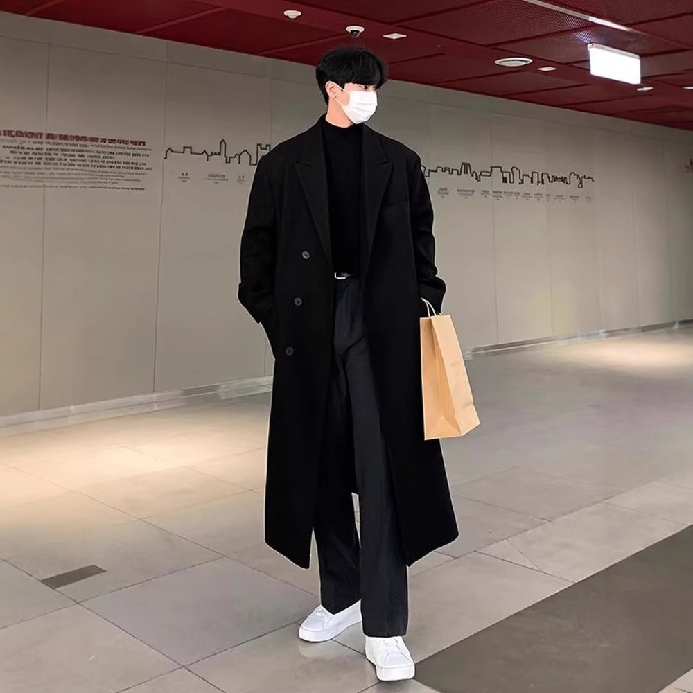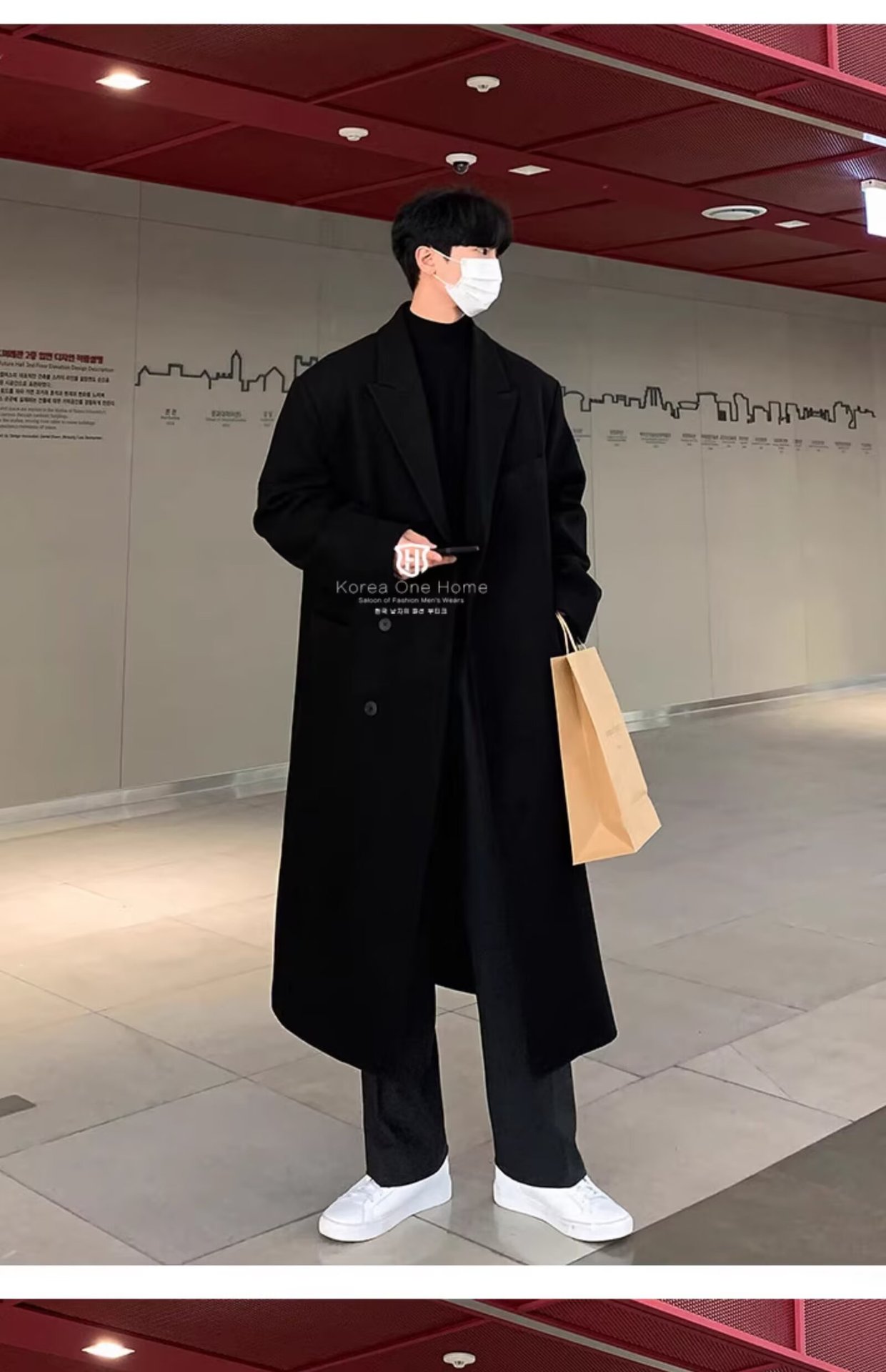 Новое зимнее мужское шерстяное пальто средней и длинной длиной до колен