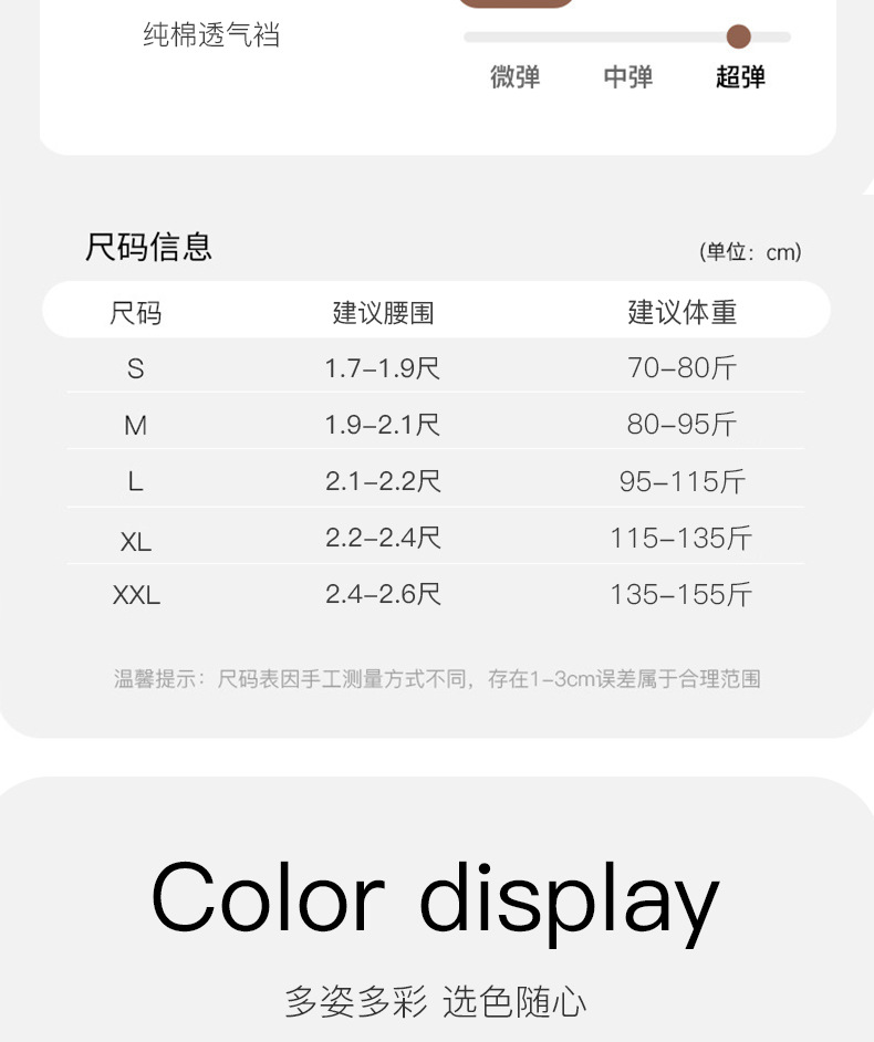 颜色:黑色,白色,酒红、紫色、虾红、绿色