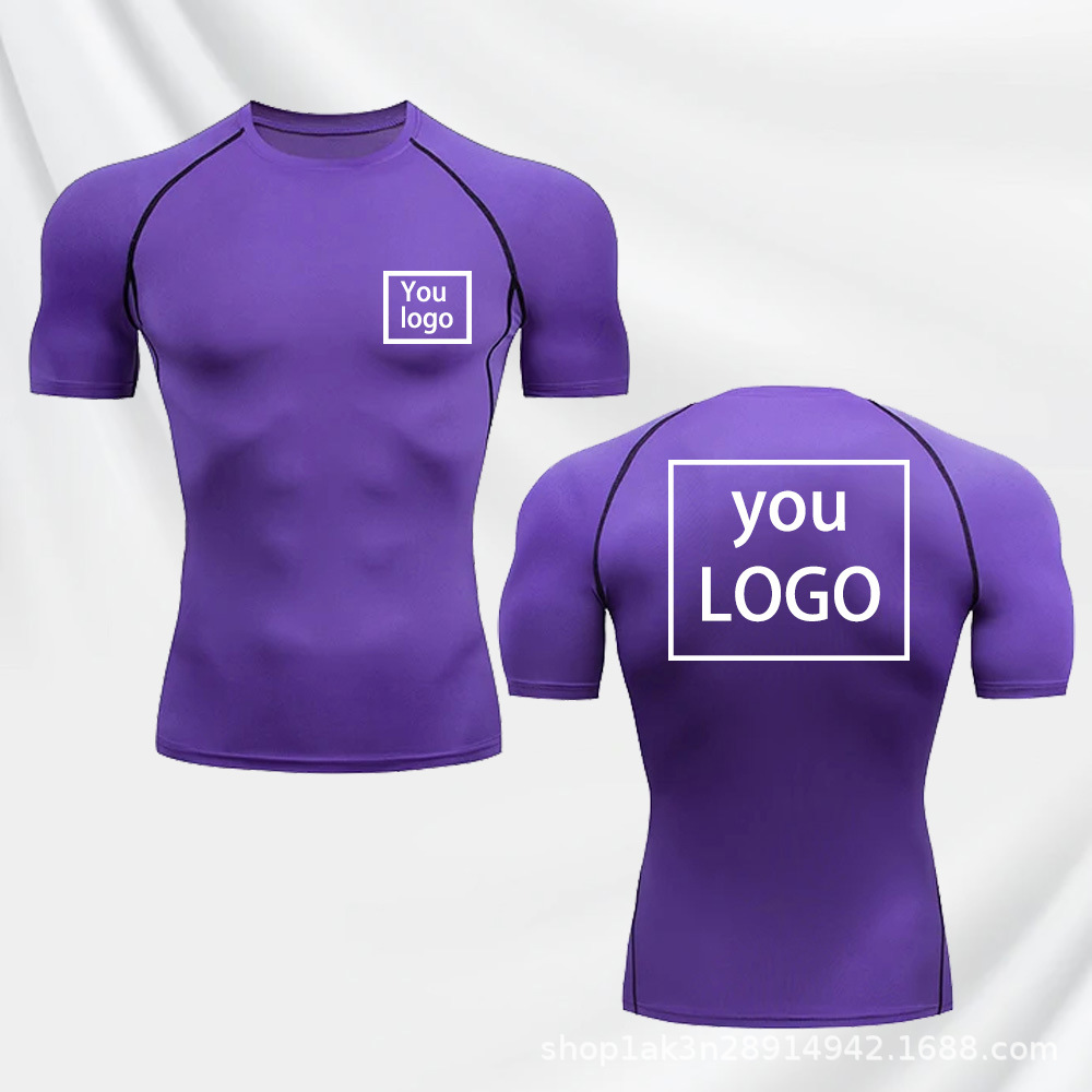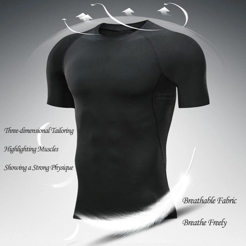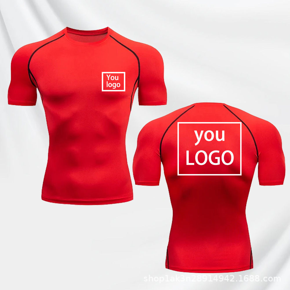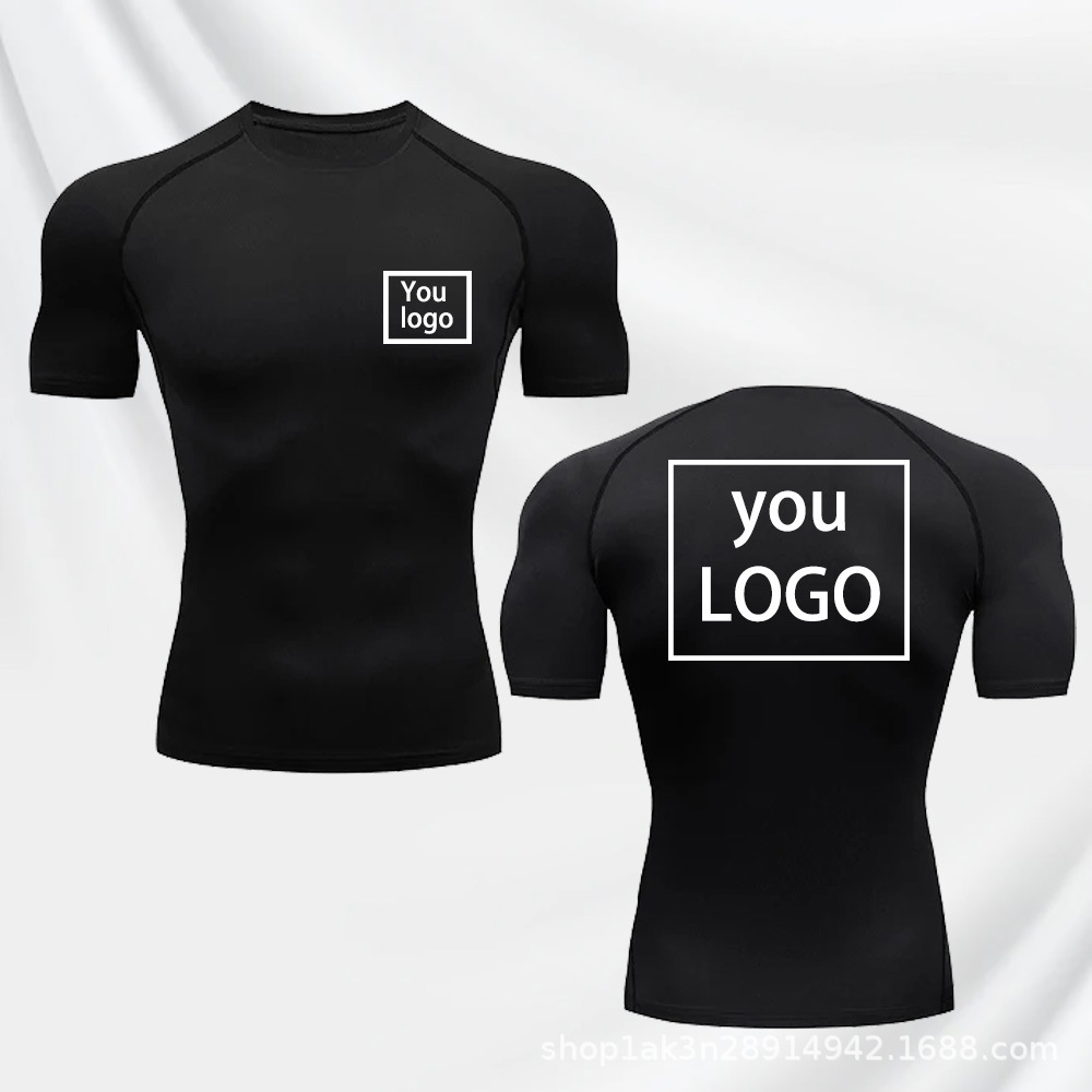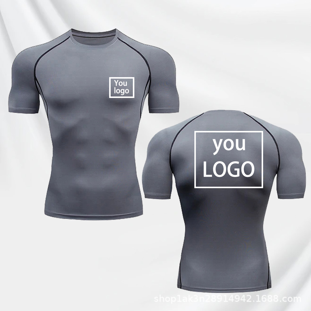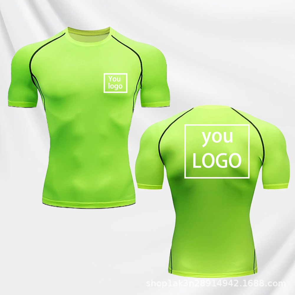 Трансграничные мужские колготки Быстросохнущий бег Спортивная одежда с высокой бомбой Тренировка с короткими рукавами поглощает пот Мужская спортивная одежда футболка на открытом воздухе
