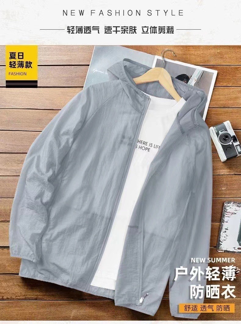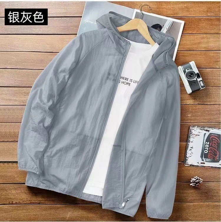 Ультратонкая солнцезащитная одежда из ледяного шелка для мужчин, ветровка с капюшоном, свободная спортивная куртка, солнцезащитная одежда для мужчин, модная, дышащая, с защитой от ультрафиолета.