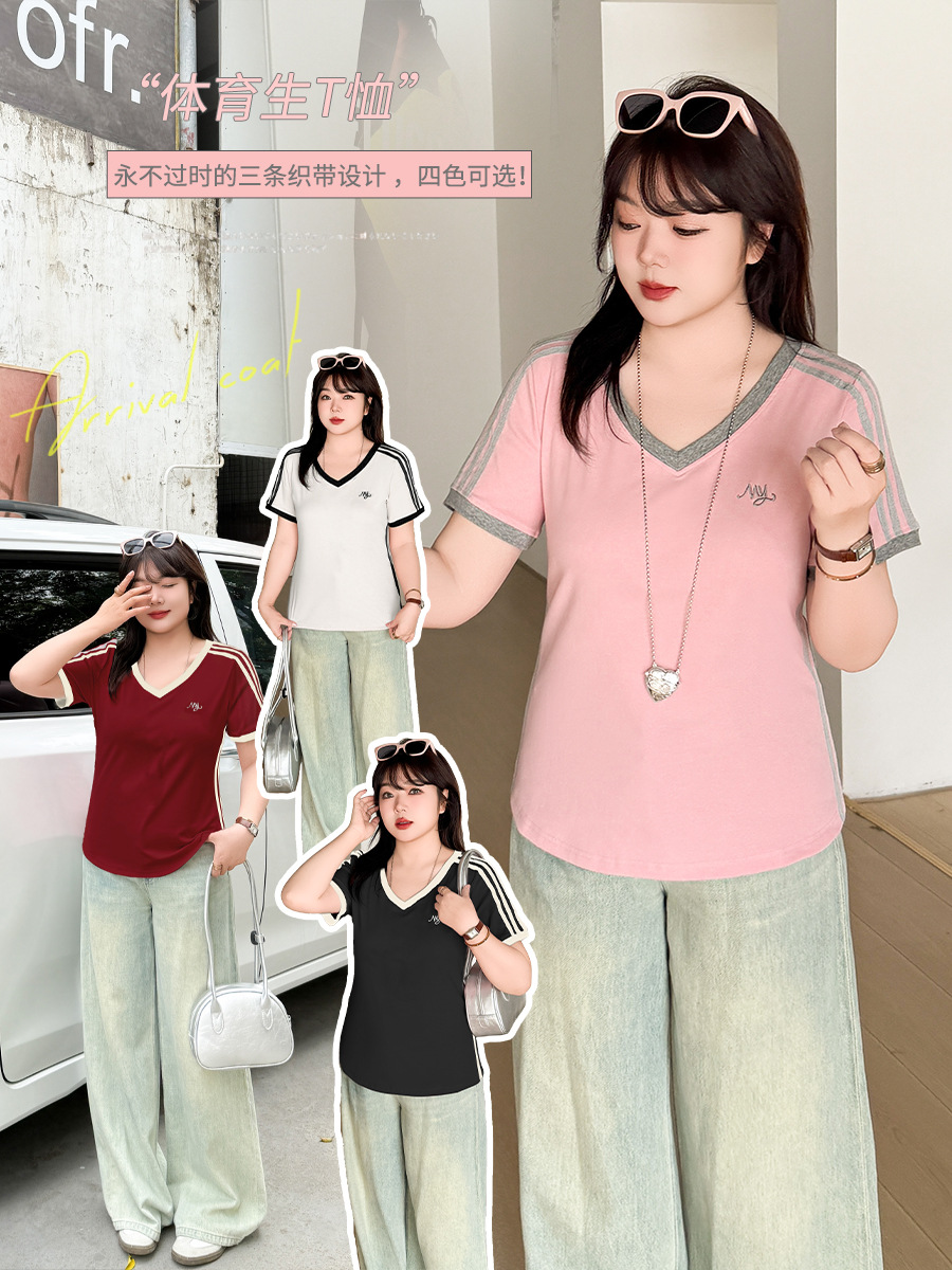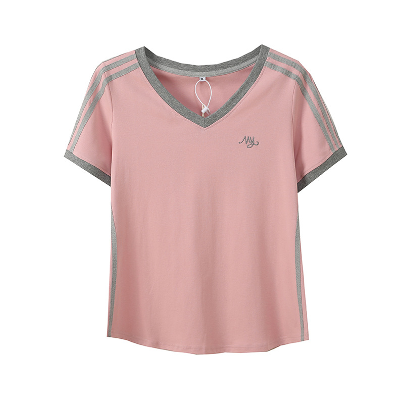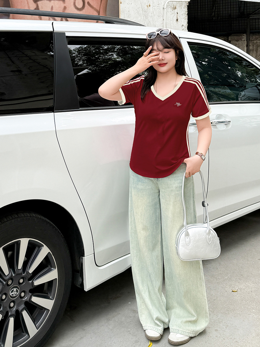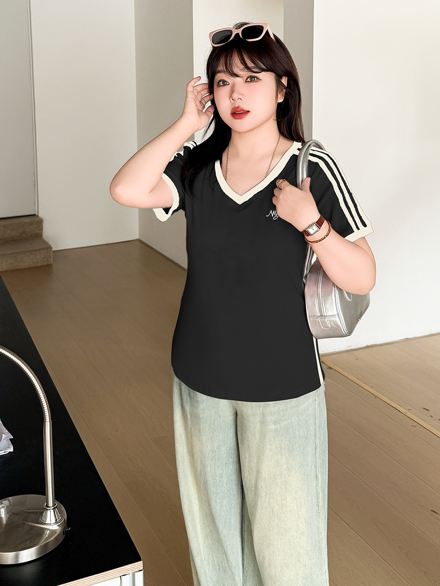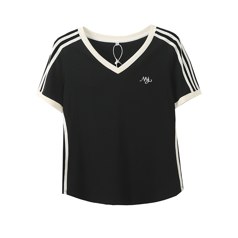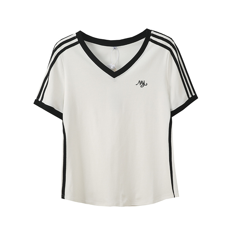 Футболка Inno большого размера с контрастными полосками и V-образным вырезом, с короткими рукавами, весенне-летняя новинка, облегающий топ 212079