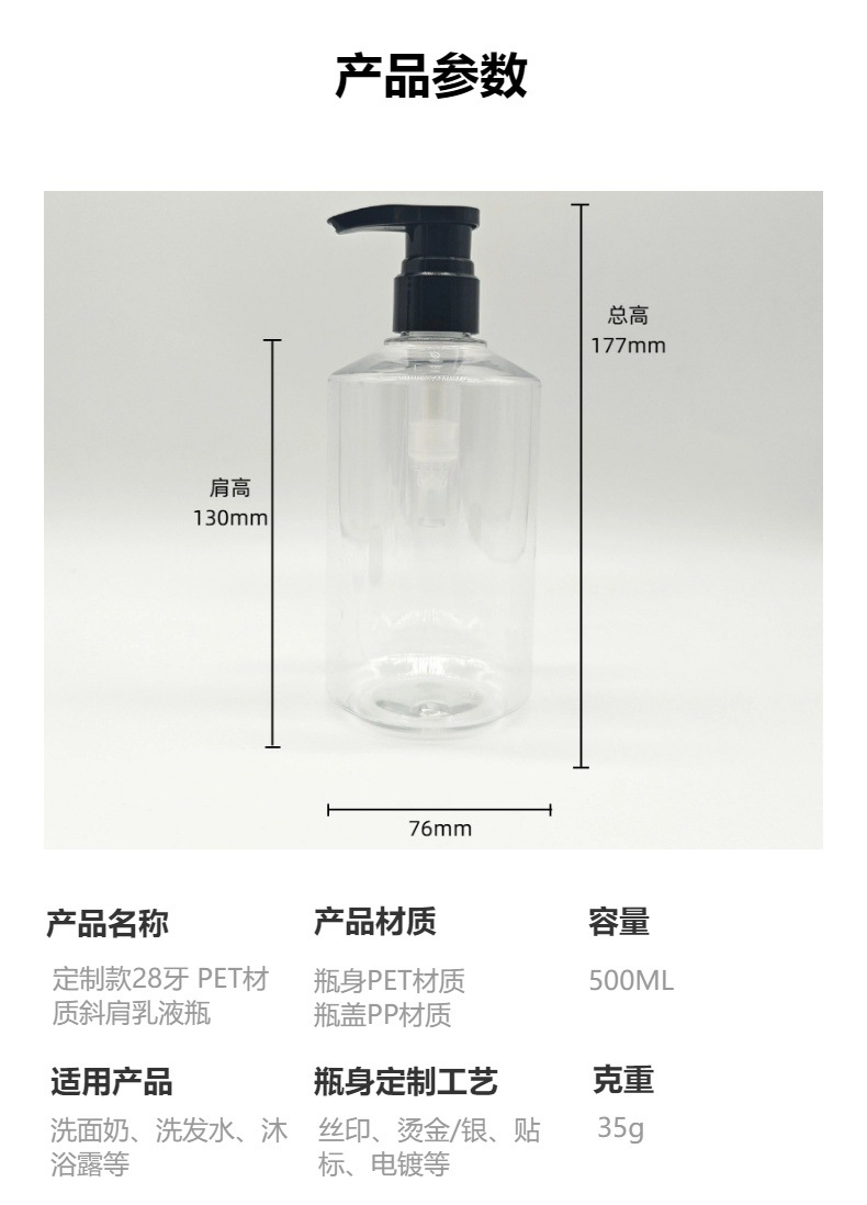 Оптовая продажа 500 мл лосьон бутылка шампунь дезинфицирующее средство для рук бутылка пластиковая бутылка на заказ 28 зуба косой плечо прозрачный
