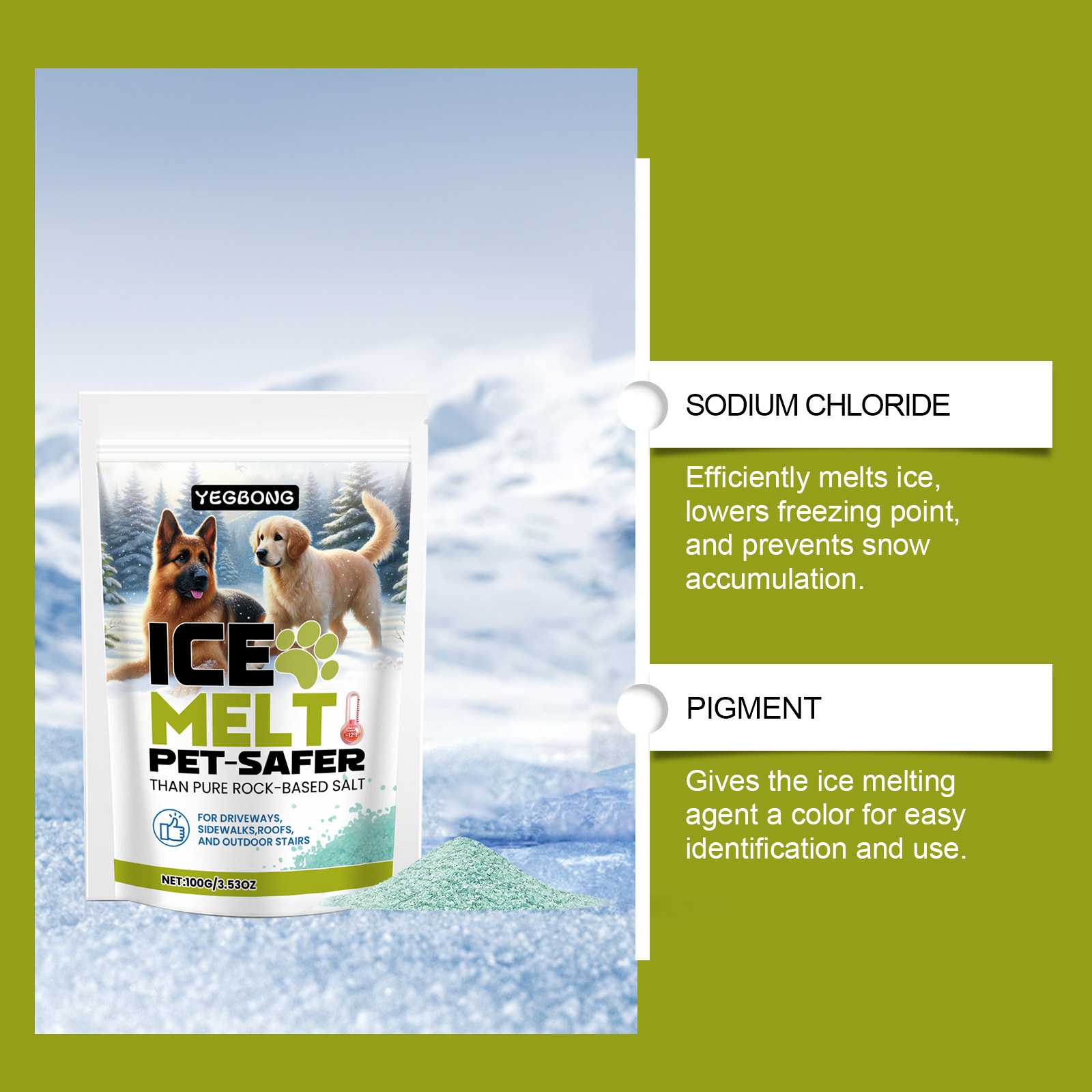 YEGBONG ледоплавильный агент зимний бетонный пол уличный питомец дружелюбный таяние льда и таяние снега удобный очиститель