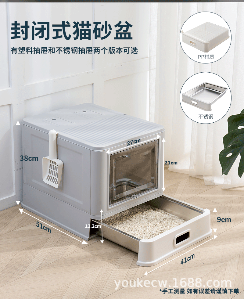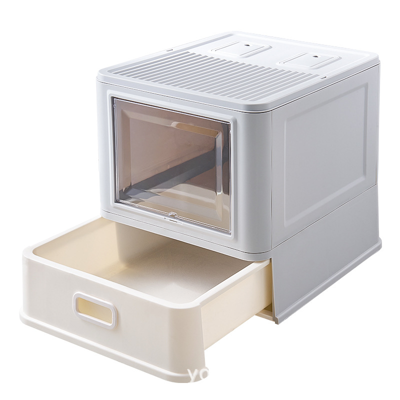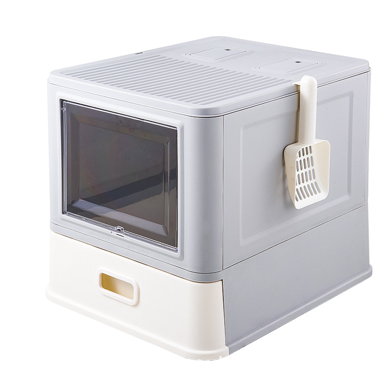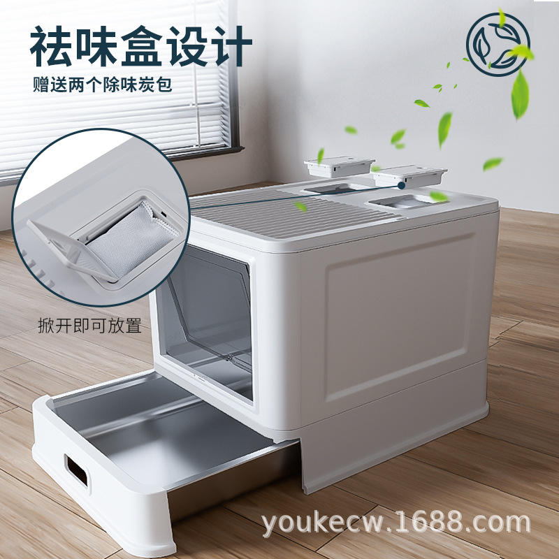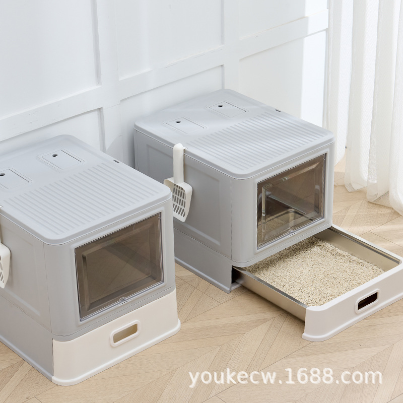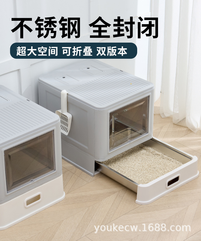 Крупный складной закрытый кошачий туалет из нержавеющей стали и пластика PP, выдвижного типа