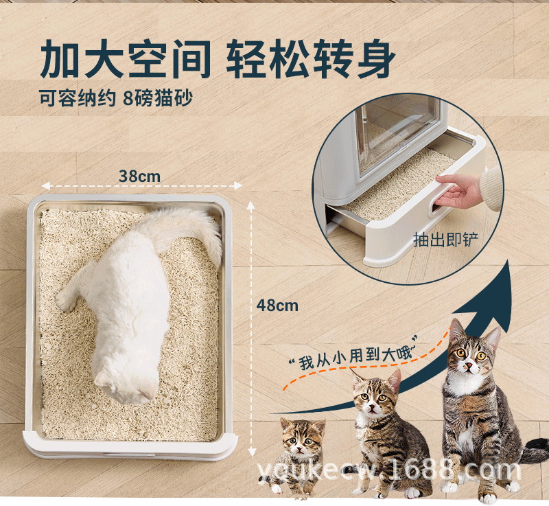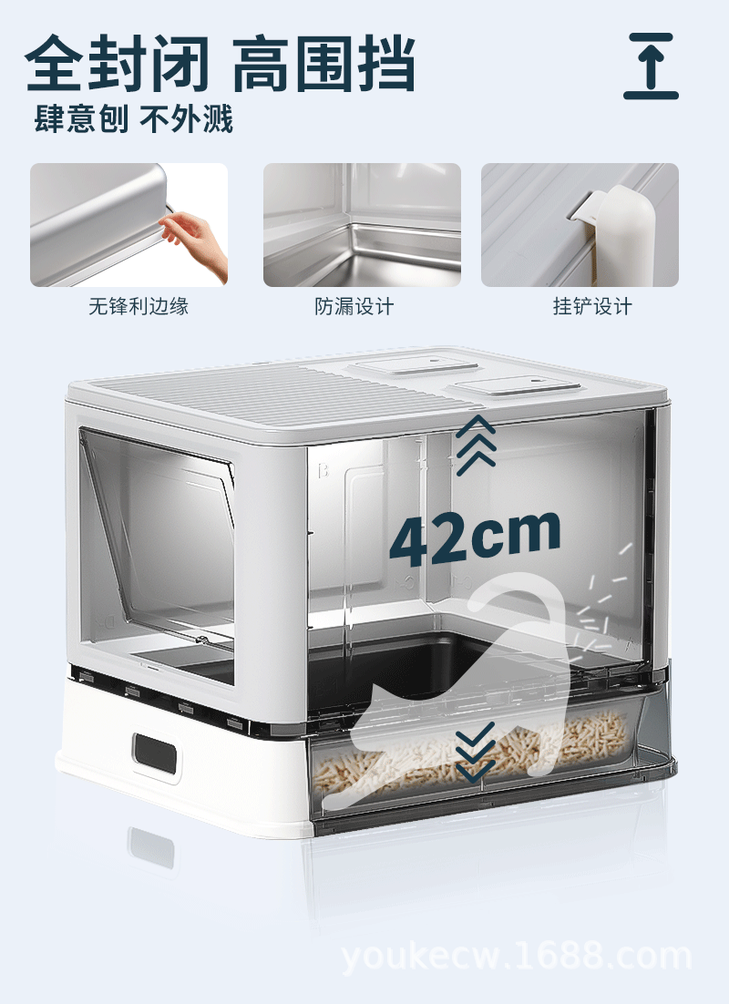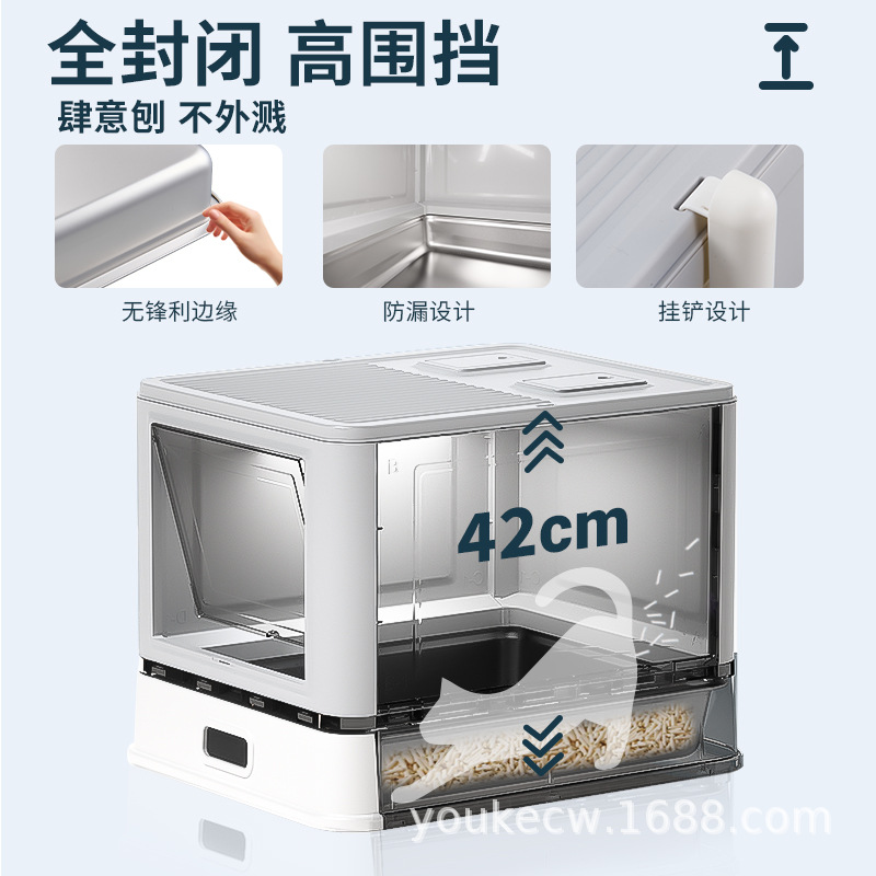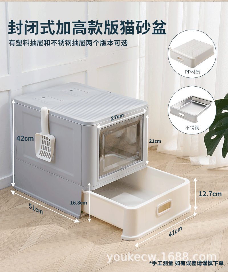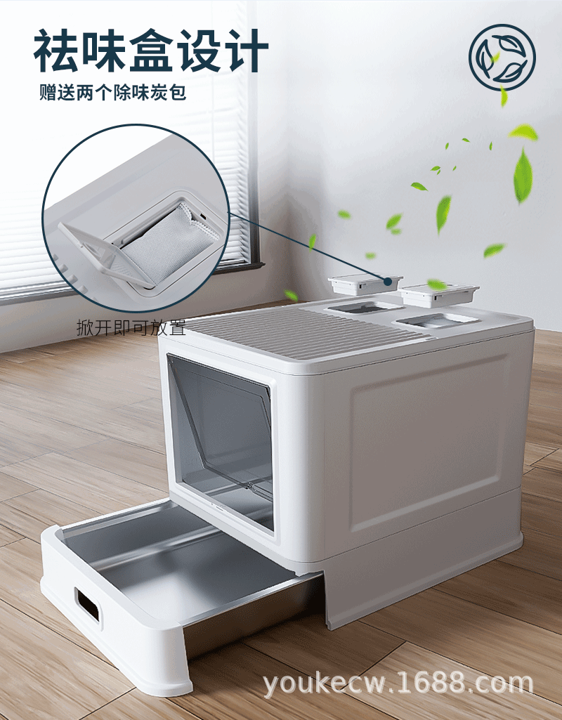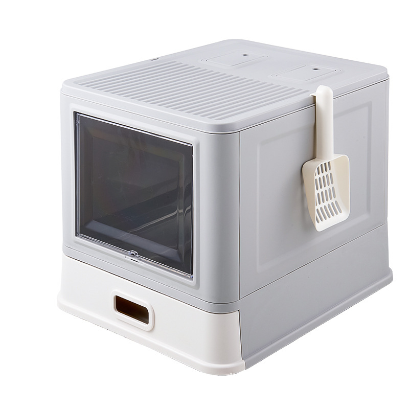 Крупный складной закрытый кошачий туалет из нержавеющей стали и пластика PP, выдвижного типа