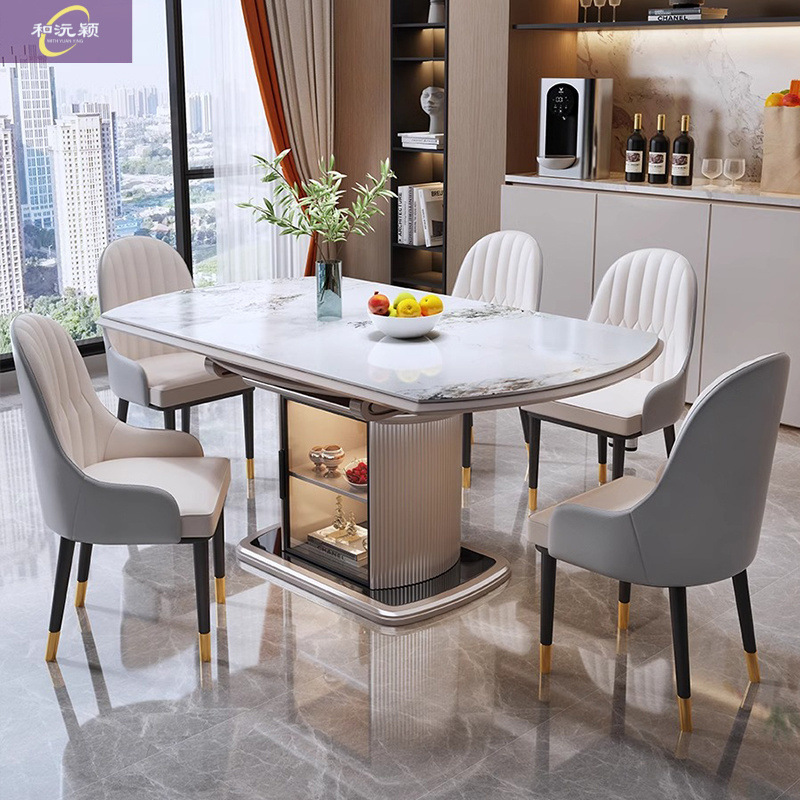 Современный простой и легкий роскошный домашний обеденный стол с каменной плитой