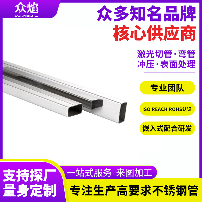 Труба прямоугольная из нержавеющей стали 304, плоская труба, квадратная труба из стали 304, без нарезки, оптом, коррозионностойкая