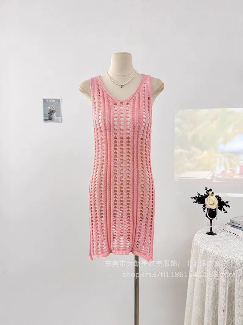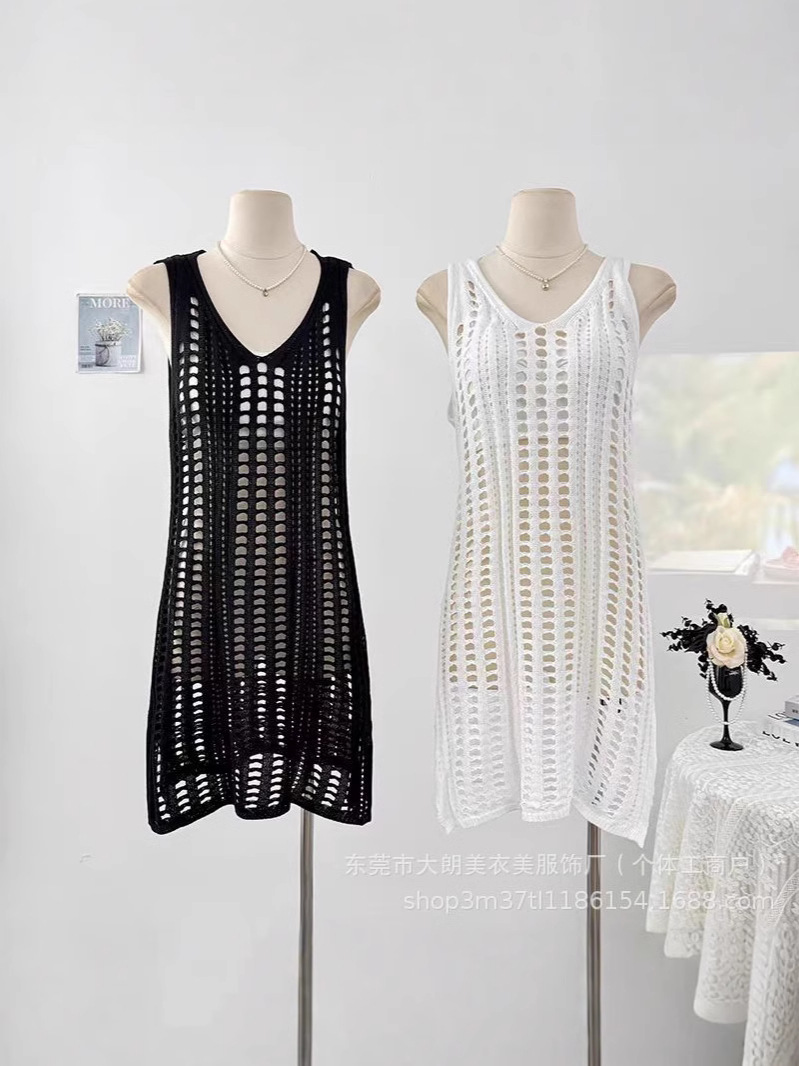 Европейский и американский новый трикотажный ажурный жилет блузка пляжное бикини праздничная юбка Пляжная юбка