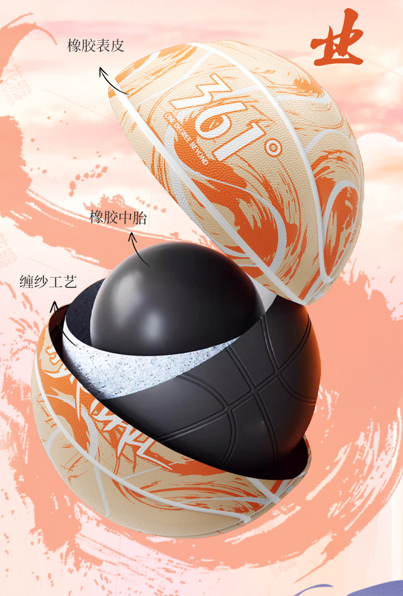 361 ° Оригинальный баскетбольный мяч с привлекательным внешним видом, износостойкий, подходит для использования в помещении и на улице, для взрослых и студентов, для профессиональных мероприятий, уличных игр и тренировок.