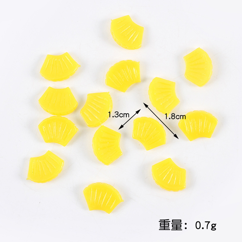 0,7 см красная полуметелка (маленький размер) одна; 0,7 см синяя полузабава (маленький размер) одна; Один красный полутутовый шелкопряд диаметром 1,2 см (среднего размера).; 1,2 см синяя полутутовая (среднего размера) одна; Одна черная полуметелка (среднего размера) диаметром 1,2 см.; Один черный шелковичник диаметром 1,4 см (большой размер); Одно маленькое розовое яблоко диаметром 1 см.; Одно маленькое зеленое яблоко диаметром 1 см.; Одно маленькое оранжевое яблоко диаметром 1 см.; Один миниатюрный кусочек дыни размером 2 см.; 0,8 см клубничный; 1,1 см клубничный; Одна большая клубника диаметром 1,8 см.; Лист мяты 1,2 см.; Один мини-красный каштан; Мини-желтый каштан; Один кубик манго размером 1,5 см.; 1,5 см половина зеленого яблока; Один миниатюрный кусочек желтого персика диаметром 1,4 см.; Один пучок зеленого винограда из ПВХ.; Один кубик дыни диаметром 1,7 см (маленький размер); Один кубик красного драконьего фрукта размером 1,7 см (маленький размер); Один кубик манго диаметром 1,7 см (маленький размер); Один кубик киви размером 1,7 см (маленький размер); Один кубик манго размером 2 см (большой размер); Один кубик светлого цвета длиной 2 см (большого размера).; Один кубик темного дыни размером 2 см (большого размера); Один кубик зеленого дыни диаметром 2 см (большого размера).; Один красный драконий фрукт, нарезанный кубиками размером 2 см (большой размер); Один кусок белого драконового фрукта размером 2 см (большой размер); Один киви, нарезанный кубиками размером 2 см (большой размер).; Один блок конжака диаметром 2 см.; Один кусочек киви размером 1,7 см1/4.; 3 см половина ломтика киви; Один кусок желтого персика диаметром 2,8 см.; Один кусочек ананаса толщиной 1 см (маленький размер); Кусочки желтого ананаса толщиной 1,2 см (среднего размера); Один кусочек апельсинового ананаса толщиной 1,2 см (среднего размера).; Один кусочек ананаса толщиной 1,8 см (большого размера); Один небольшой сегмент апельсиново-красного грейпфрута диаметром 1,2 см.; Один маленький желто-оранжевый ломтик размером 1,2 см.; Один средний сегмент красного грейпфрута диаметром 1,9 см.; Один средний сегмент апельсинового-красного грейпфрута диаметром 1,9 см.; Один кусочек среднего желтого оранжевого цвета диаметром 1,9 см.; Один крупный сегмент апельсинового-красного грейпфрута диаметром 2,8 см.; Один большой желто-оранжевый лепесток диаметром 2,8 см.; Один крупный одиночный оранжевый цветок диаметром 3,8 см.; Одна апельсиновая вишня диаметром 1 см.; Одна красная вишня диаметром 1,4 см.; Одна фиолетовая вишня диаметром 1,4 см.; Одна красная вишня с двойным разветвлением диаметром 1,4 см.; Одна фиолетовая вишня с двойным ветвлением диаметром 1,4 см.; 2,2 см красная вишня (прозрачная); Одна зеленая вишня диаметром 2,2 см.; Одна желтая вишня диаметром 2,2 см.; Одна большая красная вишня (вишня) диаметром 4 см.; Одна фиолетовая вишня (вишня) диаметром 4 см.; Одна 4-сантиметровая оранжевая вишня (вишня); 0,7 см голубая черника (маленький размер) одна; 0,7 см апельсиновая черника (маленький размер) одна; 0,7 см розово-красная черника (маленький размер) одна; Одна 1,2 см розово-красная черника (среднего размера); Одна светлая черника диаметром 1,2 см (среднего размера).; Одна темная черника диаметром 1,2 см (среднего размера).; Одна светло-голубая черника диаметром 1,8 см (большой размер); Одна 1,8 см тёмно-синяя черника (большой размер); Одна апельсиновая черника диаметром 