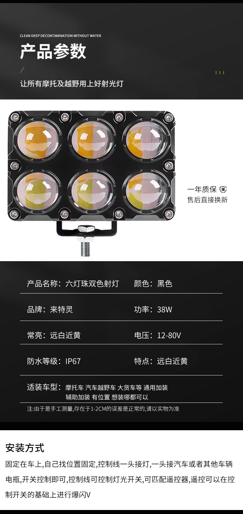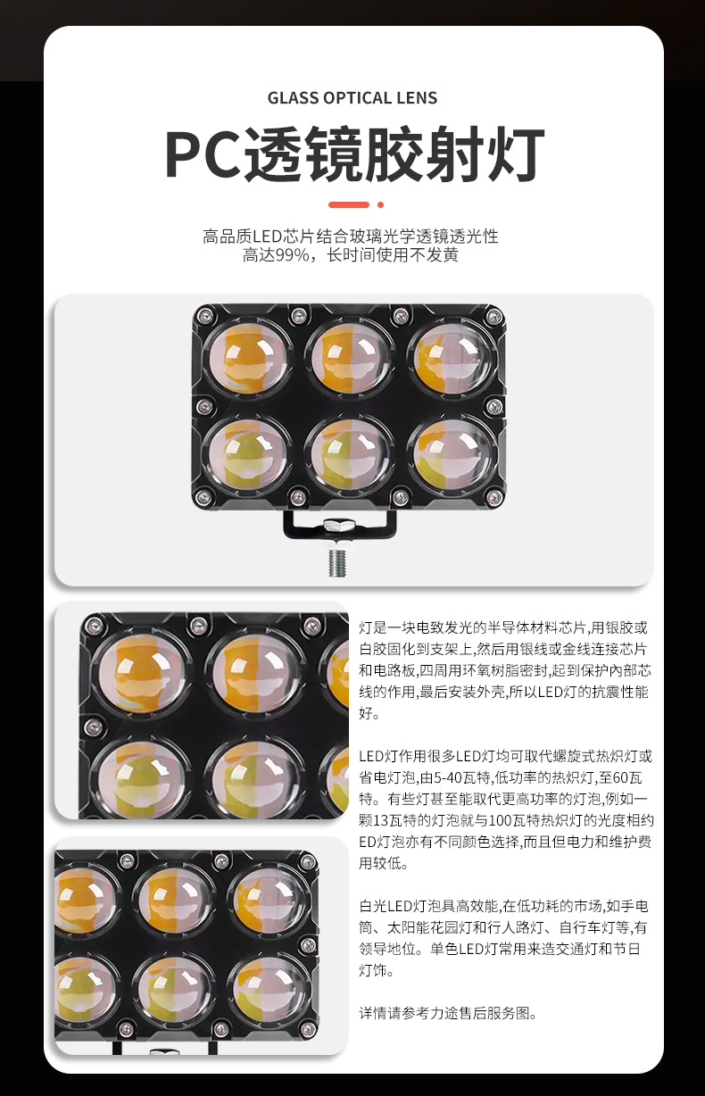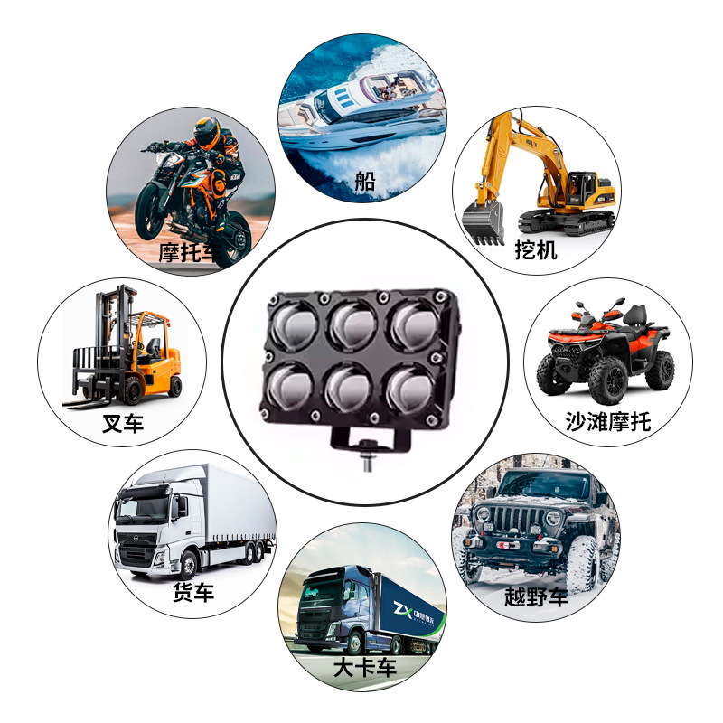Трансграничные хит продаж, прожекторы для мотоциклов, двухрядные 6 светодиодов, белые и желтые фары, вспомогательные уличные фонари, мощные фары для мотоциклов