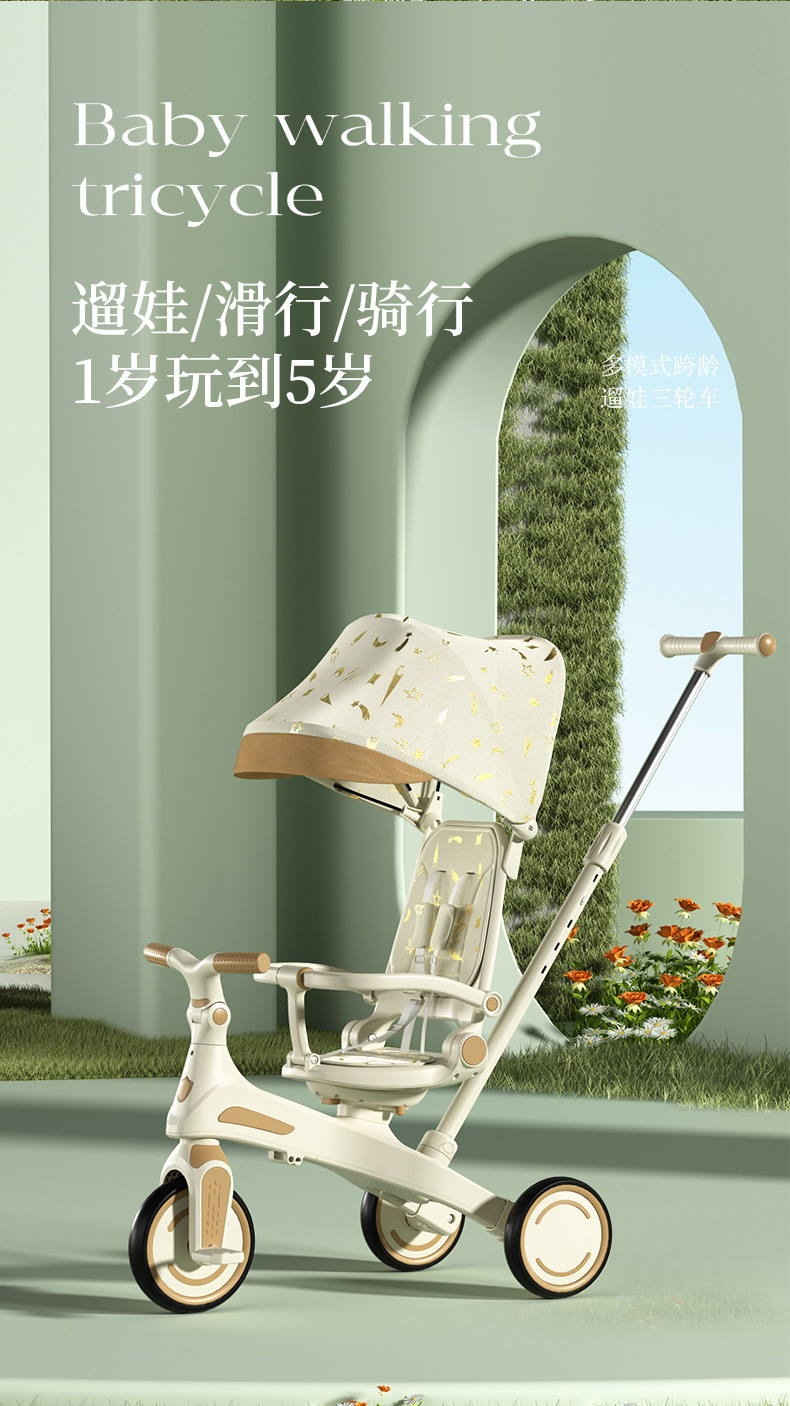 Детский трехколесный велосипед-коляска для детей 1-3 лет, многофункциональная, легкая, с регулируемой спинкой, игрушка-коляска для малышей
