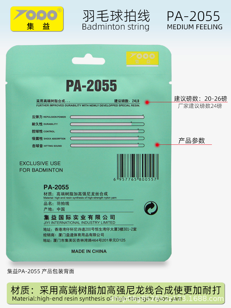 PA-2055 在集益品牌里属于中档线,建议磅数是20-26磅,可拉28磅。