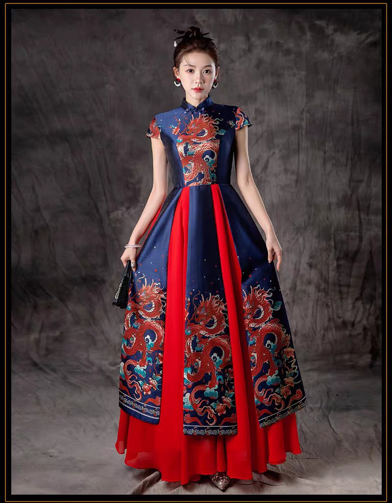 Китайский стиль этнический дракон с вышивкой большой юбкой