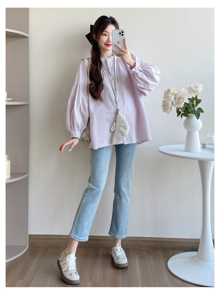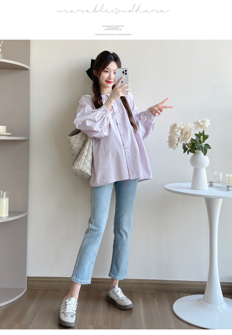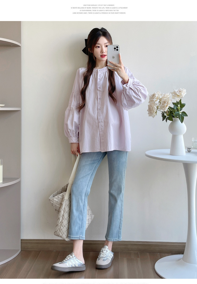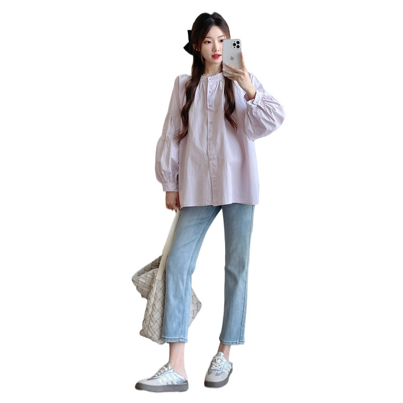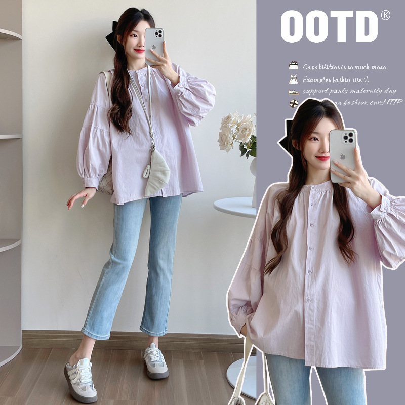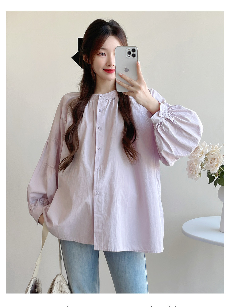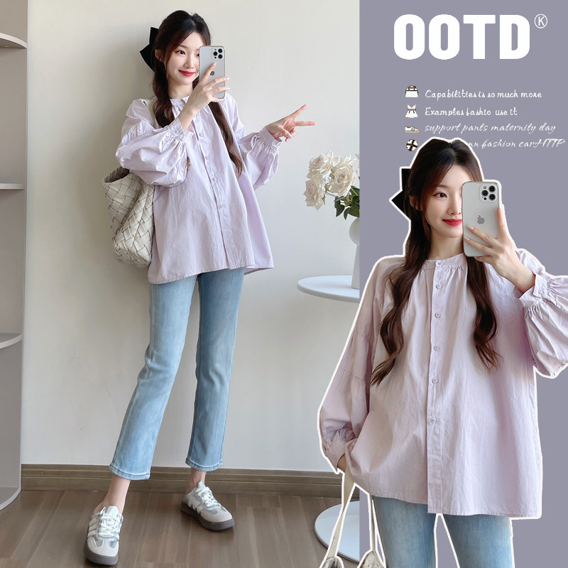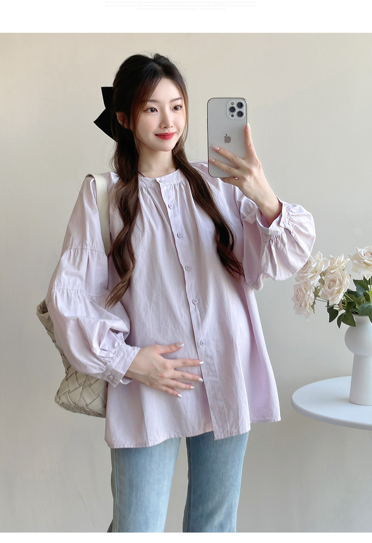 Одежда для беременных, новинка весны 2020, однотонная, элегантная, свободная, для похудения, топ большого размера, однобортная рубашка для беременных с круглым вырезом