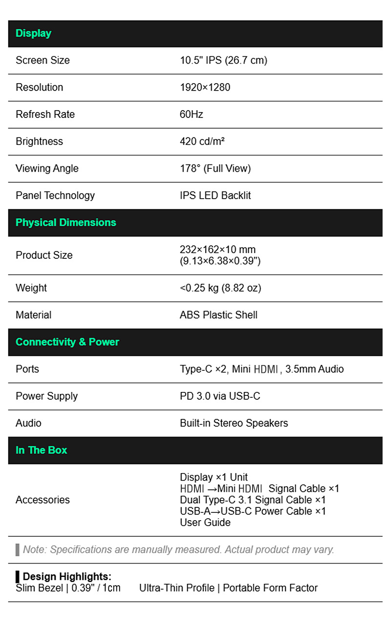 Портативный IPS-экран Anmite 10.5inch Nintendo Switch, внешний расширительный экран компьютера