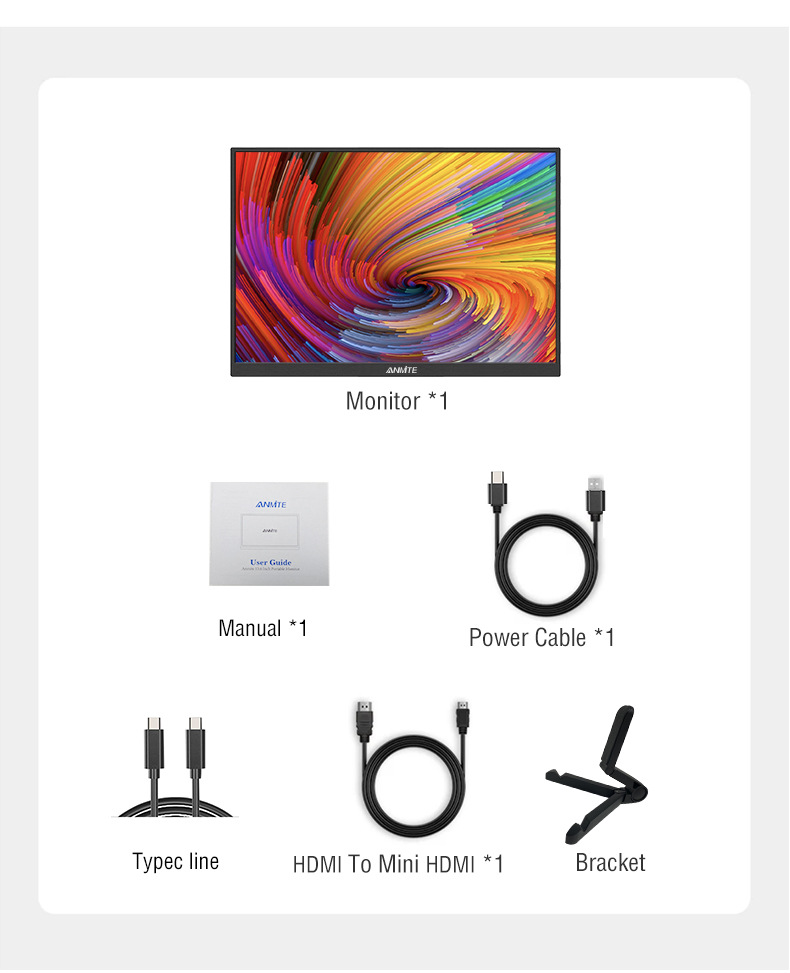 Монитор*1+кабель Type-C3.1*1+кабель Type-C2.0*1+кабель HDMI-miniHDMI*1