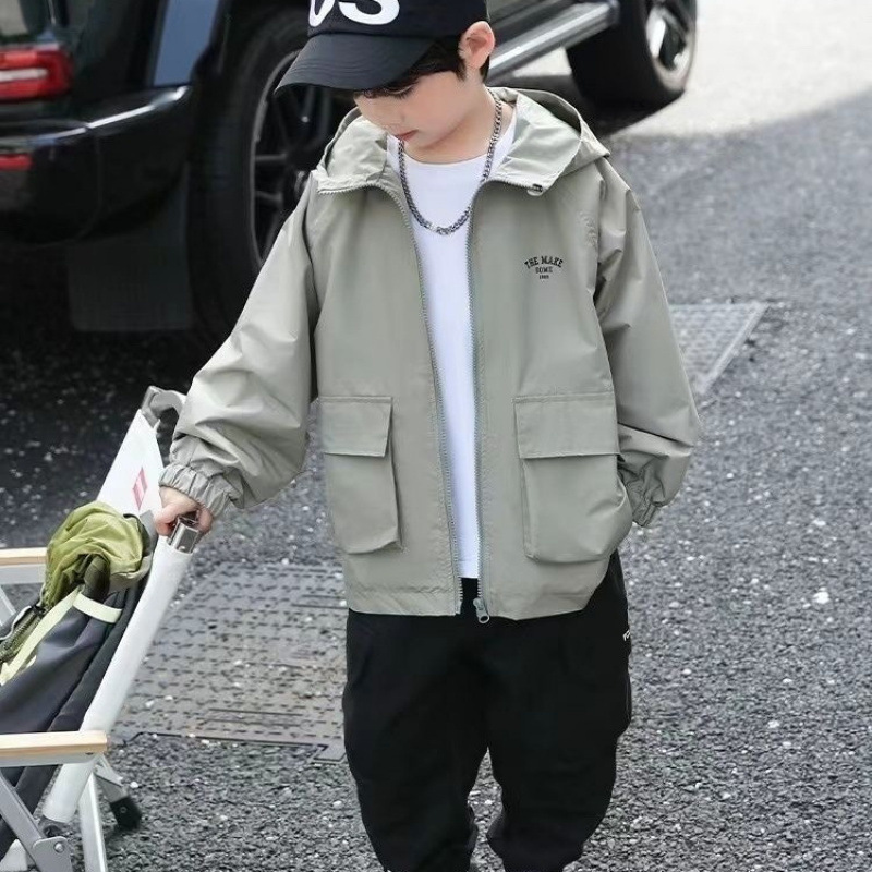 Детская куртка весна и осень новая куртка для мальчиков ветрозащитный водонепроницаемый топ с капюшоном