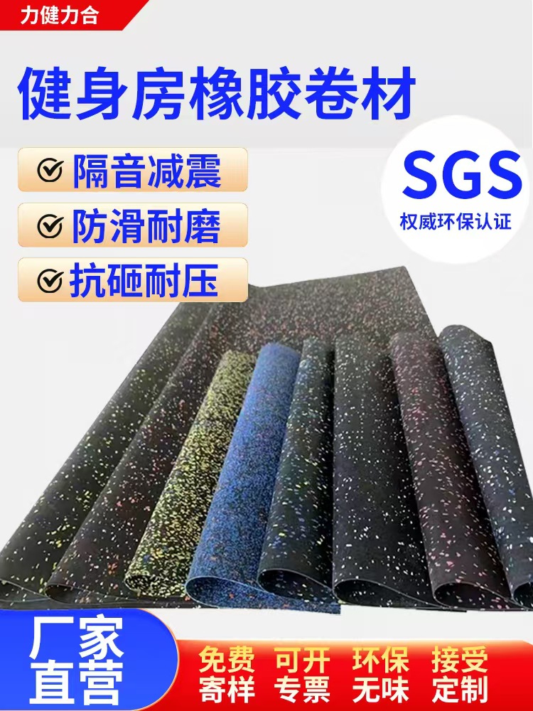 Рулонный резиновый материал для спортзалов, экологически чистый, нескользящий, износостойкий, амортизирующий коврик, звукоизоляционное резиновое покрытие для пола, рулонный коврик из EPDM, оборудование, беговая дорожка
