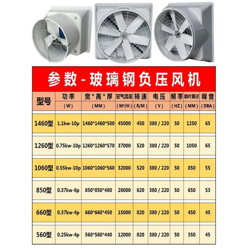 Вентилятор из стекловолокна с отрицательным давлением для ферм, промышленной вытяжной вентиляции и охлаждения, малошумная вентиляция.