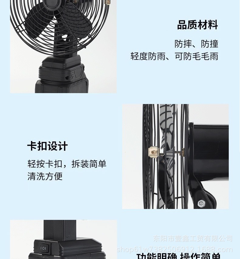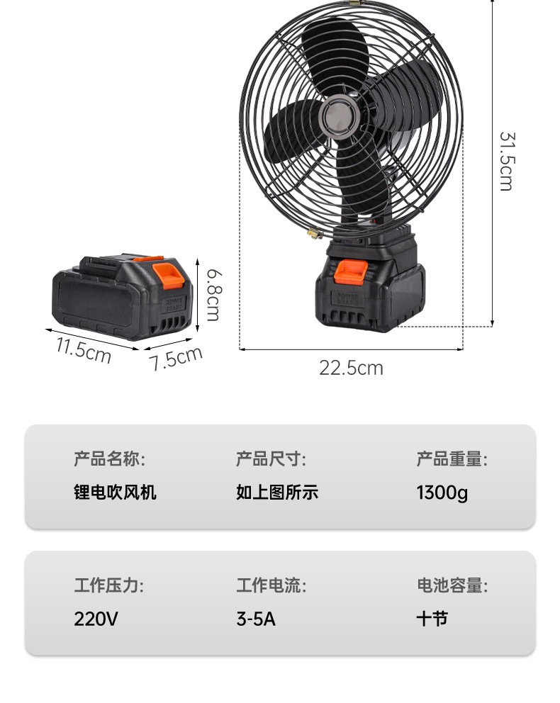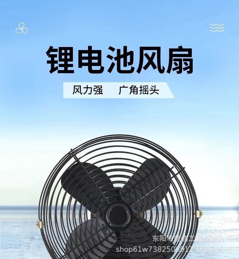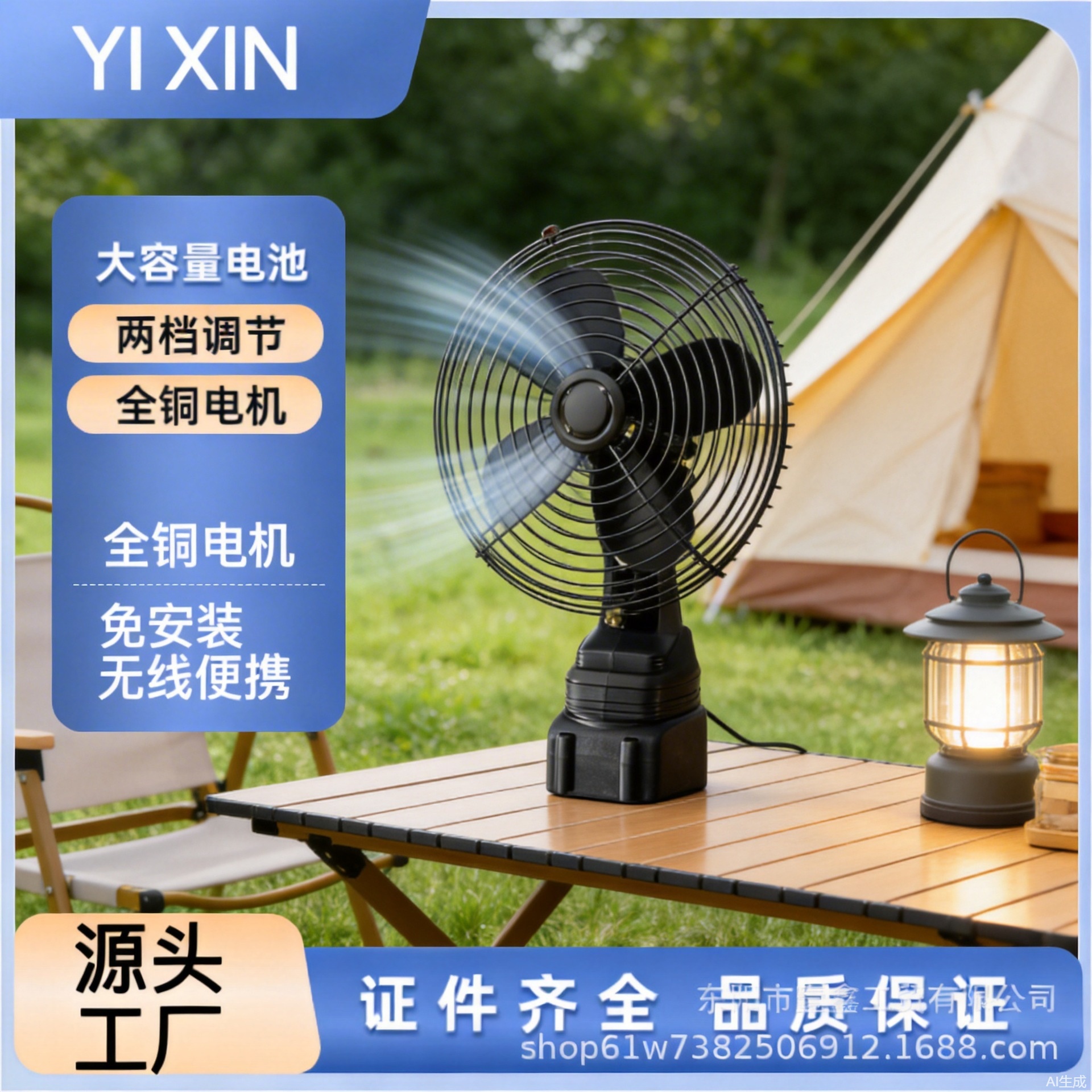 Новый уличный беспроводной вентилятор с литиевой батареей, сверхдолгим сроком службы батареи, высокой мощностью ветрового привода и высокой выходной мощностью, подходит для строительных площадок, кемпинга и портативного использования.