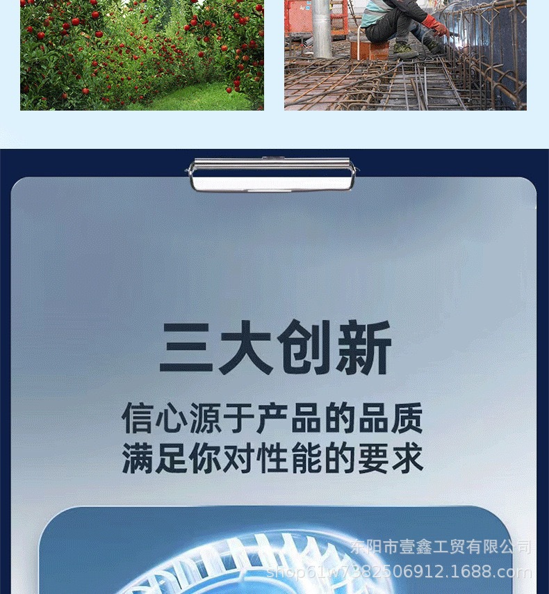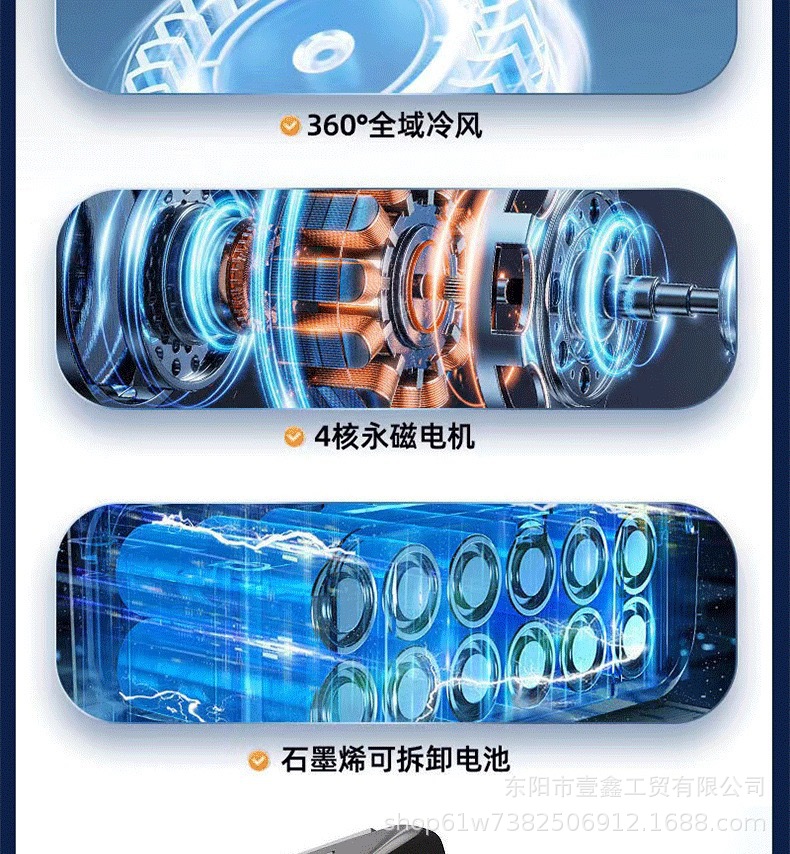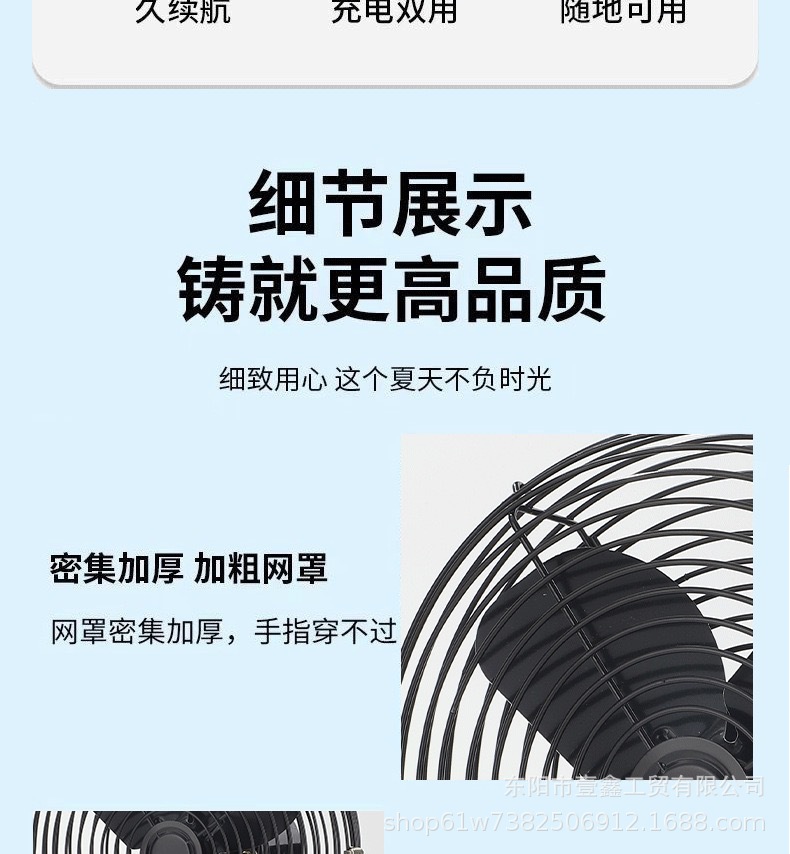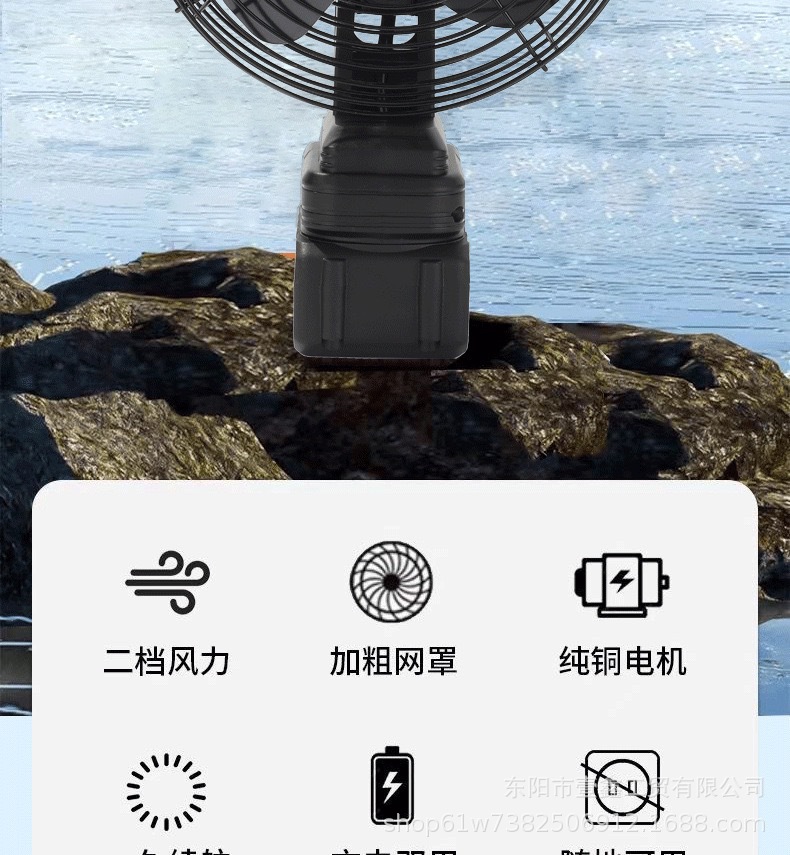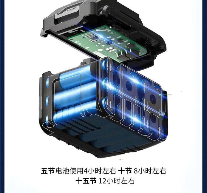 Новый уличный беспроводной вентилятор с литиевой батареей, сверхдолгим сроком службы батареи, высокой мощностью ветрового привода и высокой выходной мощностью, подходит для строительных площадок, кемпинга и портативного использования.