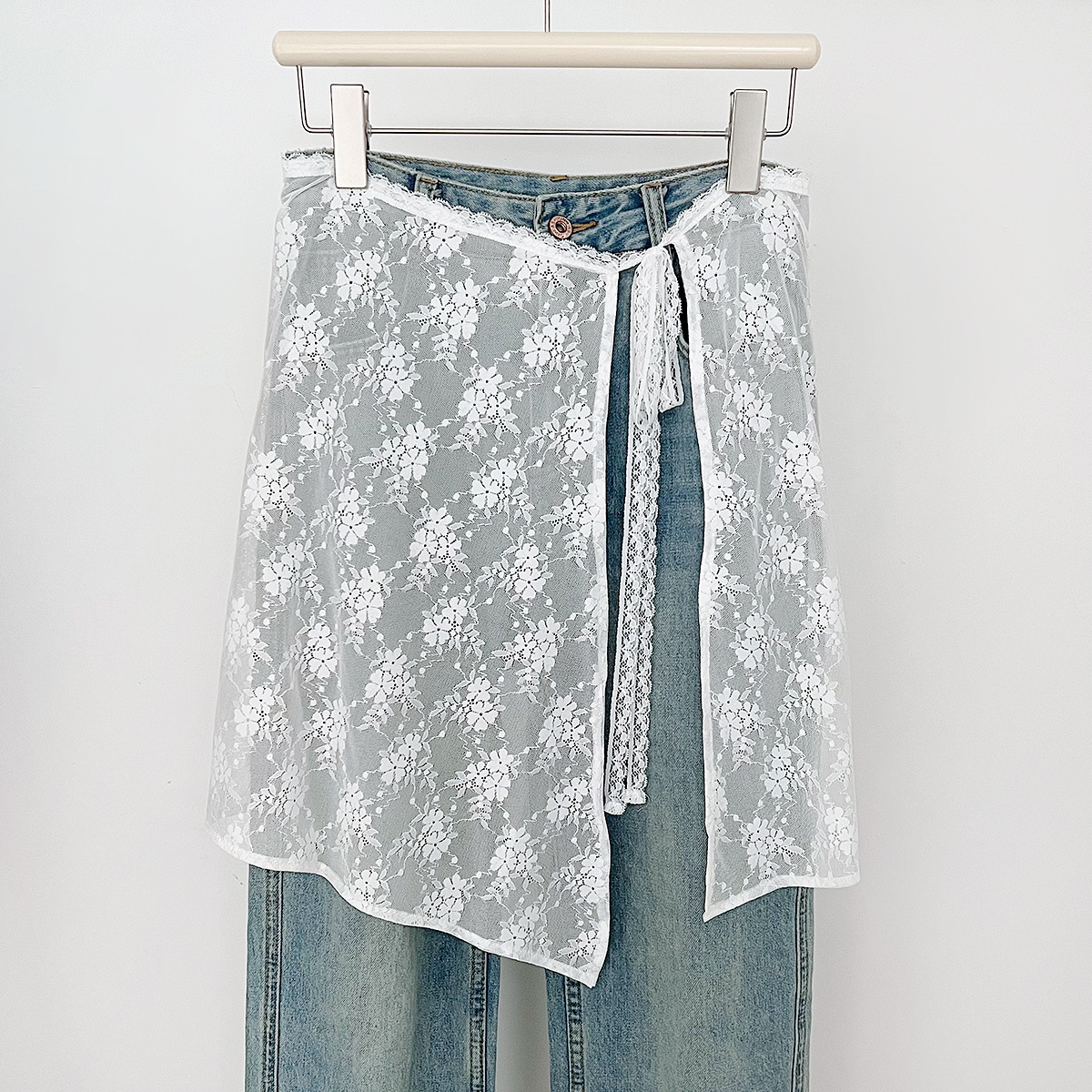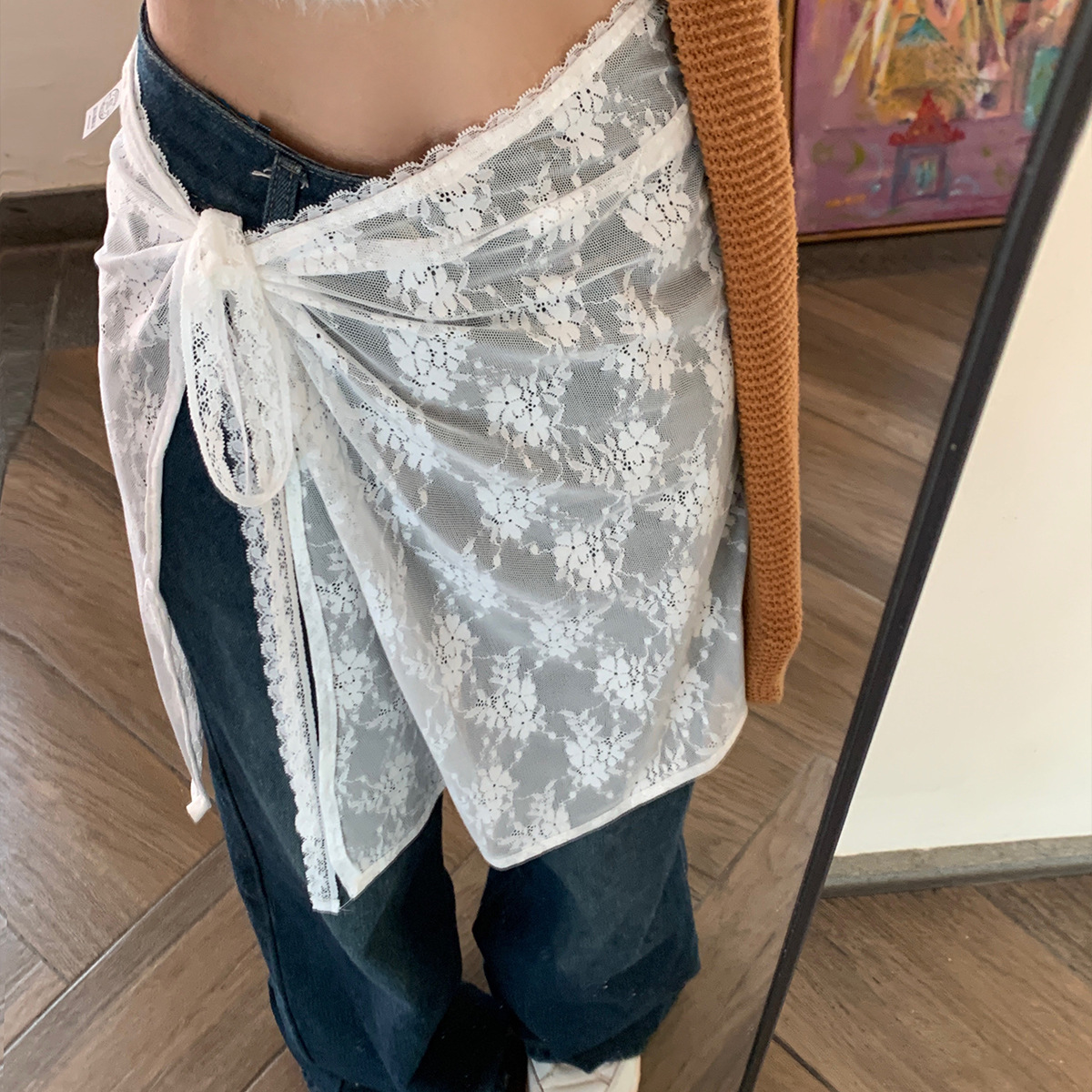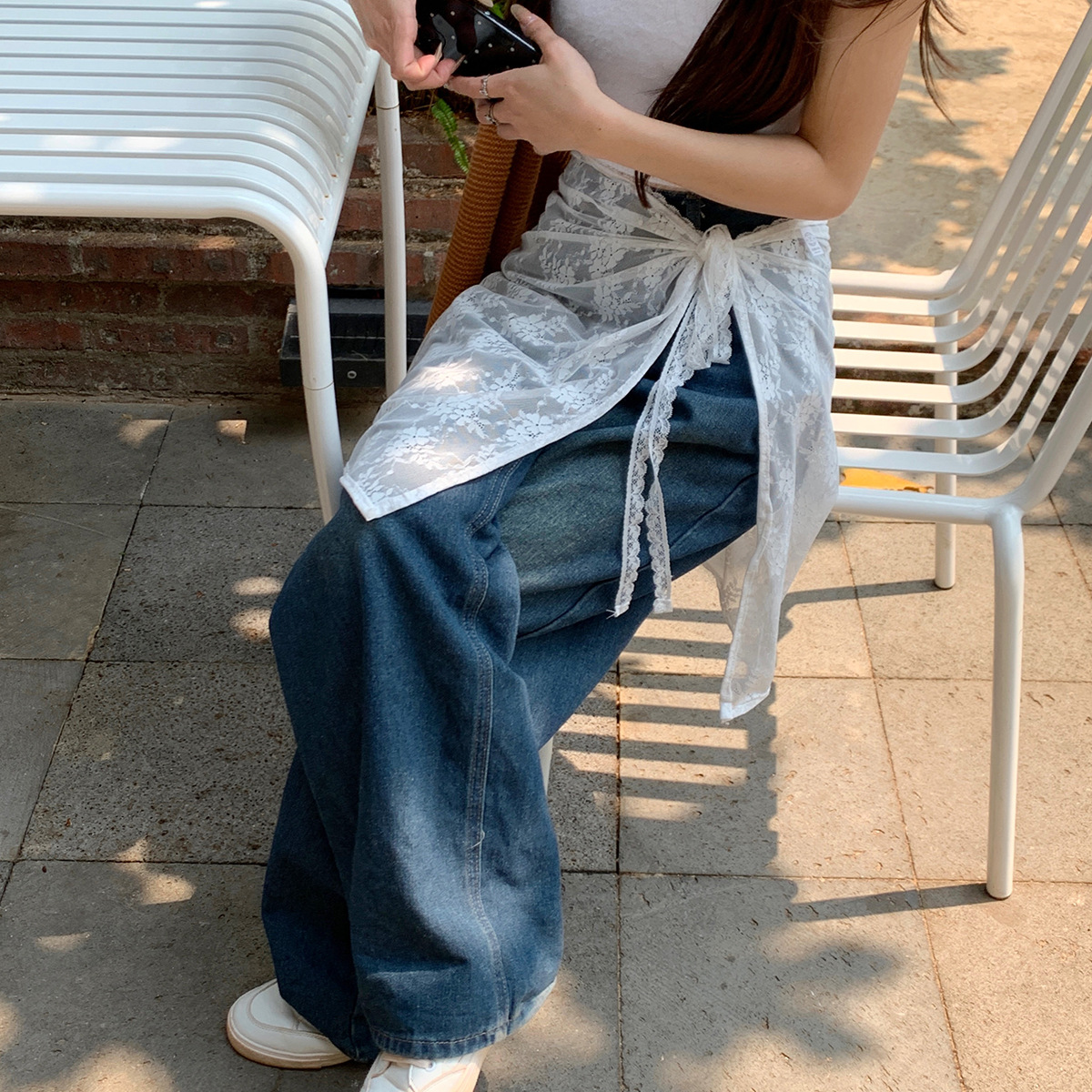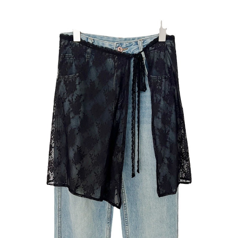 Весенняя половина нишу 2024 корейская версия белого кружевного пукающего занавеса женская шнуровка сладкий дизайн юбка дикий фартук юбка