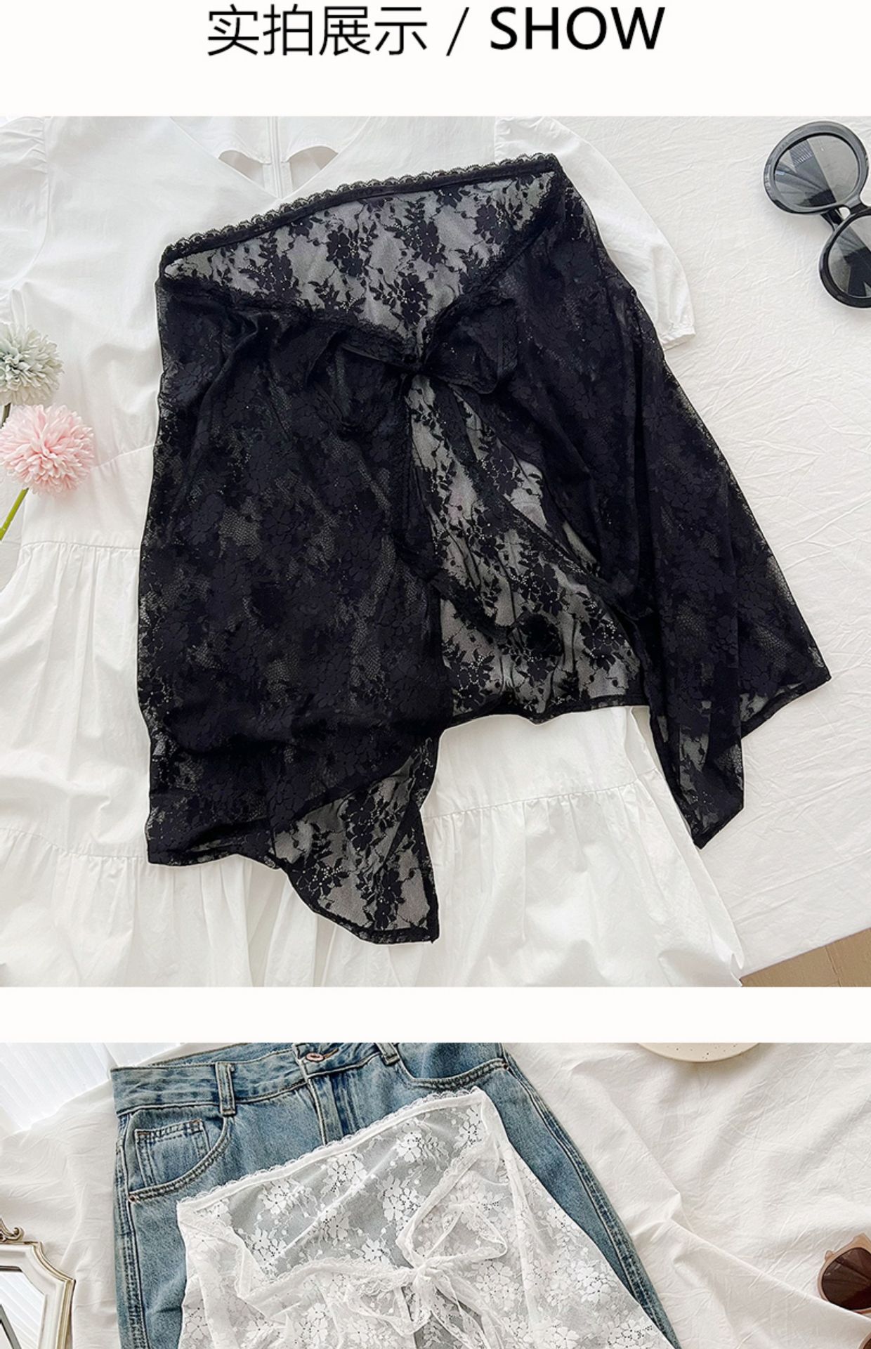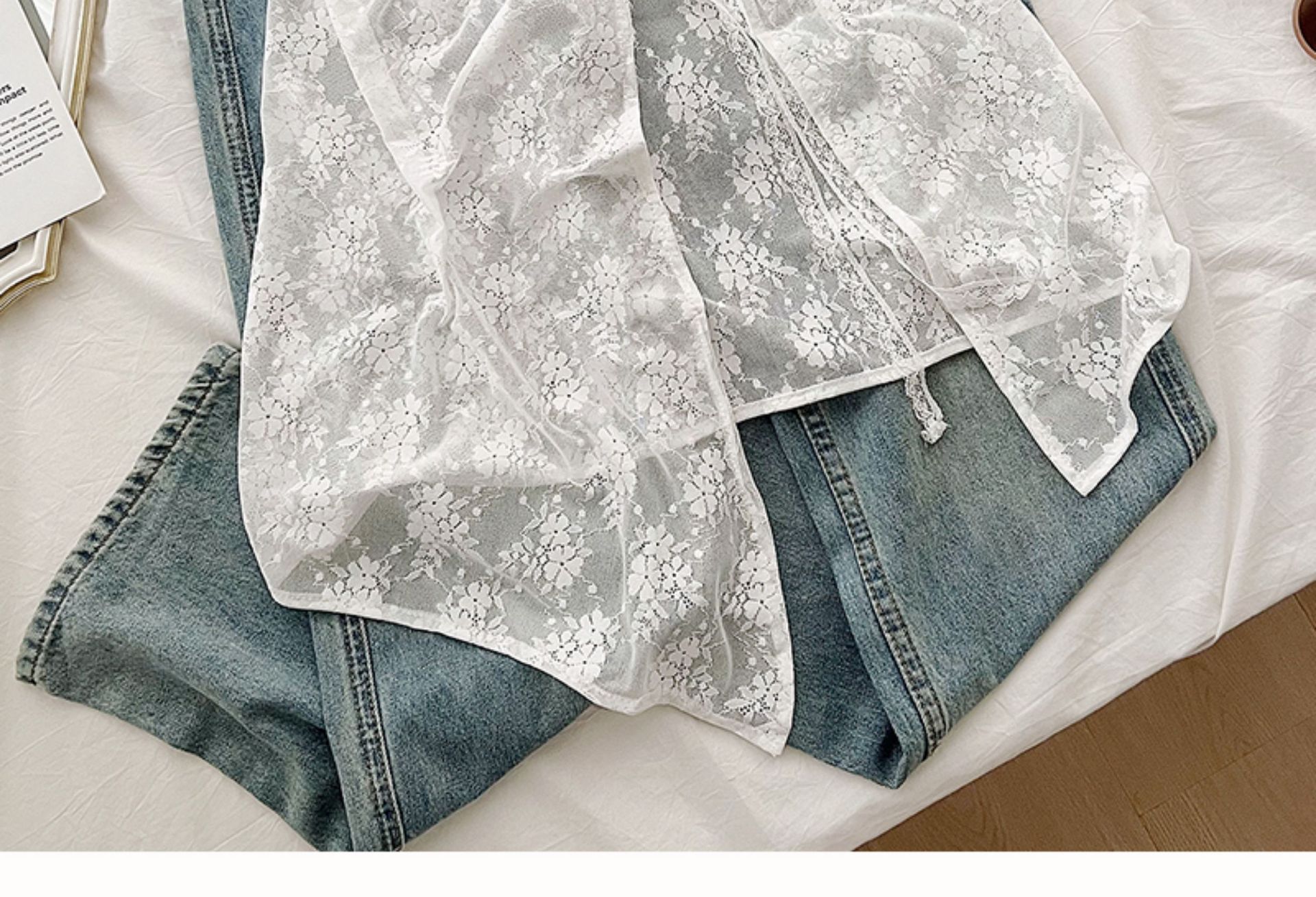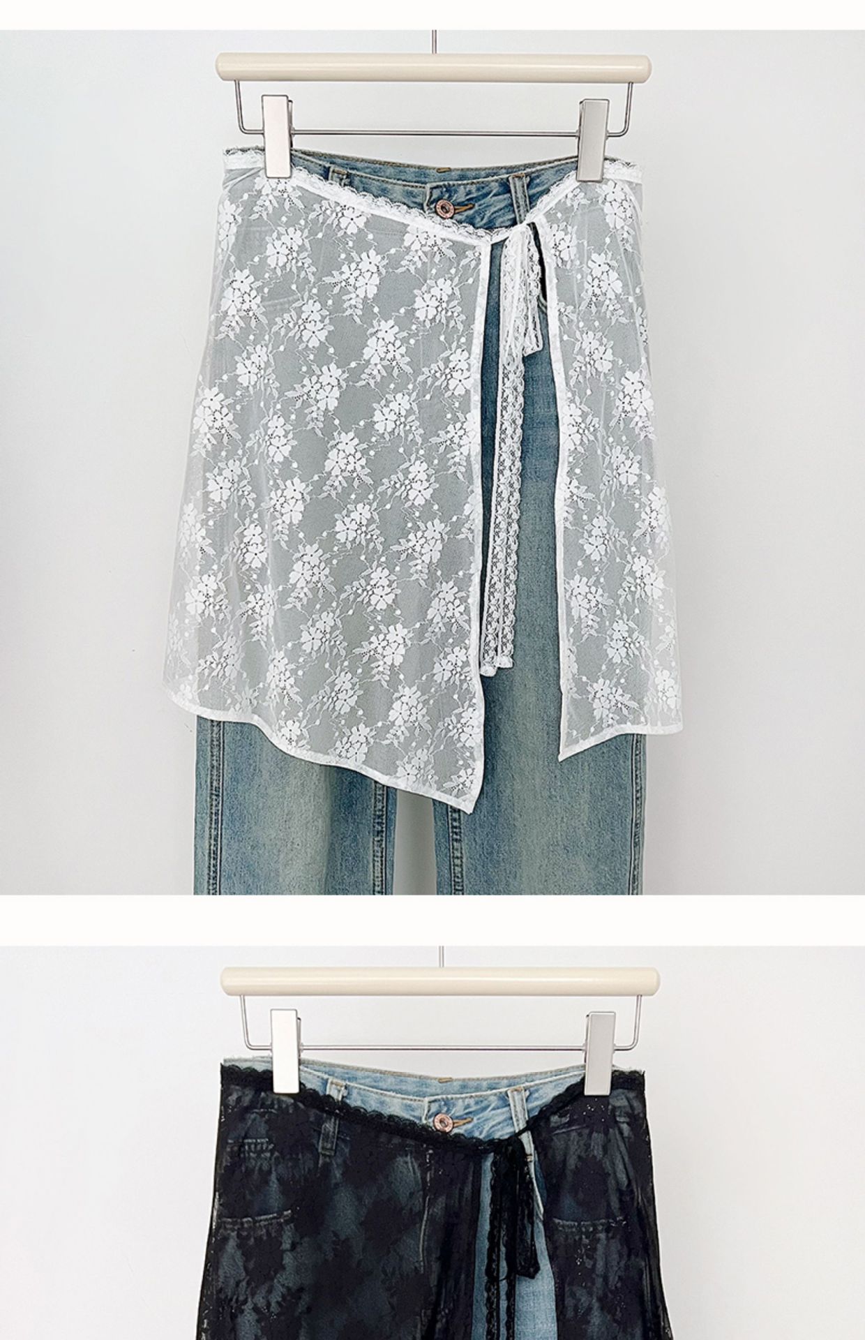 Весенняя половина нишу 2024 корейская версия белого кружевного пукающего занавеса женская шнуровка сладкий дизайн юбка дикий фартук юбка